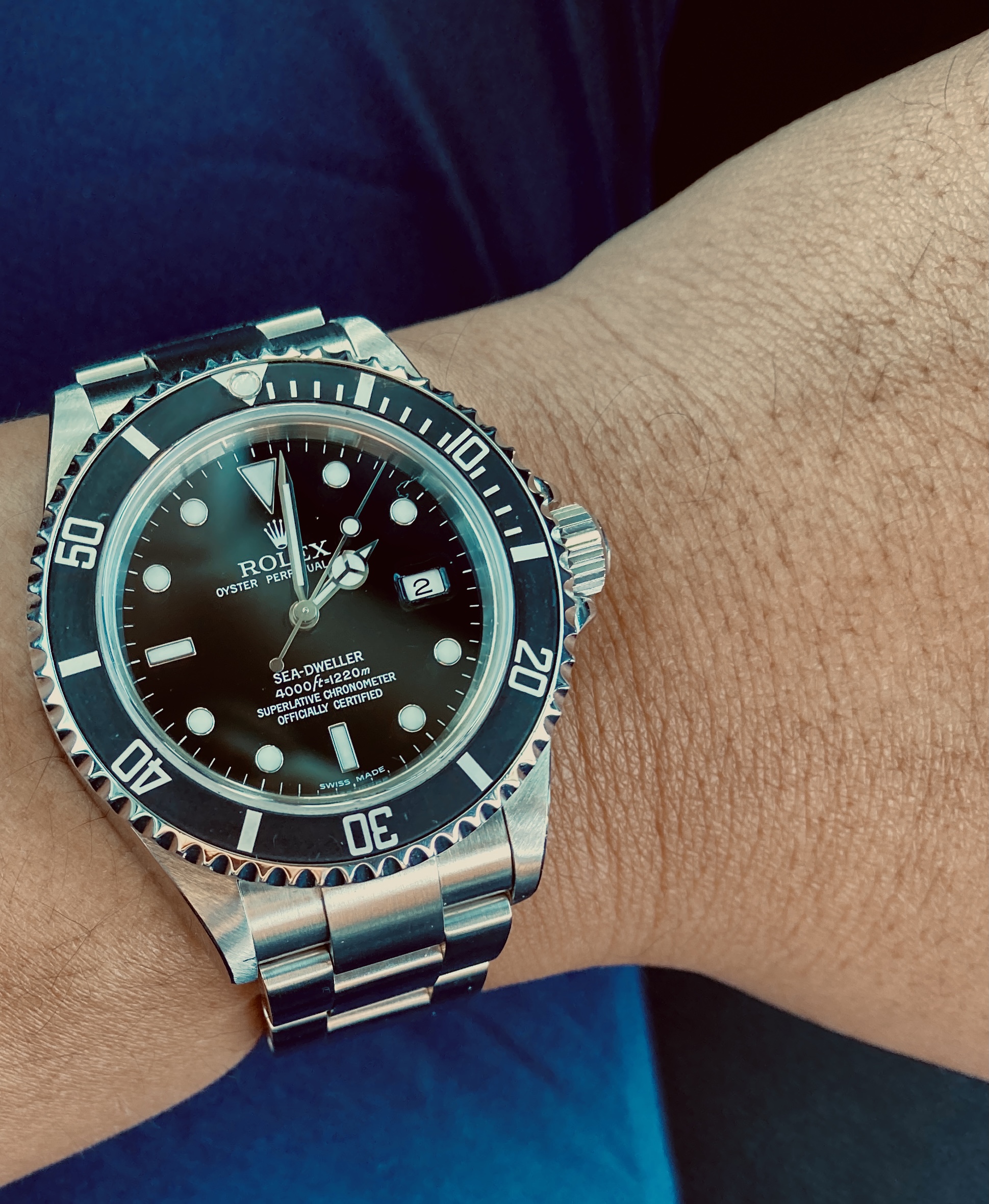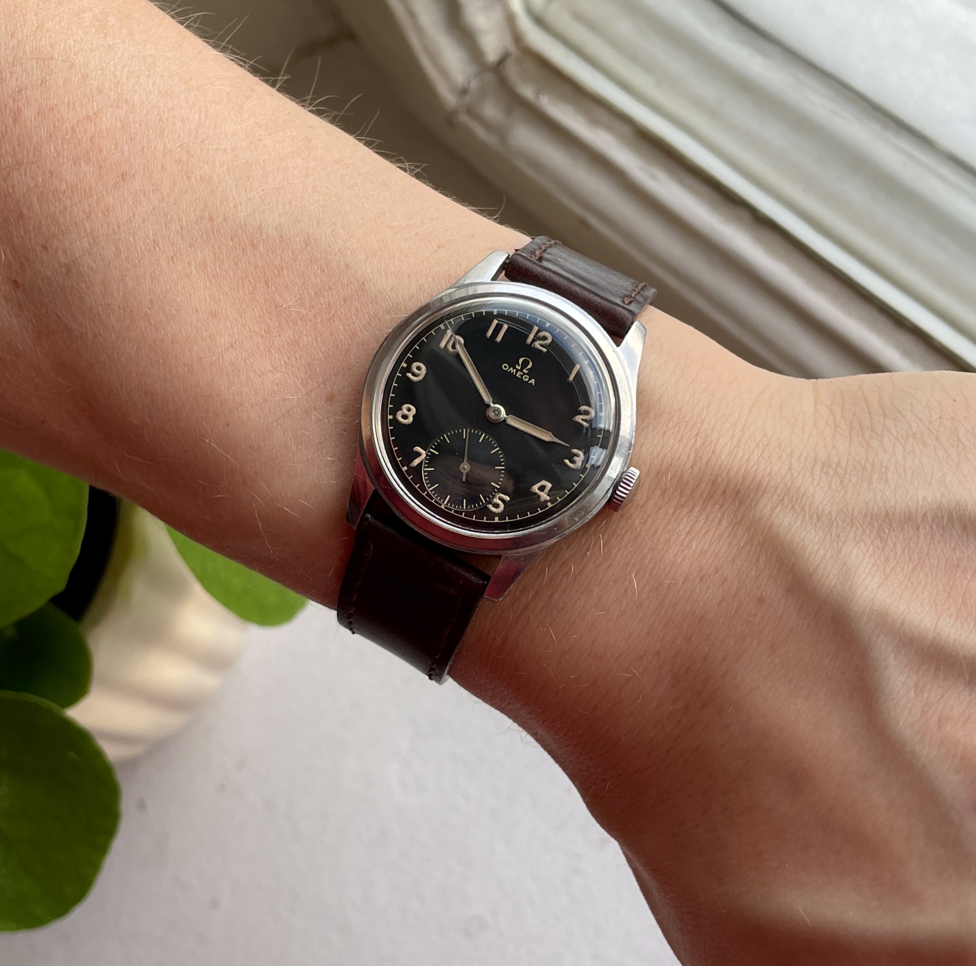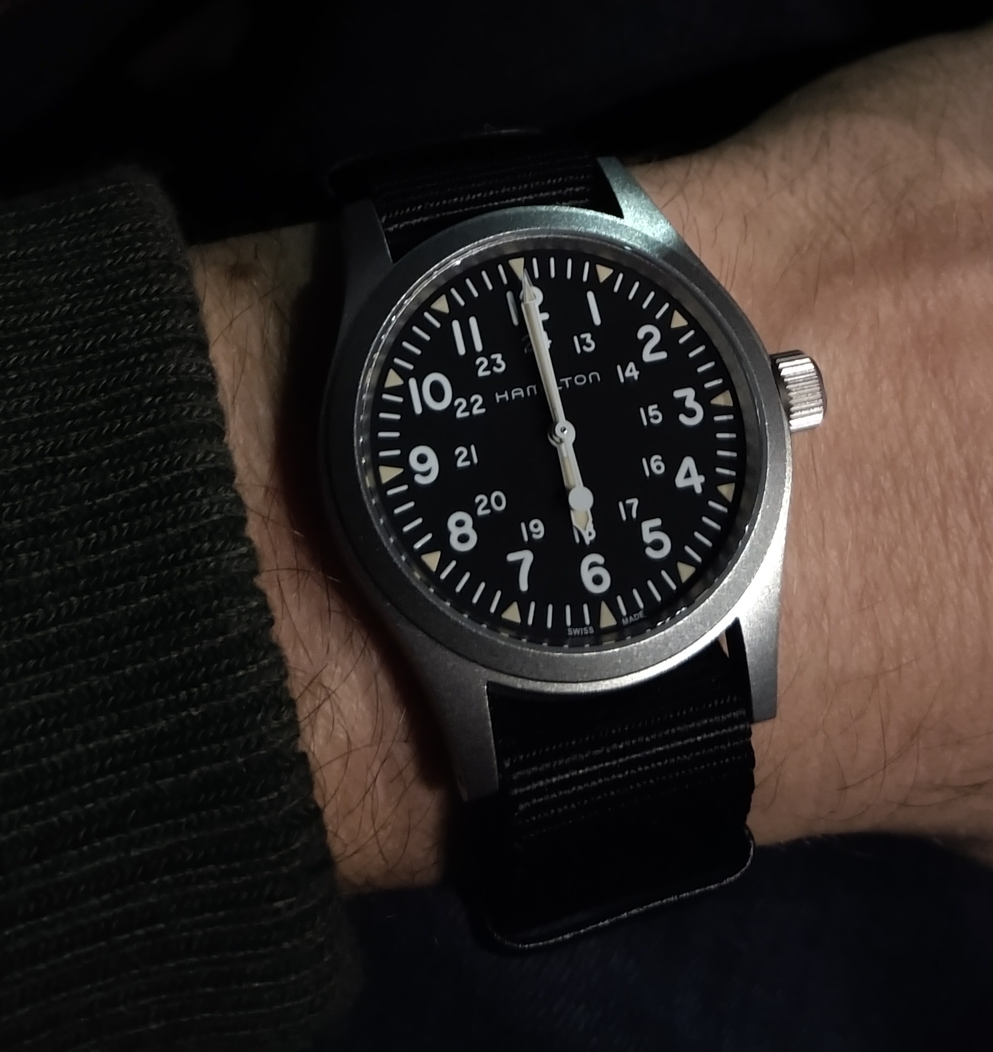 When I purchased I thought that the dial was black but when you place in sunlight it is a dark green. Not the most flattering light for the watch but it is the only way to see the colour.
