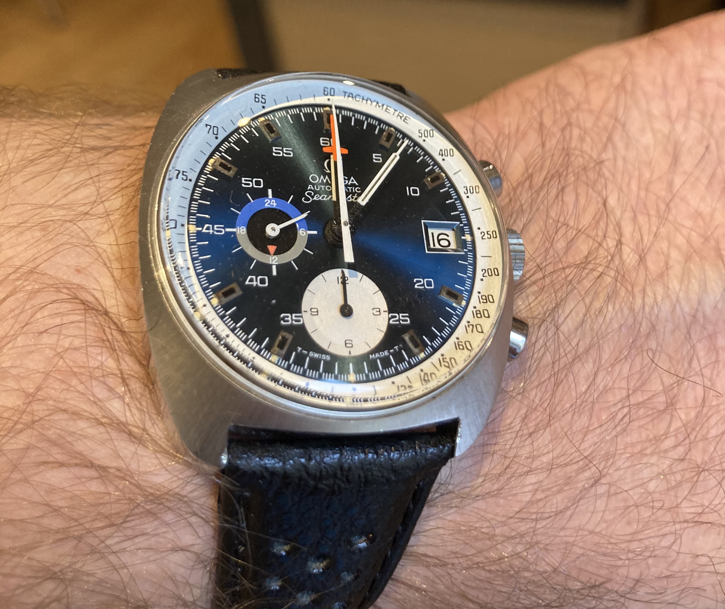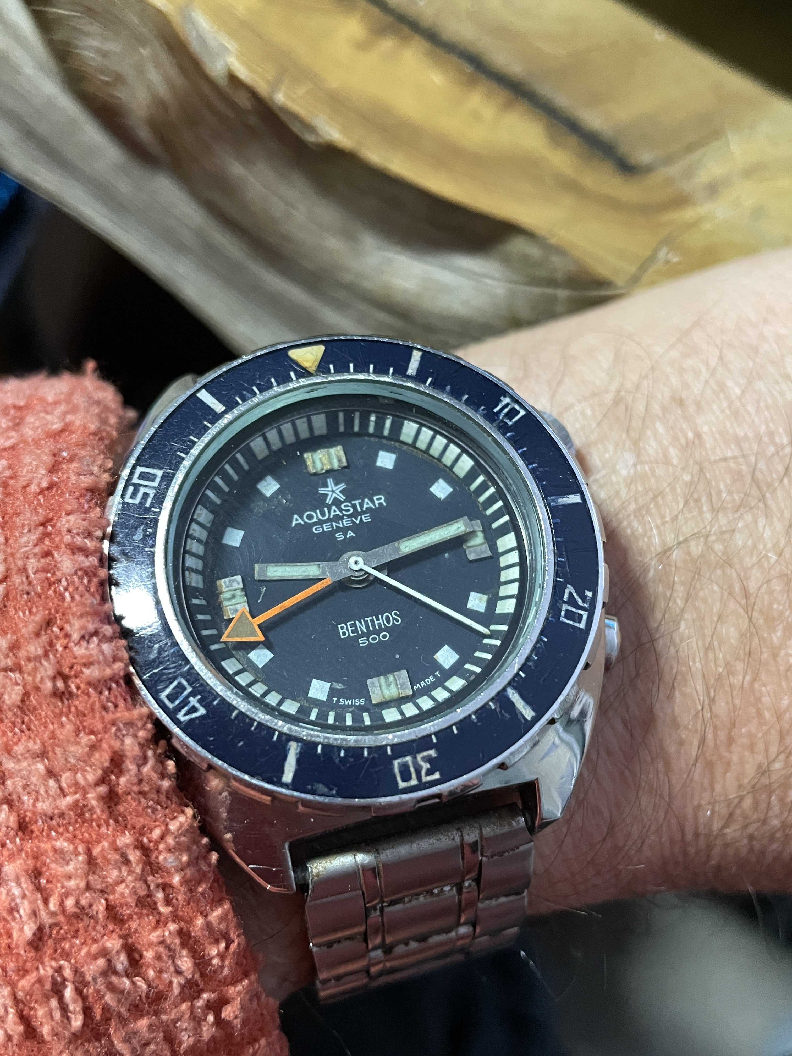 Benthos 500 very comfortable to wear, this one has a dark blue bezel and dial, it has the Cal 2162 movement, but the 60 minute timer isn't working, if anyone knows of a movement or the parts to fix it for sale, please let me know!