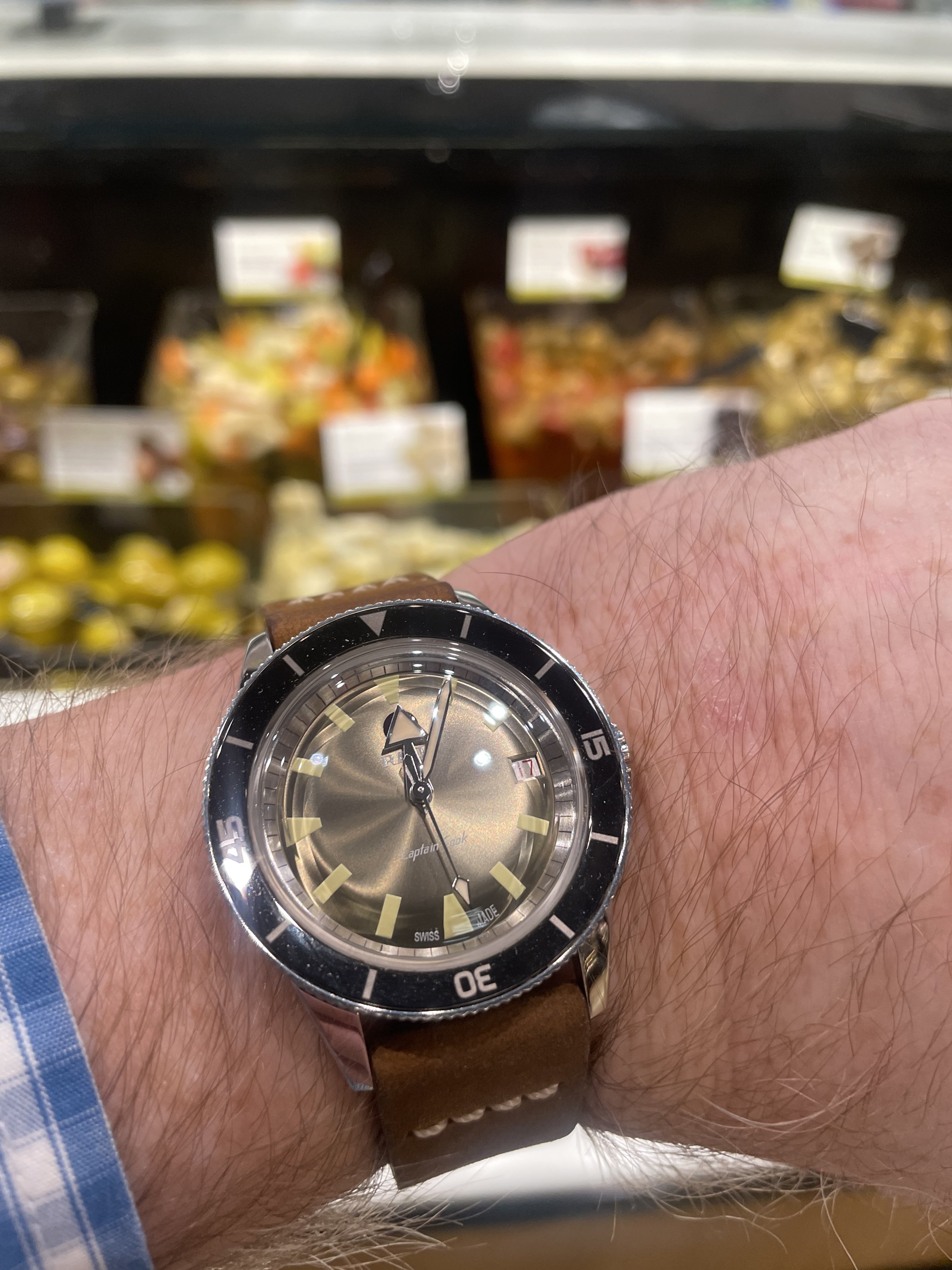 Posts 758 Likes 2,981 30T2 ·Dec 17, 2021 Making sure that time does fly, with the helbros. I’m thinking suede tomato color, or orange almost yellow for the strap.