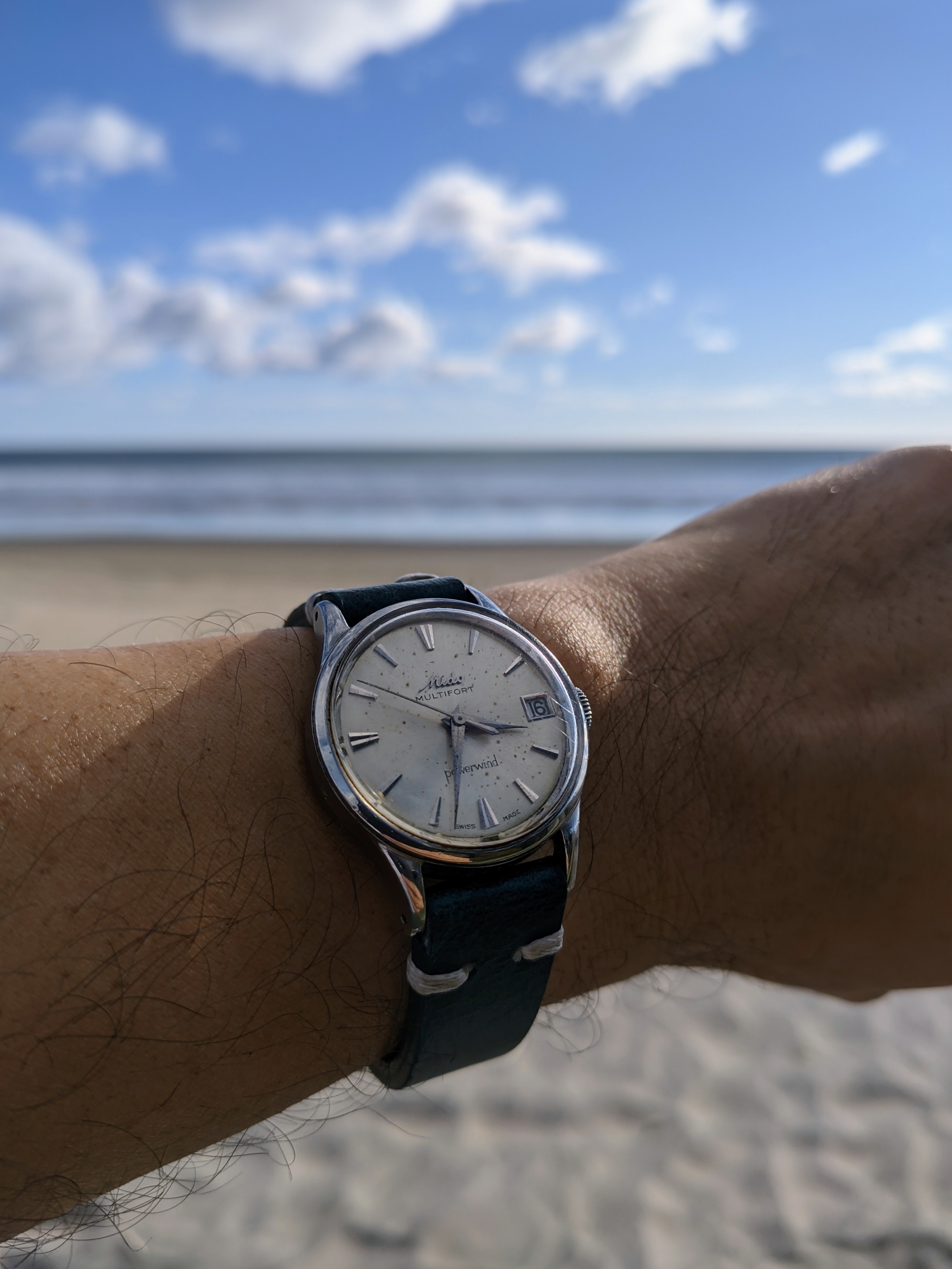 Posts 3,873 Likes 42,395 LesXL ·Dec 17, 2021 My father just gave me the watch my grandmother gave him when he finished school in 1965. A Mido Multifort Powerwind. The watch has never been serviced since, and is still running "fine"... 3 minutes late per 24h. Once back, I'll have it serviced, crystal has some scratches, case looks fine. Dial is spotted but nothing can be done there. Background shots (centre, left and right views)