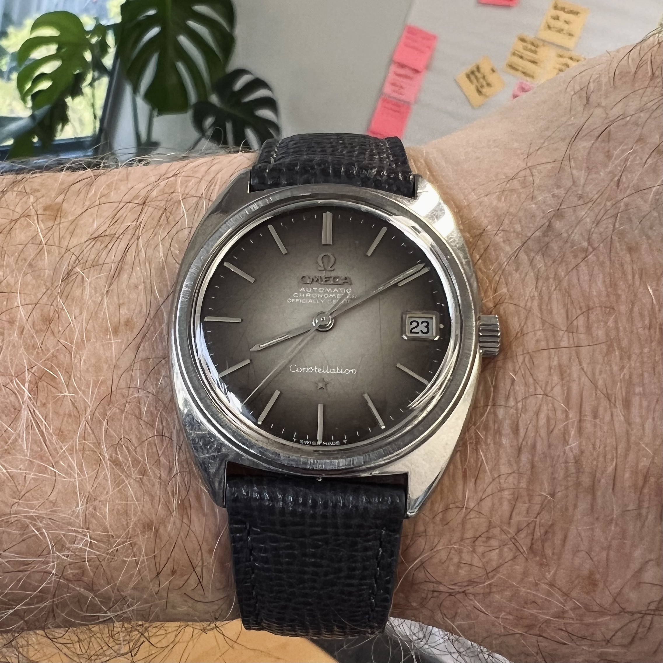 Several years ago, I located this item in a box of scrap watches. It had a broken rotor post, and needed conditioning. I checked with my supplier for a rotor post to be told it was no longer available. So, I went to my scrap watches, and found a hulk with the same movement and good rotor post. Voila’! After conditioning it and fitting the used rotor post, the job was done. I gave the watch to our son who is with us over Christmas. He neve4 wears it! So I have it on for today, giving my 65 year old Omega a break. Some time later, after I finished the repair of this one, I was going through my stash of watch parts, looking for something else. Lo and behold, but what do I find but three NOS rotor posts for this movement, still in their Bulova envelopes!