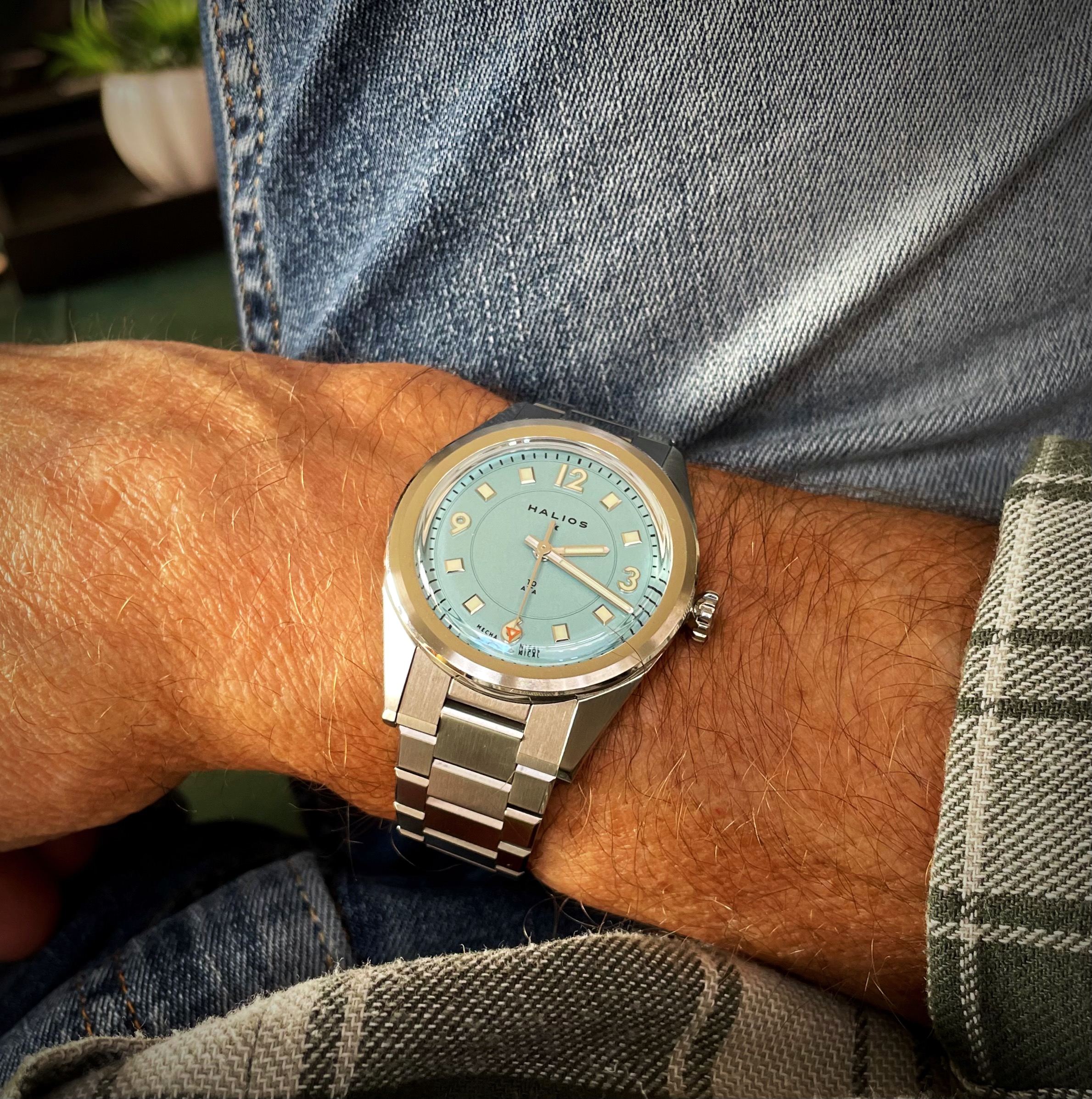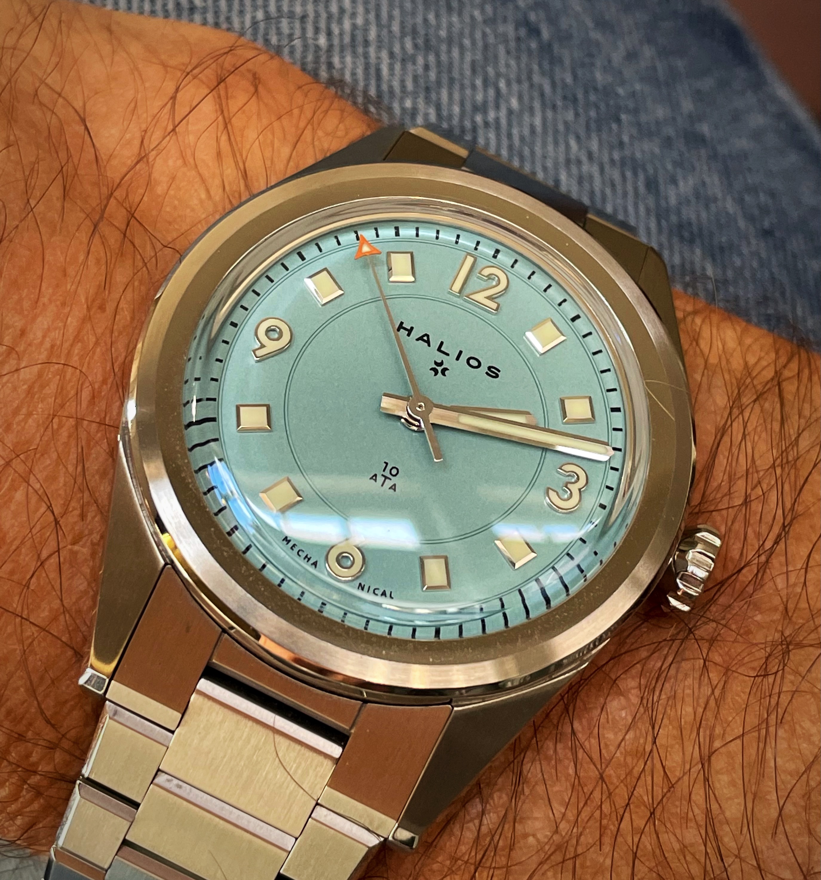 Today (like yesterday), it’s this Halios Universa with hand-wound movement and a very lovely dial: