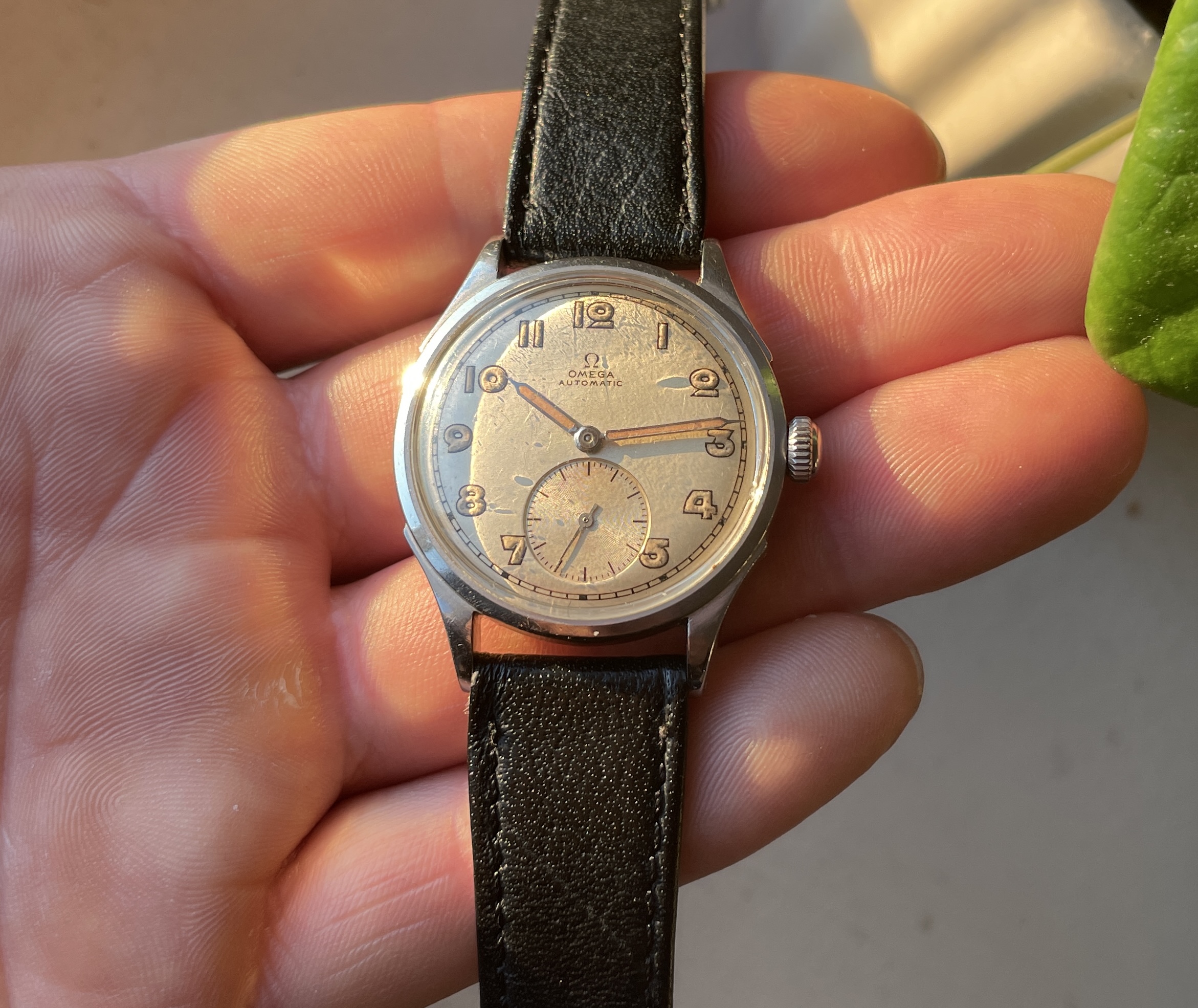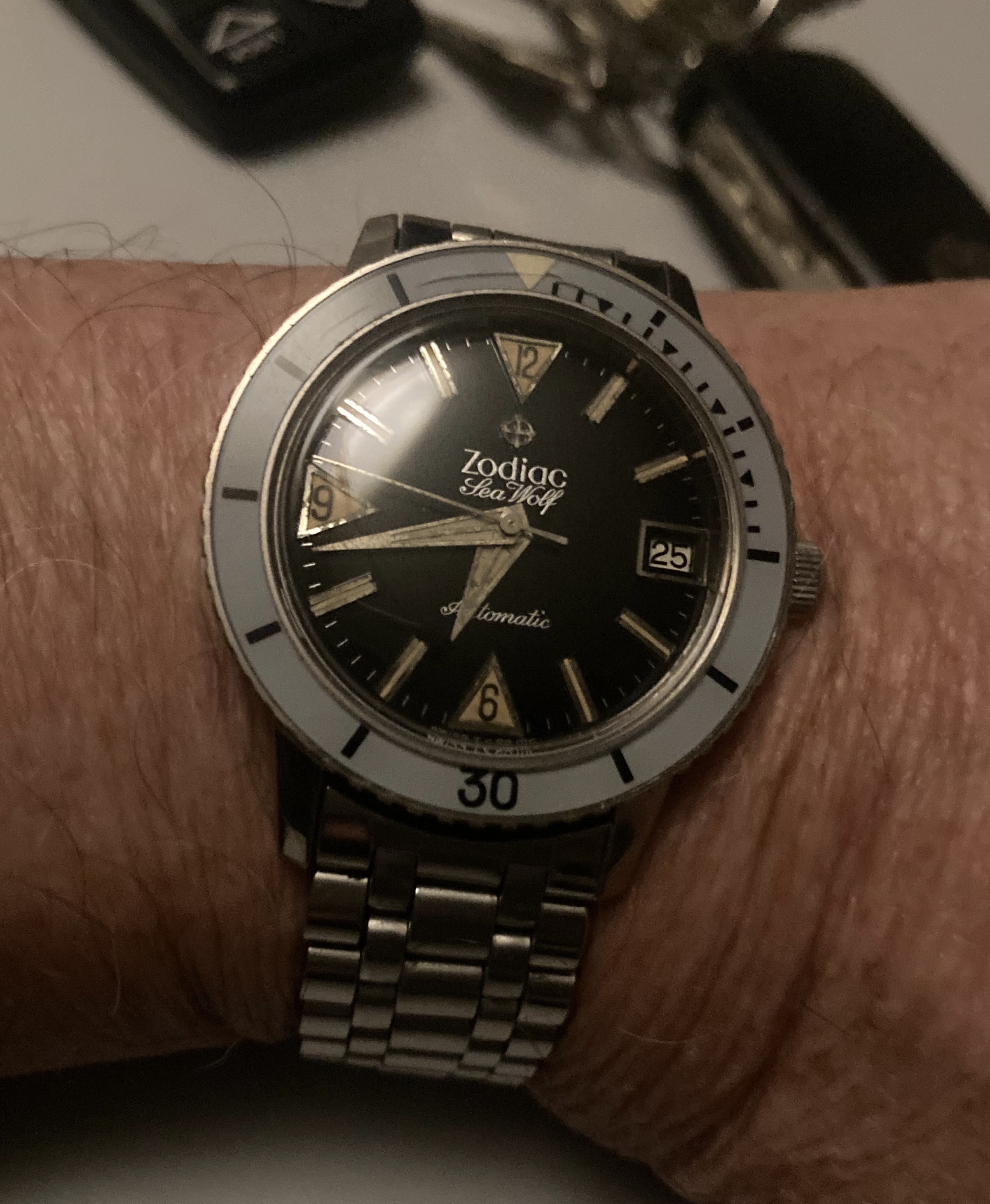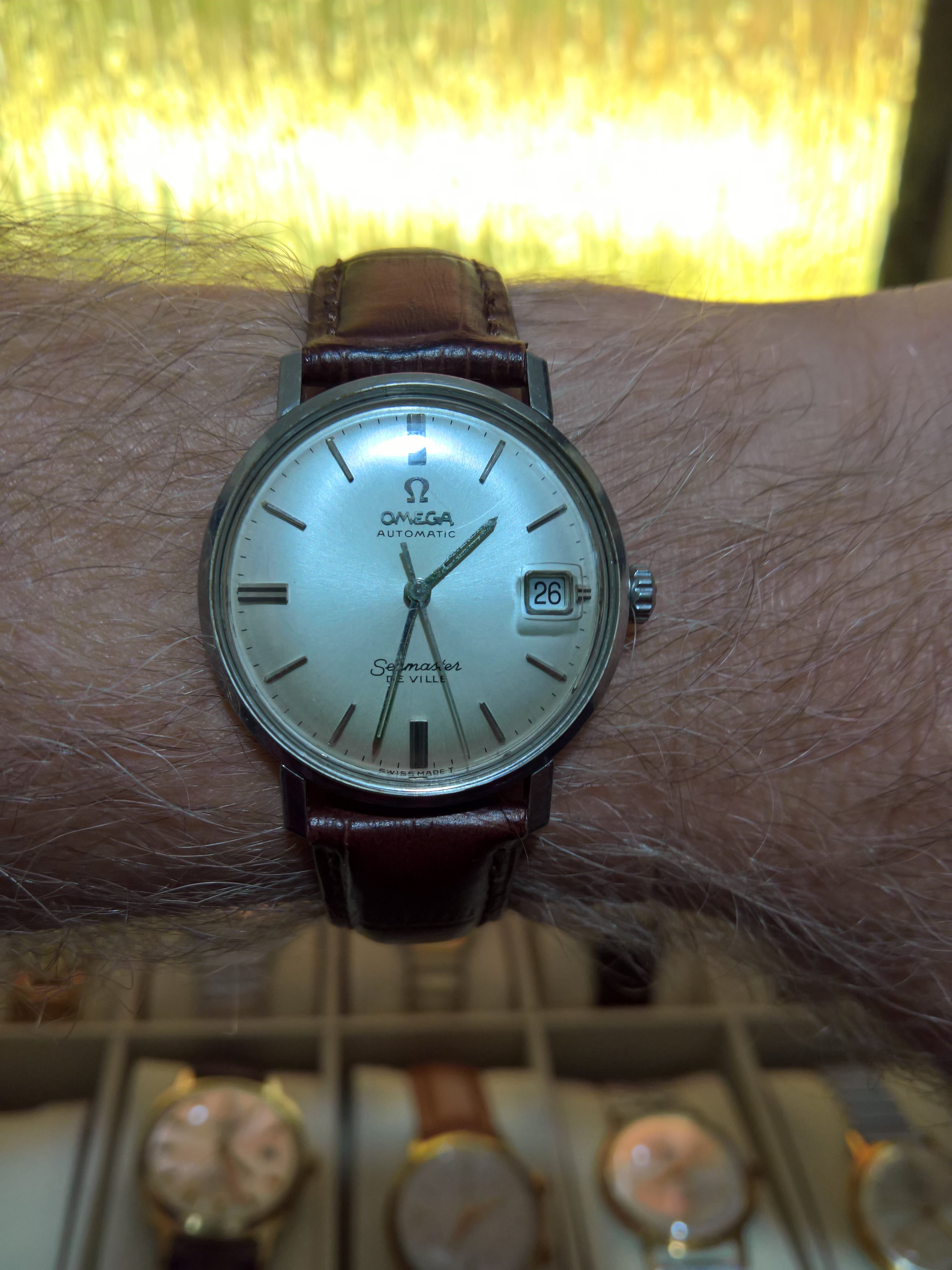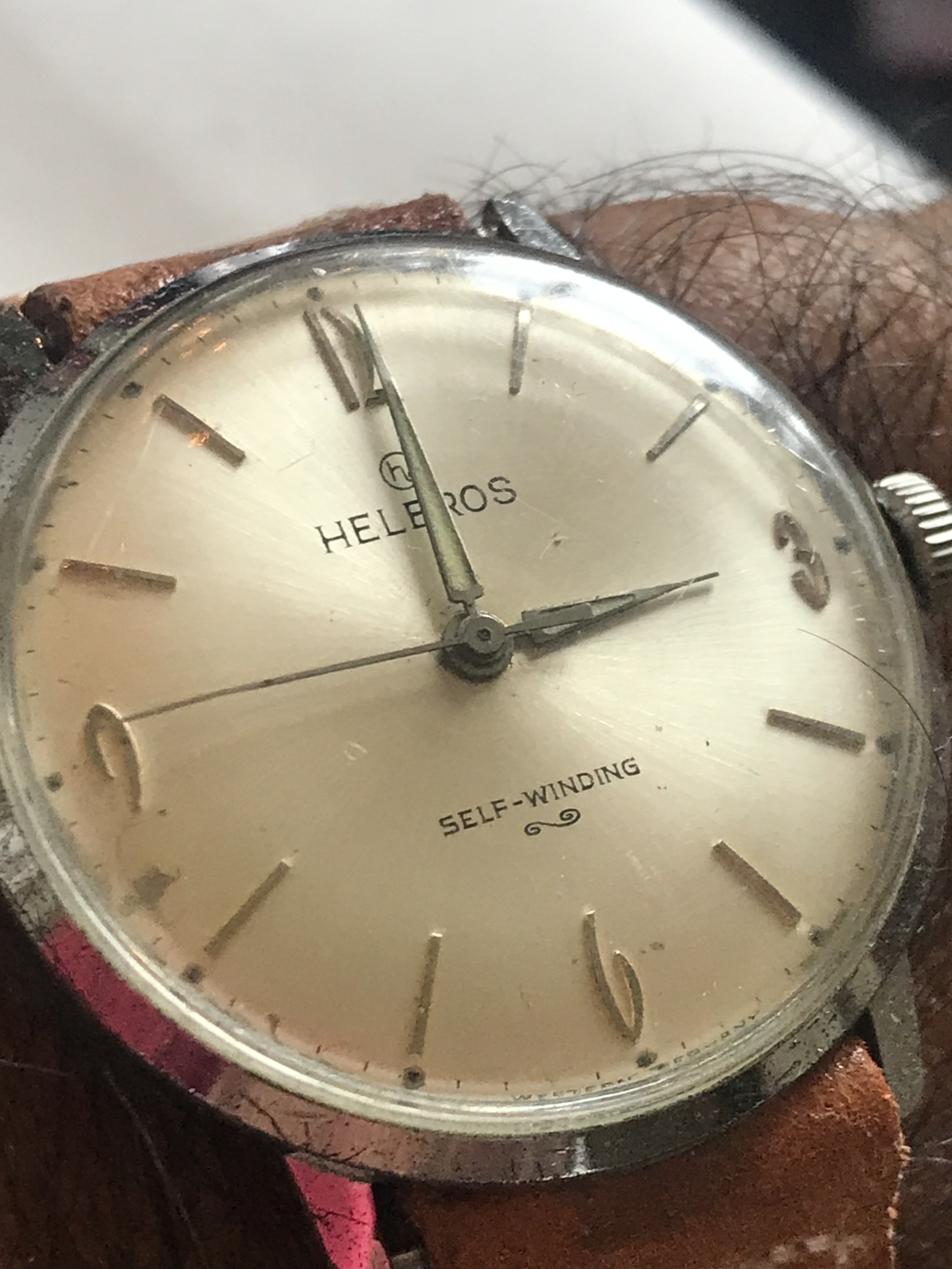From the top: Zenith El Primero, Omega Speedmaster, Breitling Navitimer (?), Hanhart Pilots Chrono (?)