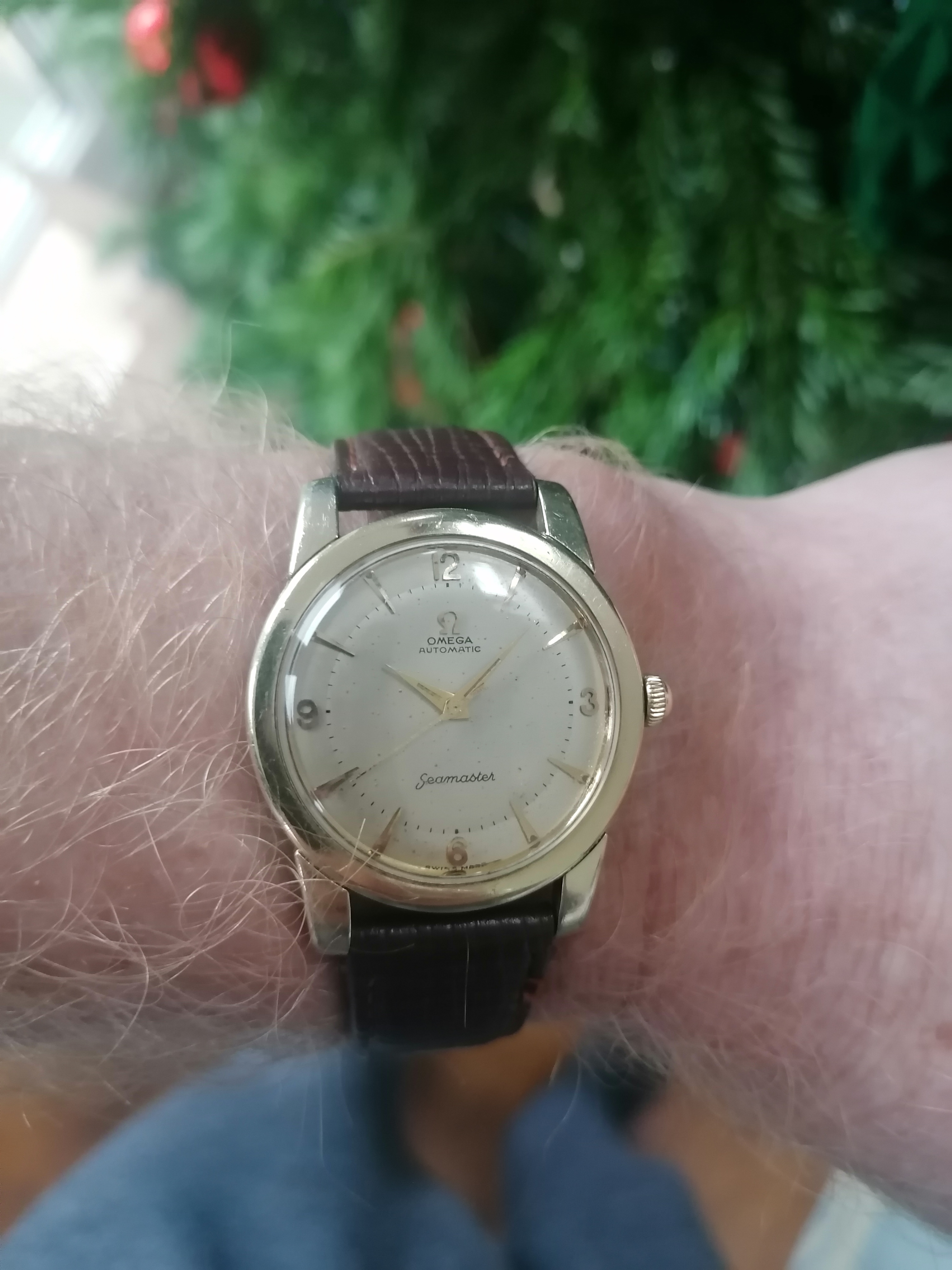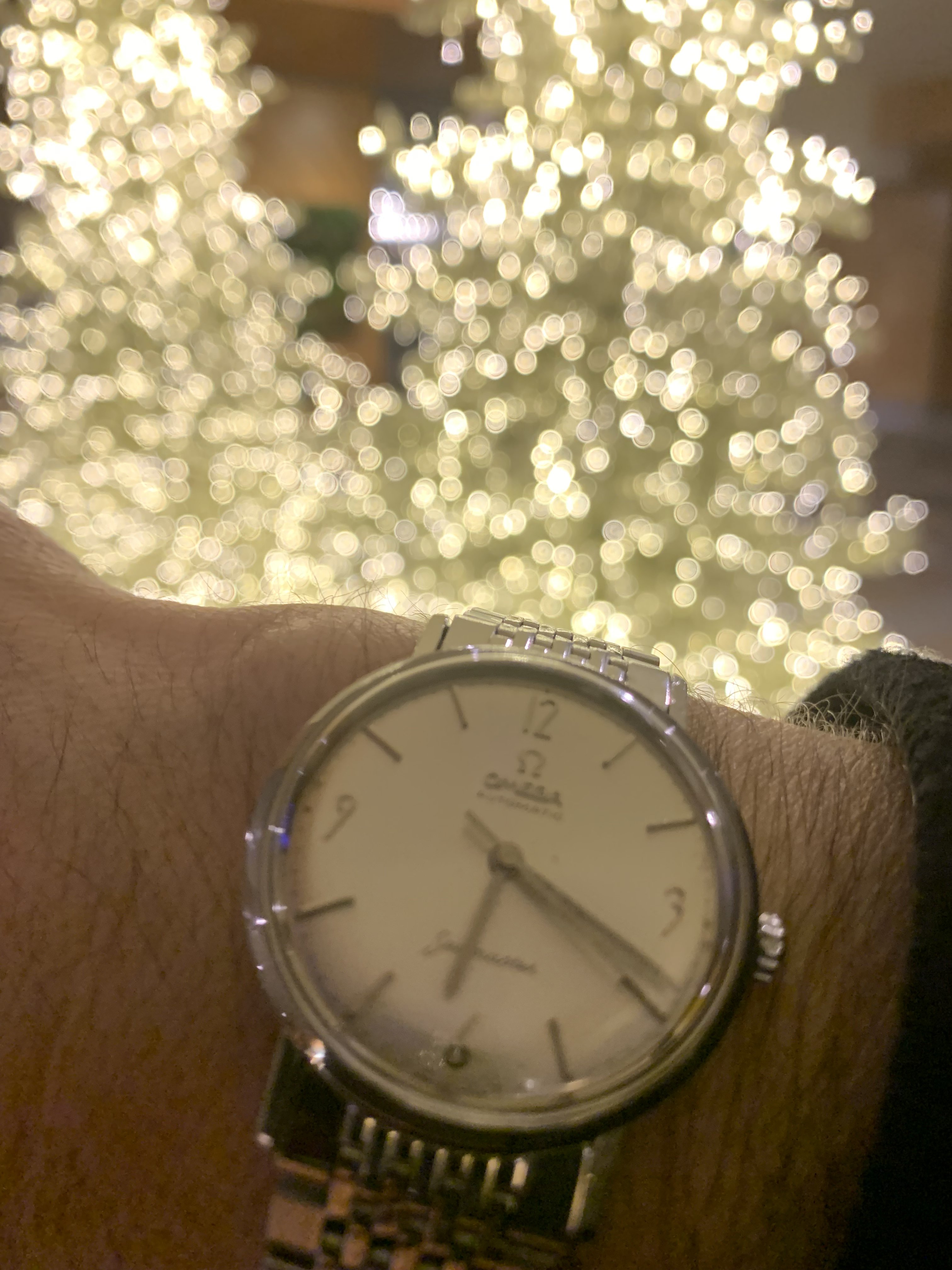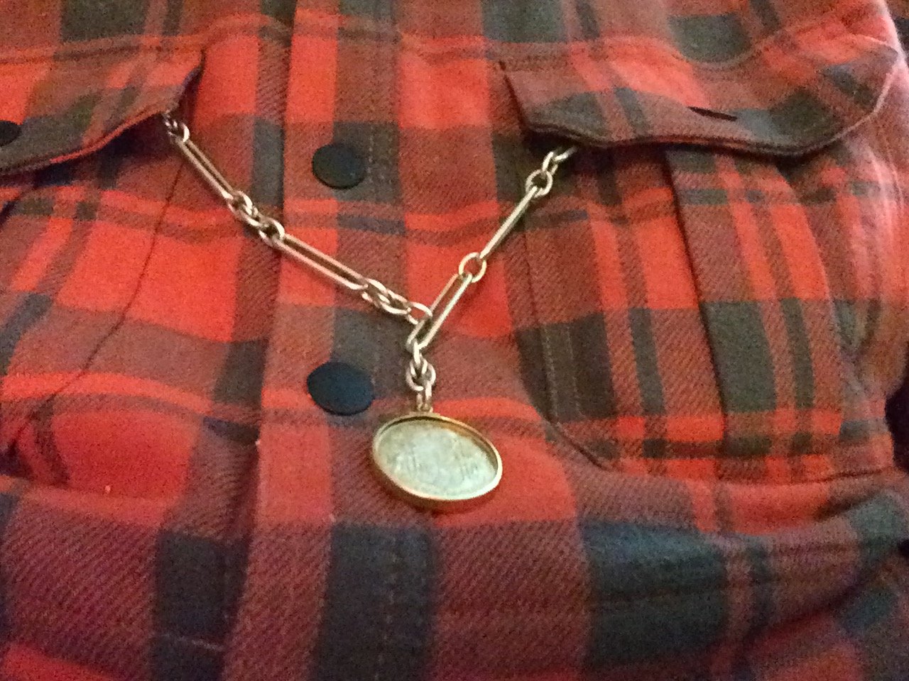 I decided to also wear a pocket watch on Christmas Day. An informal day, so no vest. But my lumberjack shirt is cozy on a -25° C day. I’m wearing my 135 year old Stewart Dawson, Liverpool, sterling silver, key wind, key set pocket watch on my 66 gram (over 2 ozs. Troy) waldemar chain, replete with a Canadian silver 50 cent piece in a coin frame.