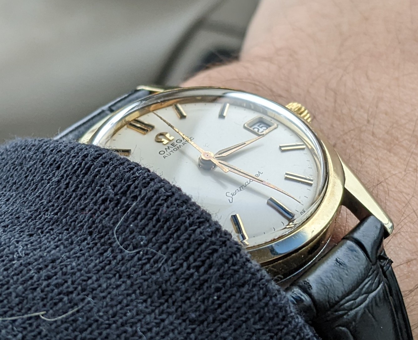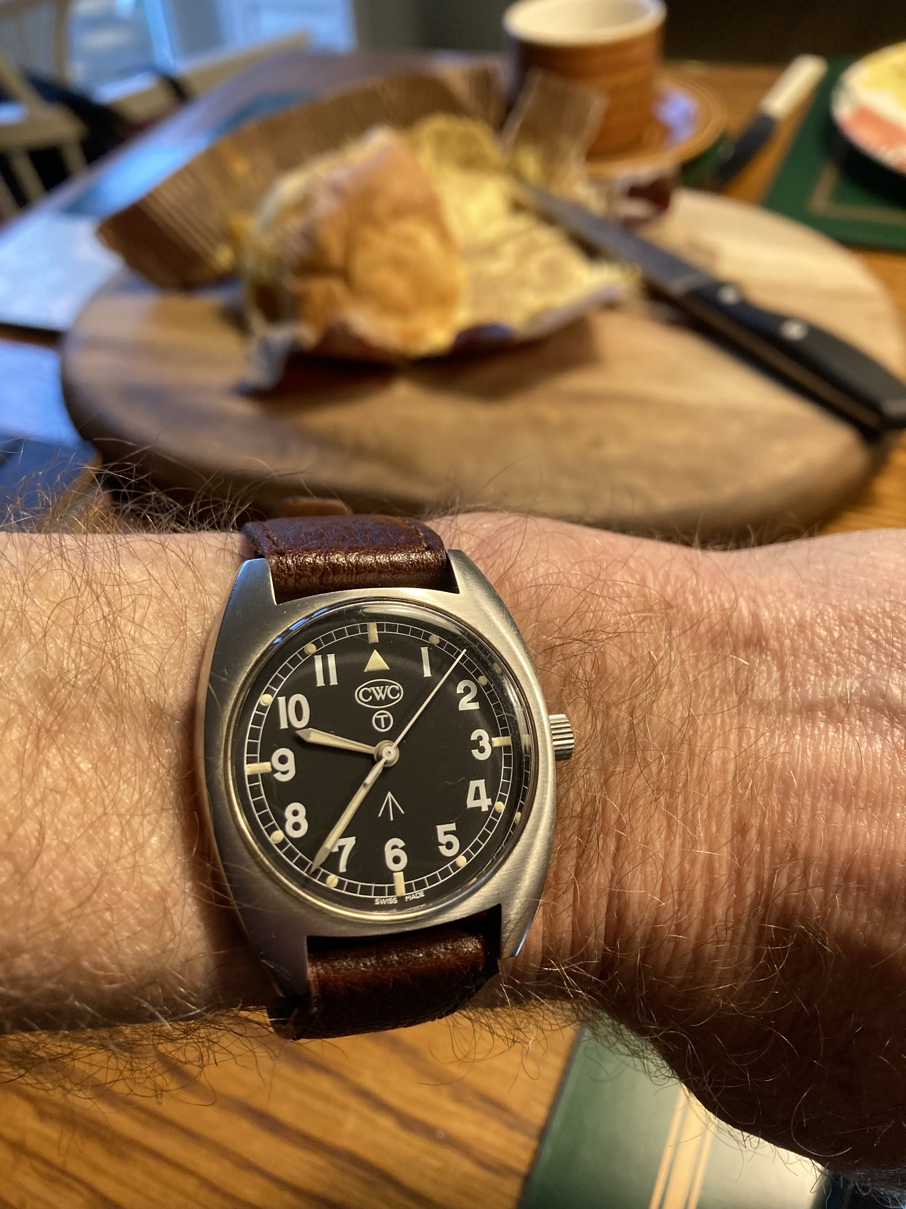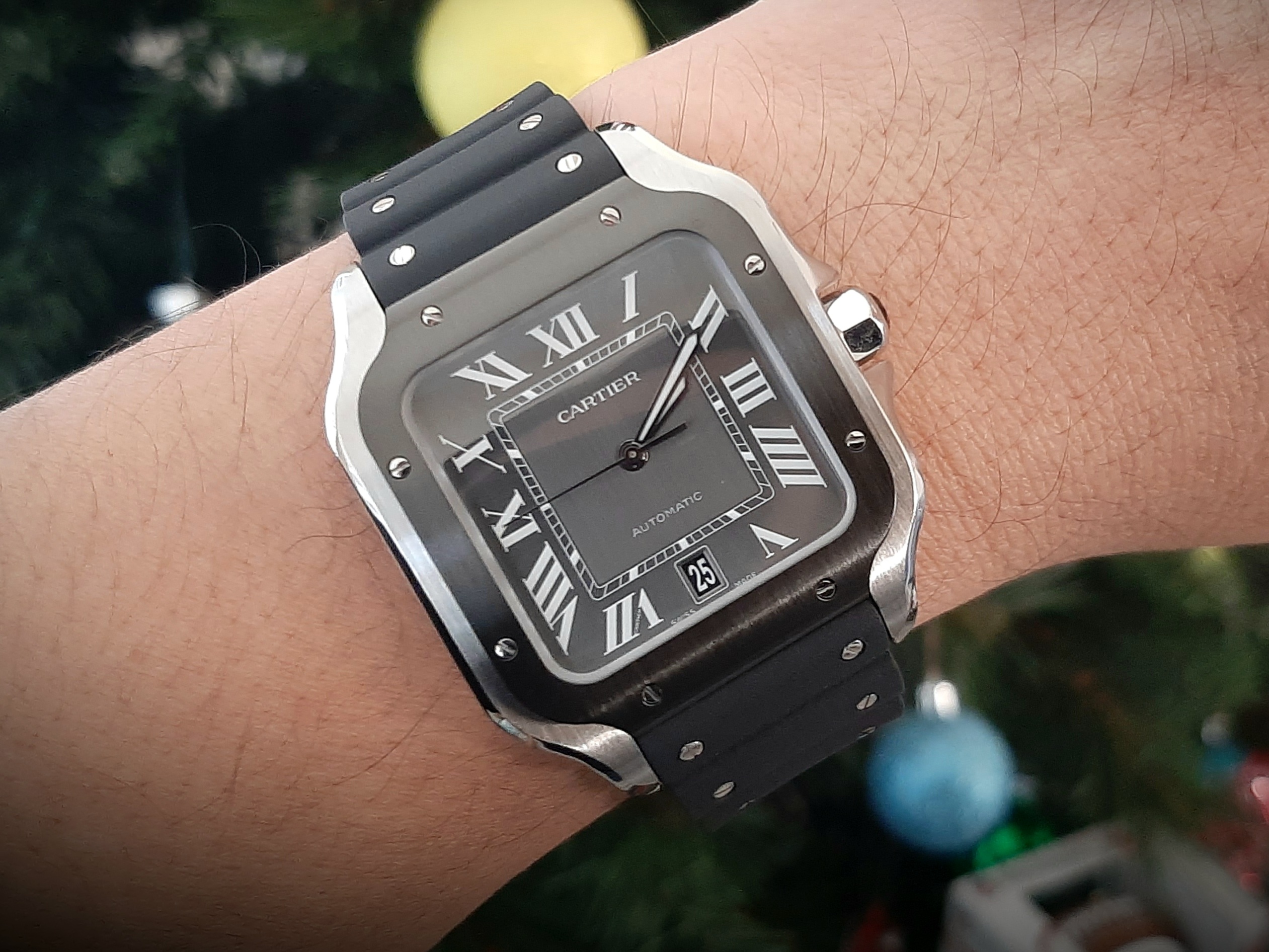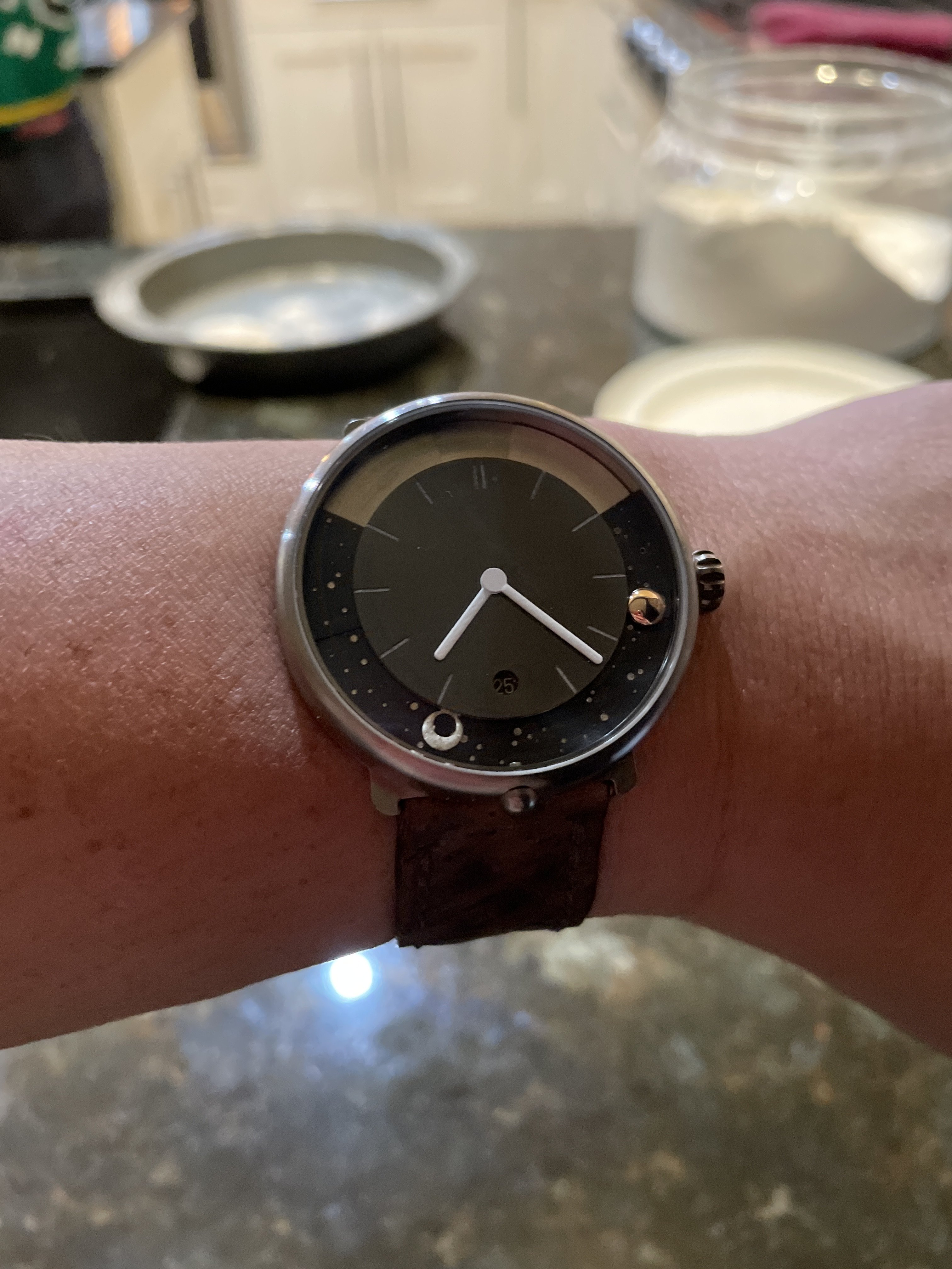 I decided to also wear a pocket watch on Christmas Day. An informal day, so no vest. But my lumberjack shirt is cozy on a -25° C day. I’m wearing my 135 year old Stewart Dawson, Liverpool, sterling silver, key wind, key set pocket watch on my 66 gram (over 2 ozs. Troy) waldemar chain, replete with a Canadian silver 50 cent piece in a coin frame.