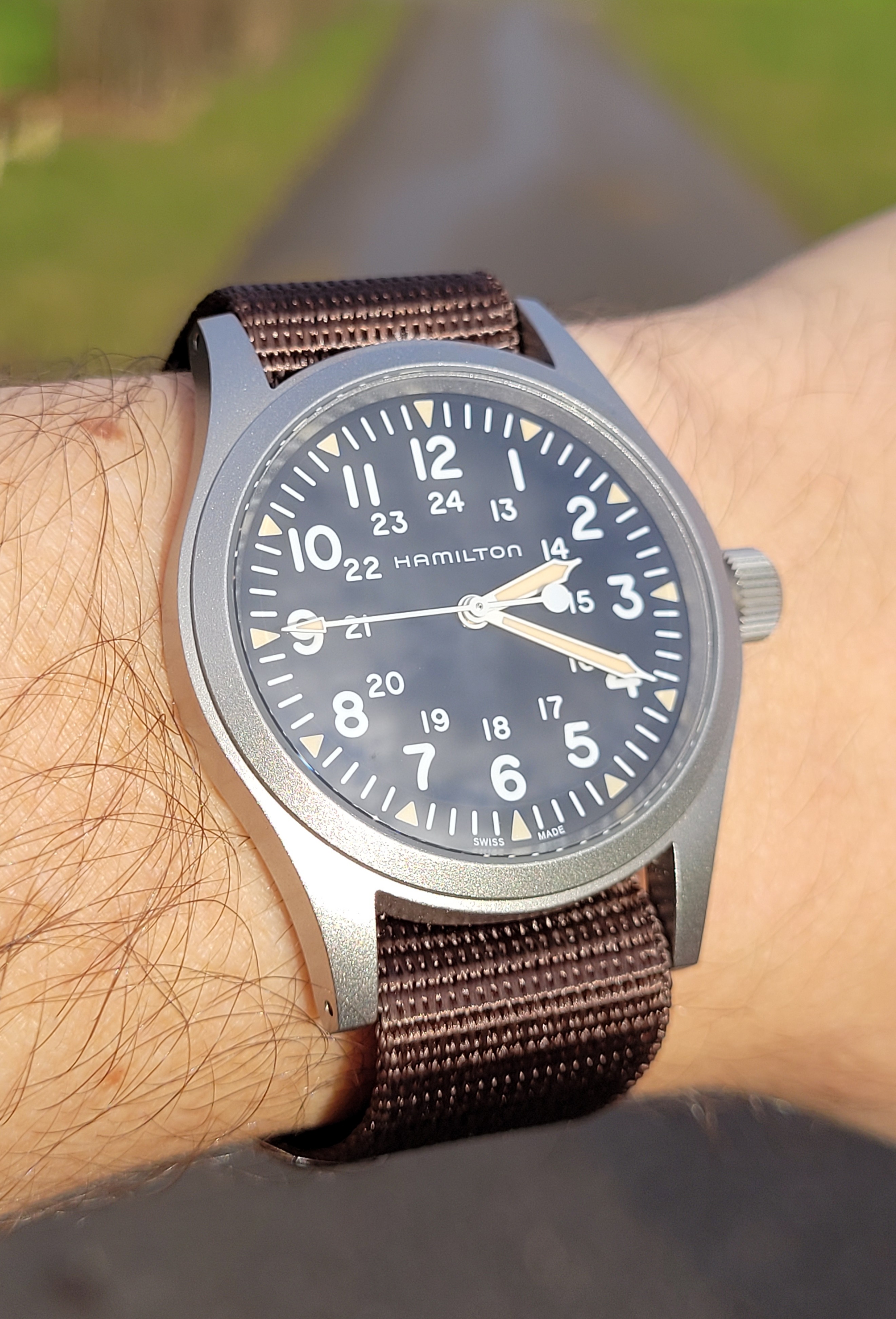 This one just came back from repair under warranty (mainspring was slipping or something along those lines) - all is well now and have been celebrating its return by wearing it all this week