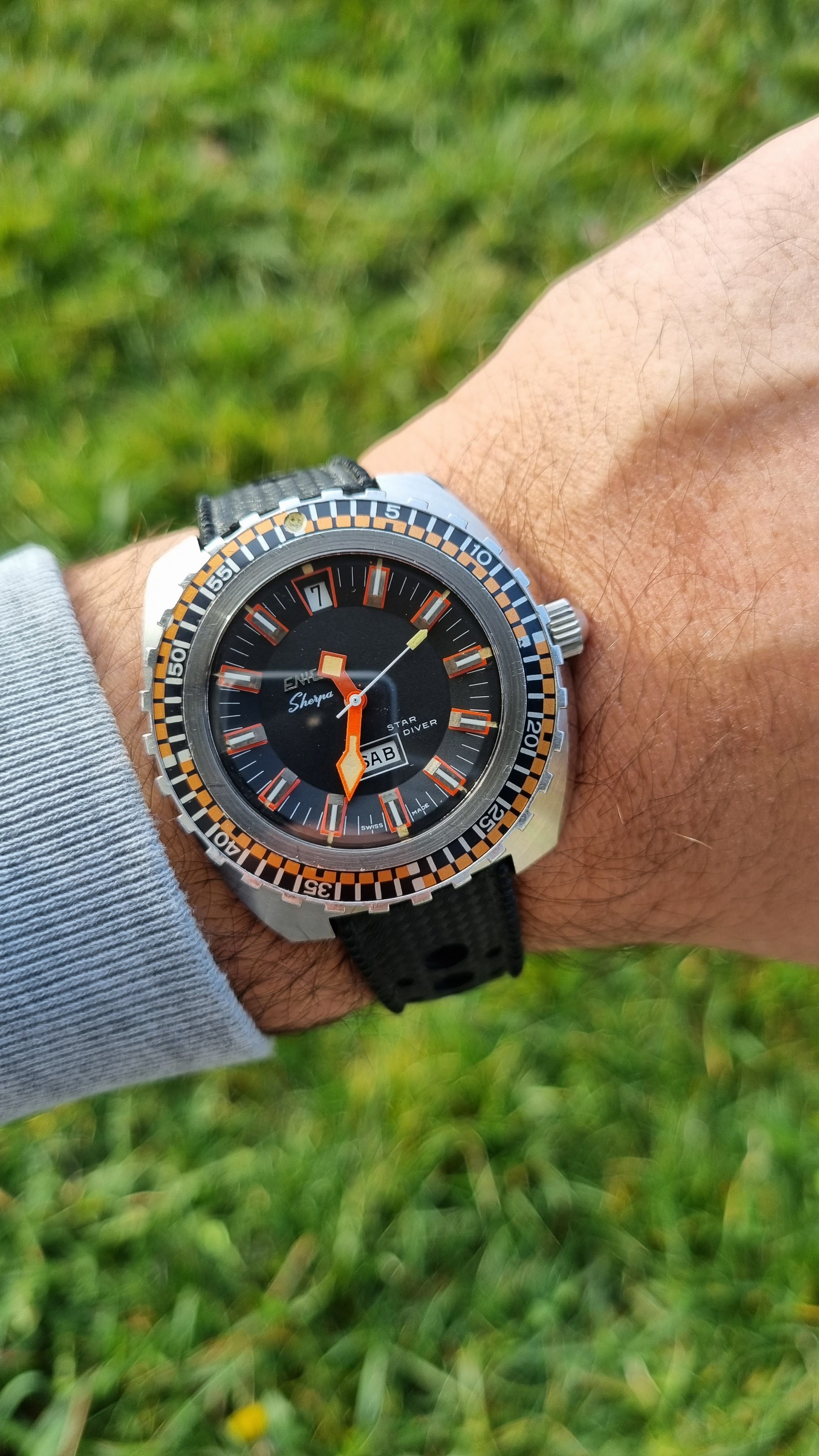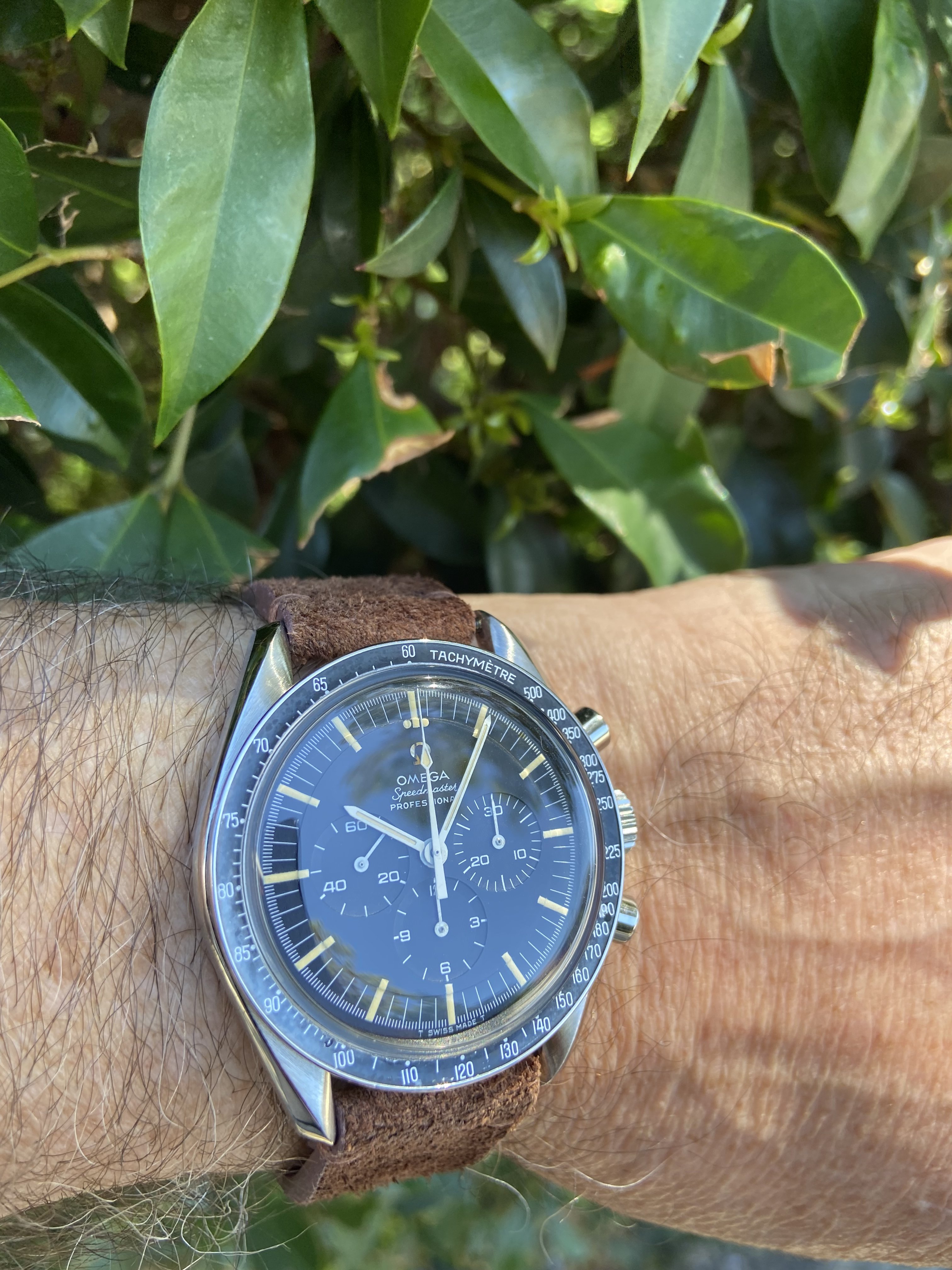 Posts 54 Likes 188 Sicario Wombat ·Jan 8, 2022 My Speedy Hesalite Sandwich on a Hawkrigger strap... Edited: Jan 8, 2022