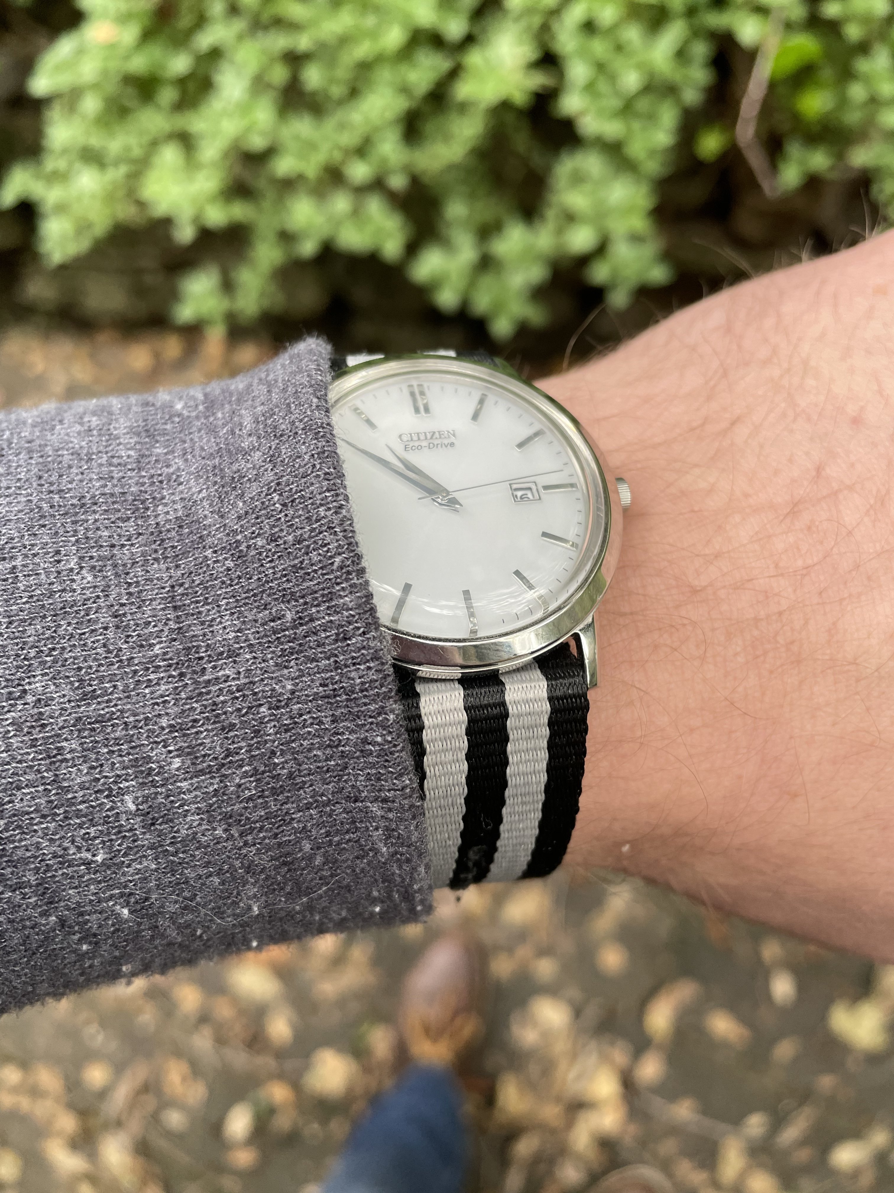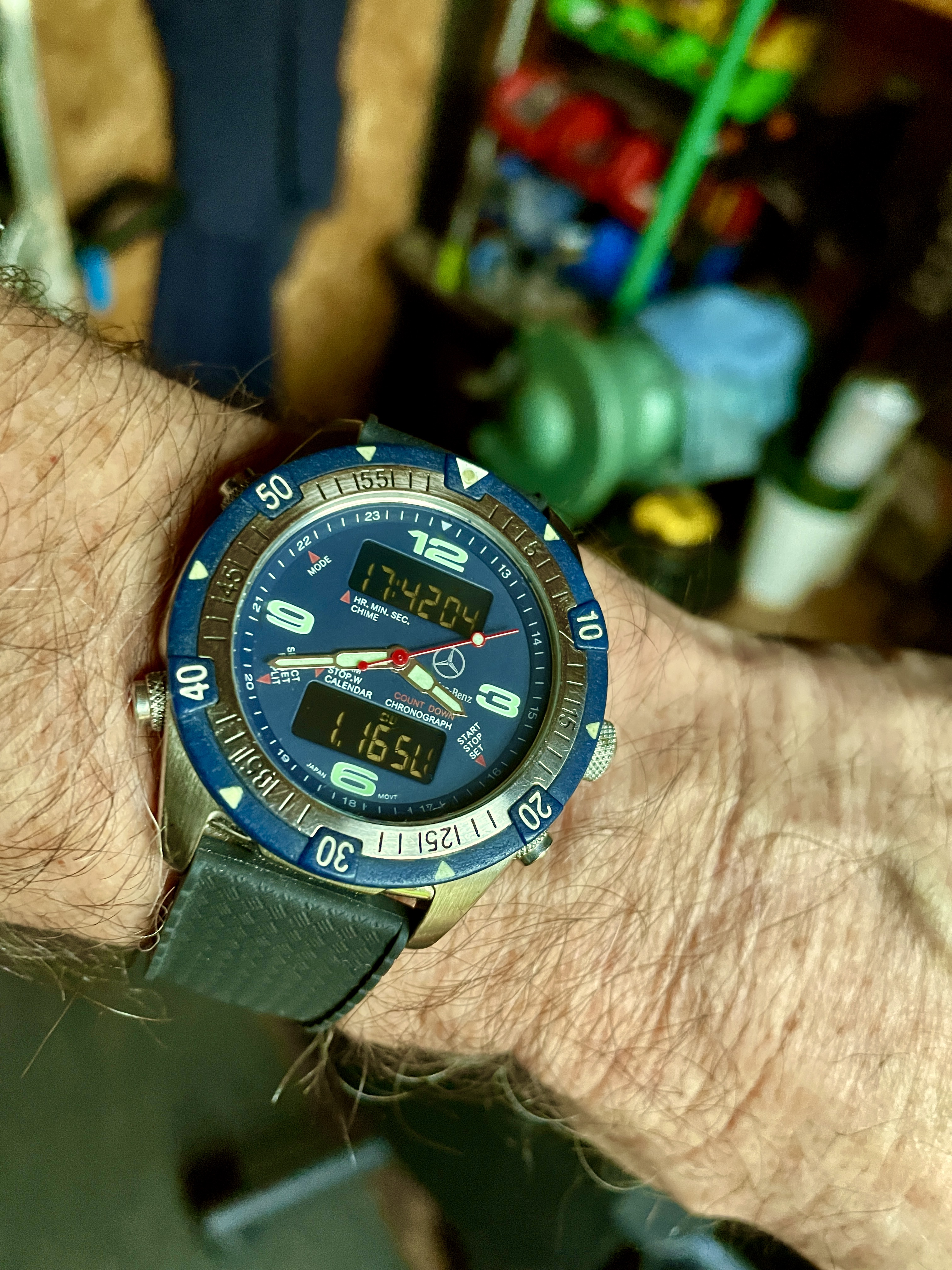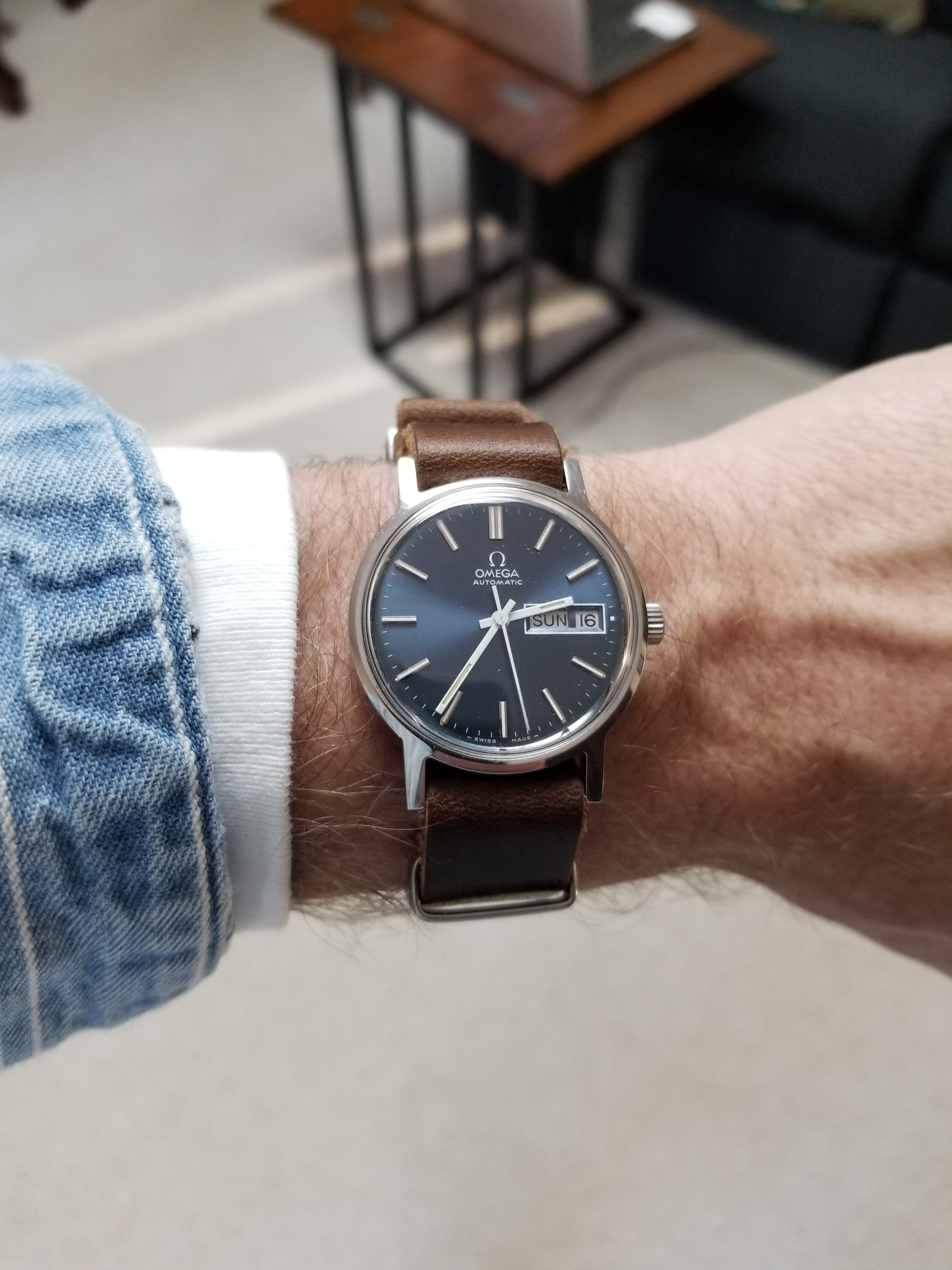 Since I retired just over a yr ago and tend to live in my blue jeans and a casual shirt of some shade of blue, this set-up has become my go to, worn at least a part of every day, rig. I know most of you real watch connoisseurs don't consider this model very collectable, whether because of the movement or the lack of bevels and refinement of the case, I find this light to soft blue dial to be perfect for daily casual wear. And it is a bit like me, I suspect, plain and unrefined. I also want to give a shout out to Fred of @janice&fred, since I see he has posted again recently. He sold me this watch at a very reasonable price and even threw in a couple of other watches in the deal. Even a ladies watch which my wife wears occasionally and that is something worth noting, she is not a collector at all. For what it is worth, Fred, I don't expect to ever part with this watch, I think it is a keeper. If you have read through all this, thank you.