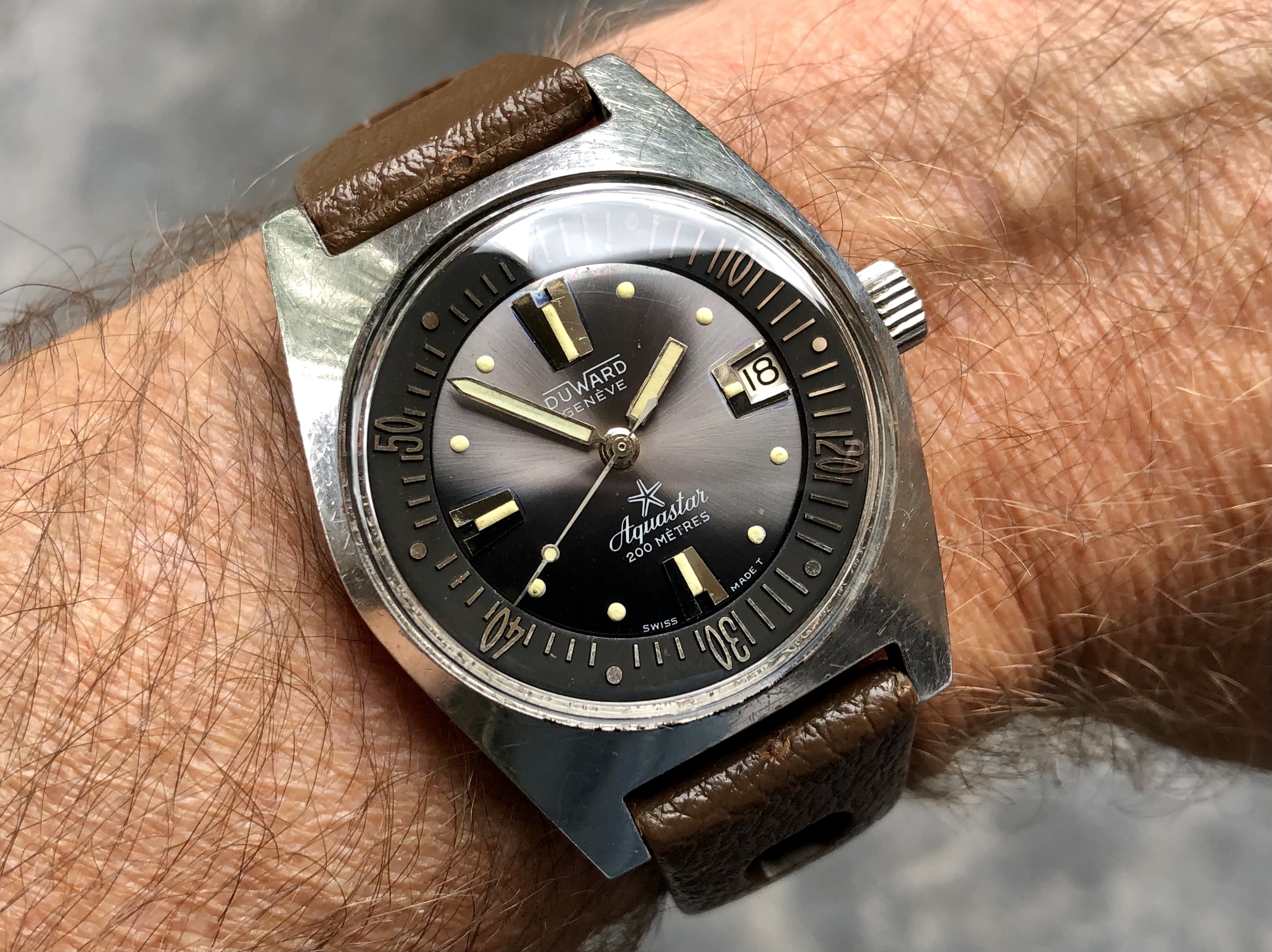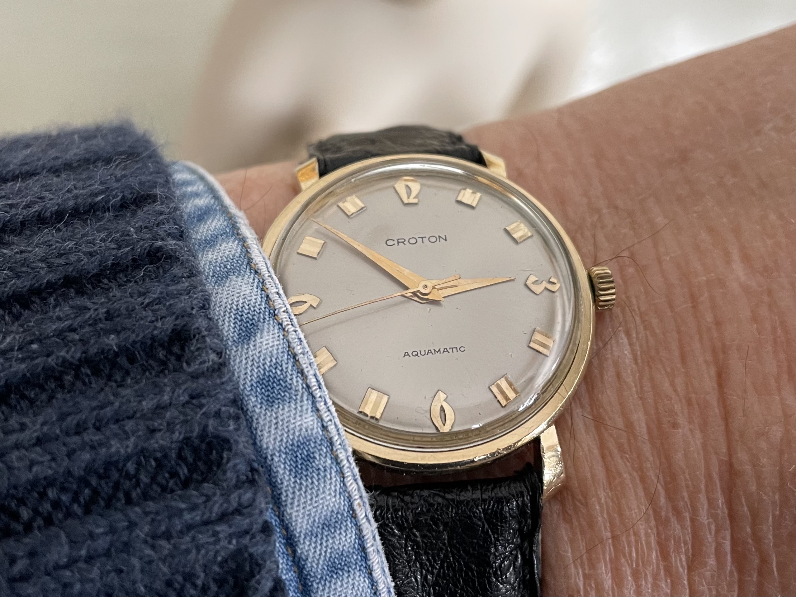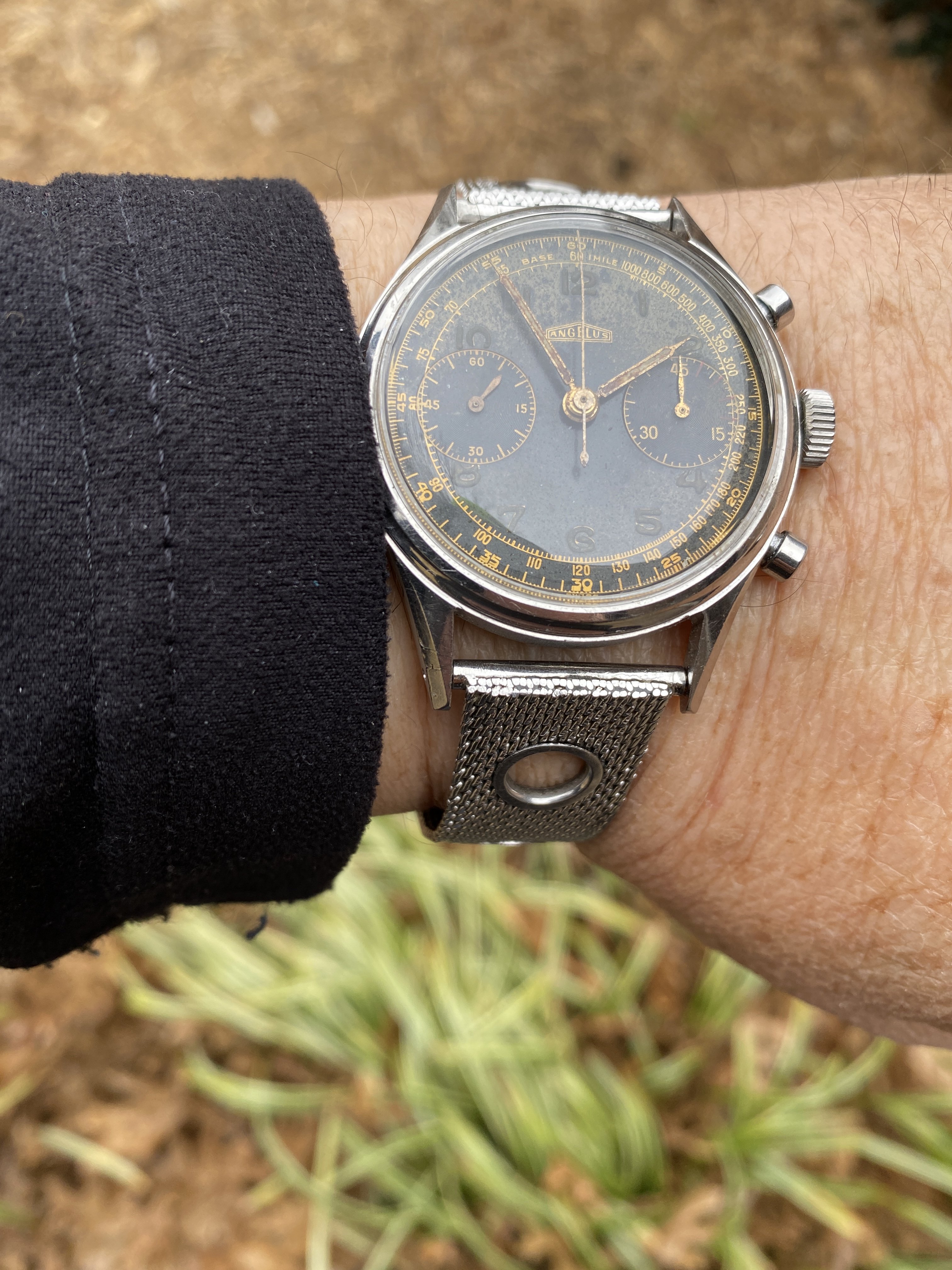 Nivada Chronomaster Aviator Sea Diver (CASD). That name pretty well covers it all! This is the original vintage model from the 1960s, not the recent reissue. There are a number of dial-hand variations but this one is my favorite. And at 38mm it works well for me. Plus it's a v23 movement.
