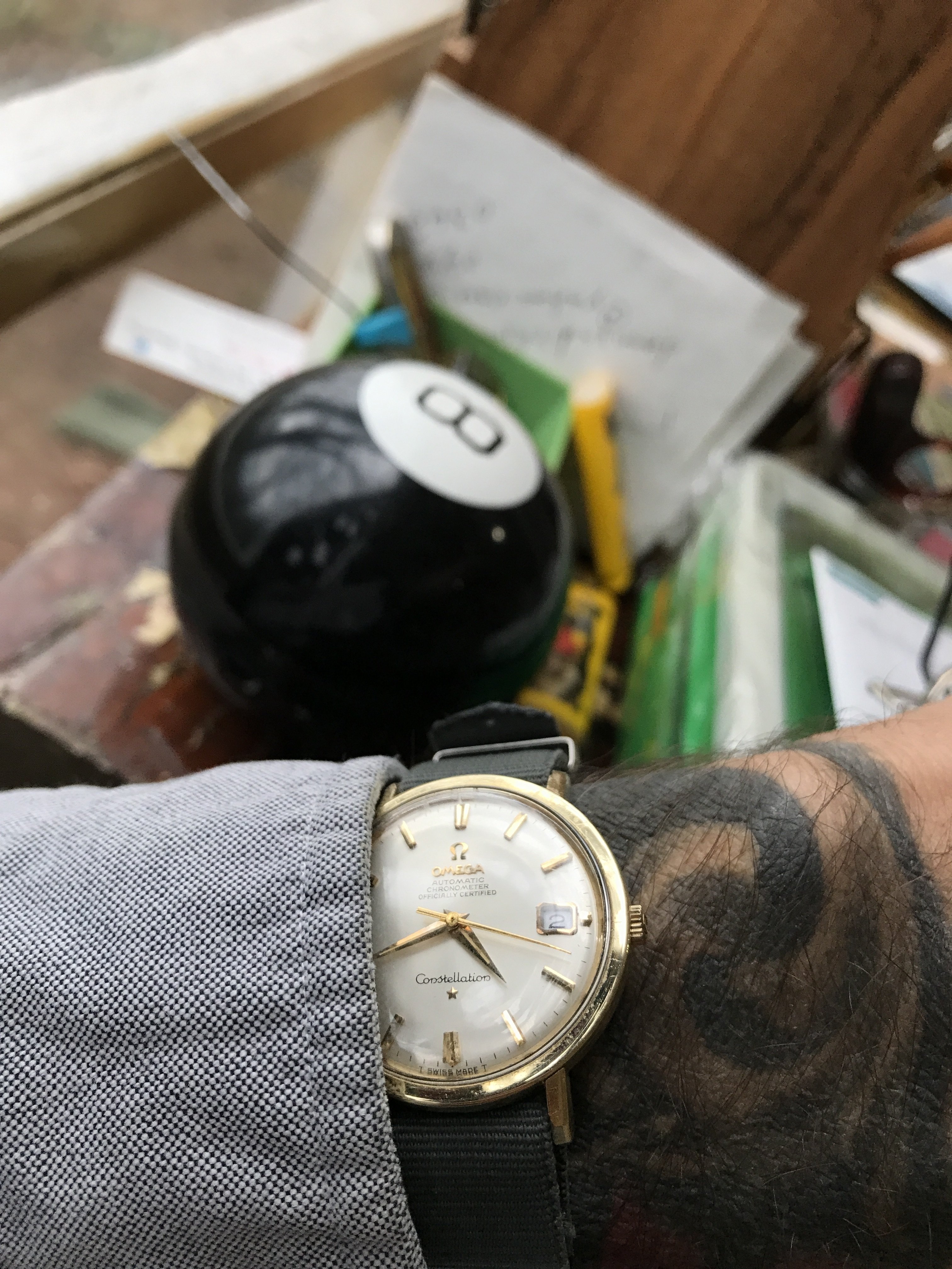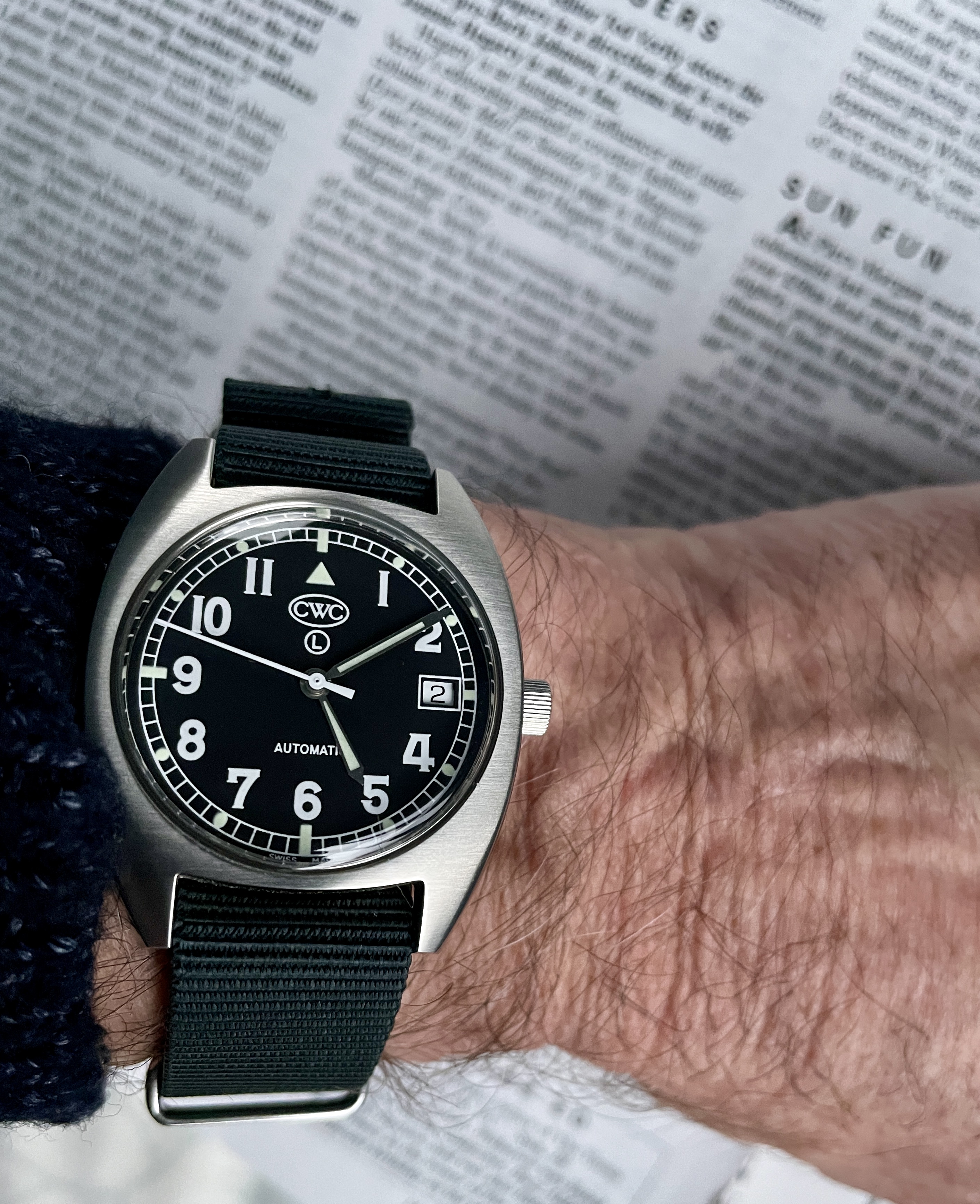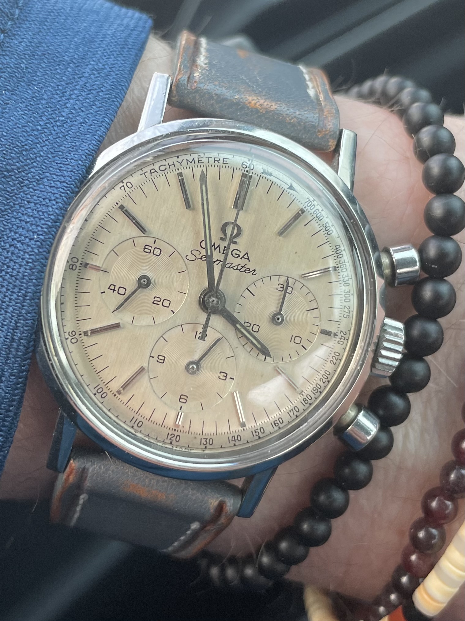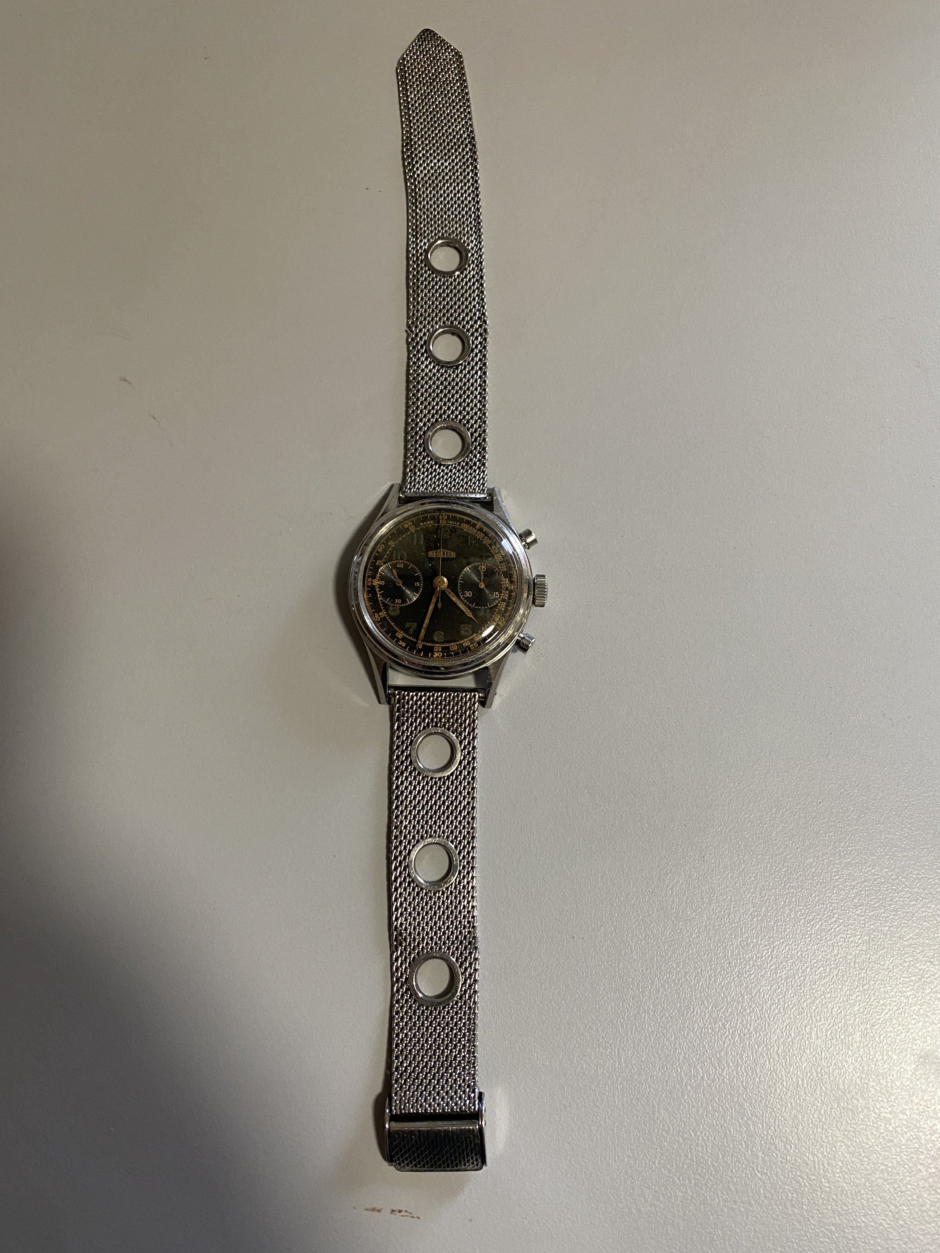 Nivada Chronomaster Aviator Sea Diver (CASD). That name pretty well covers it all! This is the original vintage model from the 1960s, not the recent reissue. There are a number of dial-hand variations but this one is my favorite. And at 38mm it works well for me. Plus it's a v23 movement.