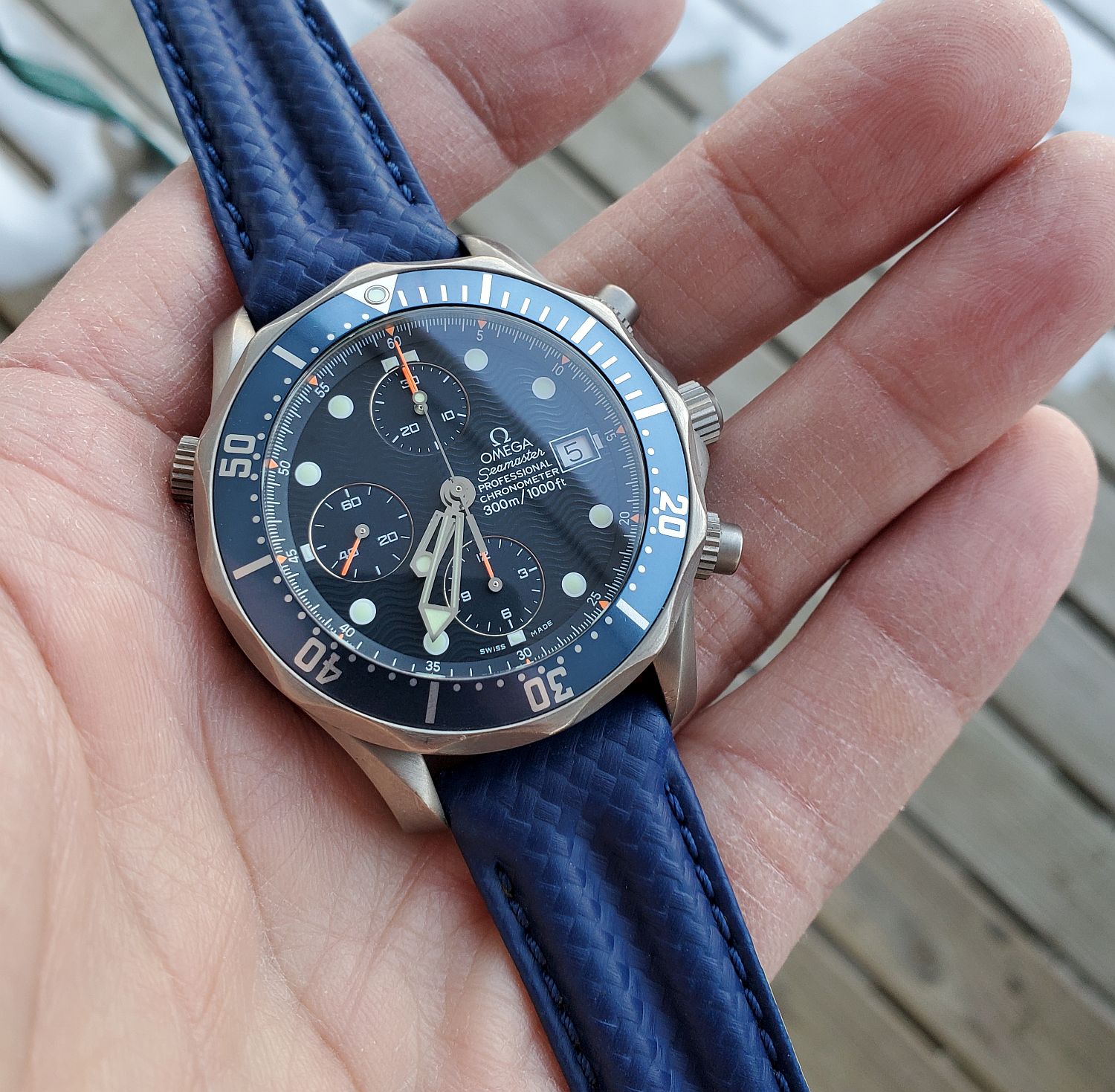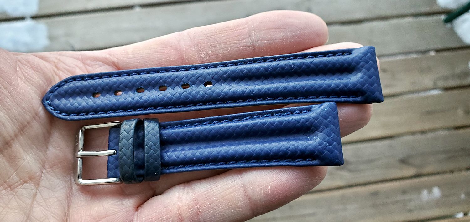Posts 5,127 Likes 124,824 Lou P ·Feb 5, 2022·YaY! Digging through the strap box...forgot I even had this one! It's a Morellato double ridge CF grain like the red one I like on my X-33 G1. Just don't have a lot of 20mm blue watches for some reason. Giving it a try on this faded fella...YaY!