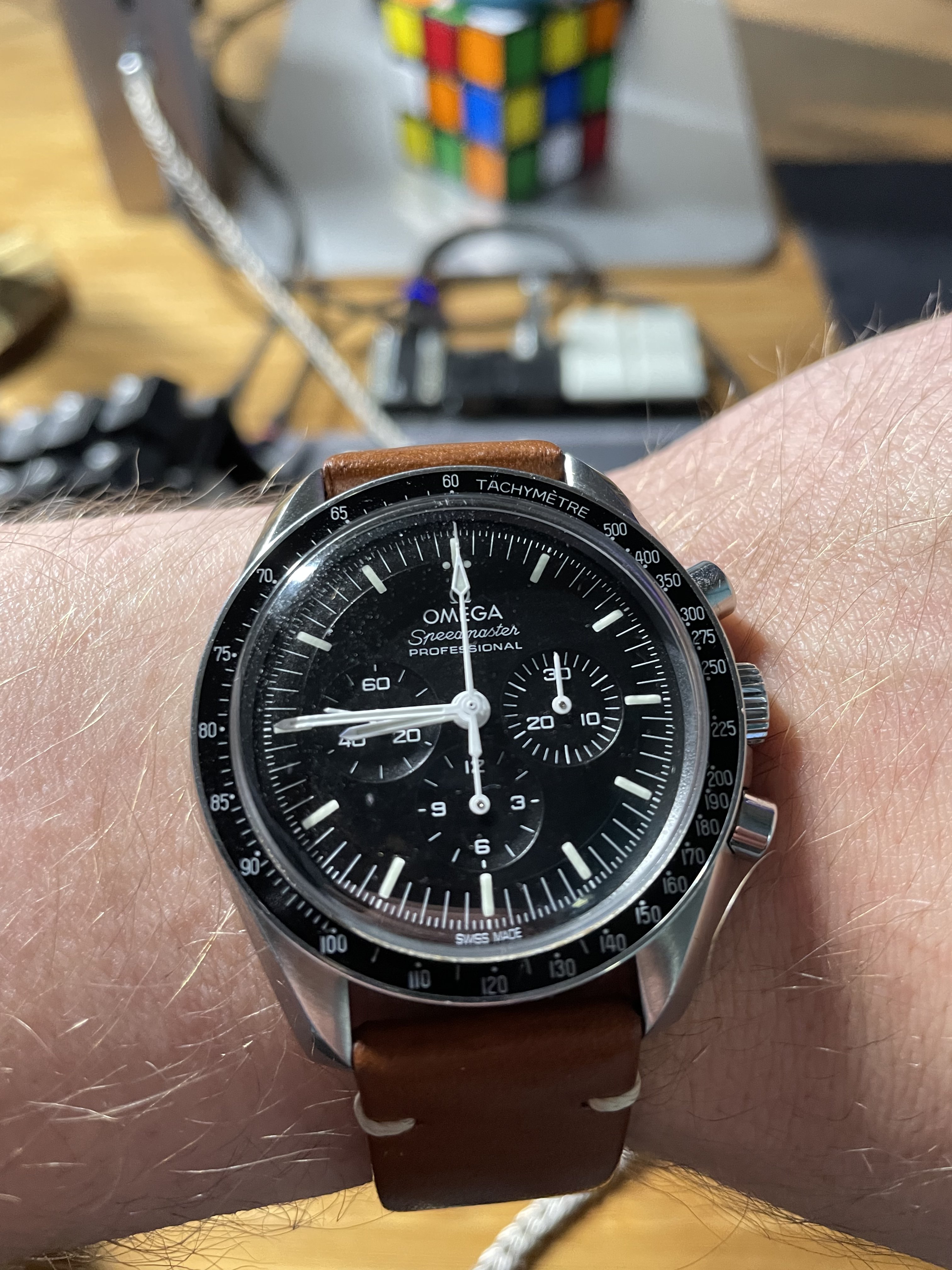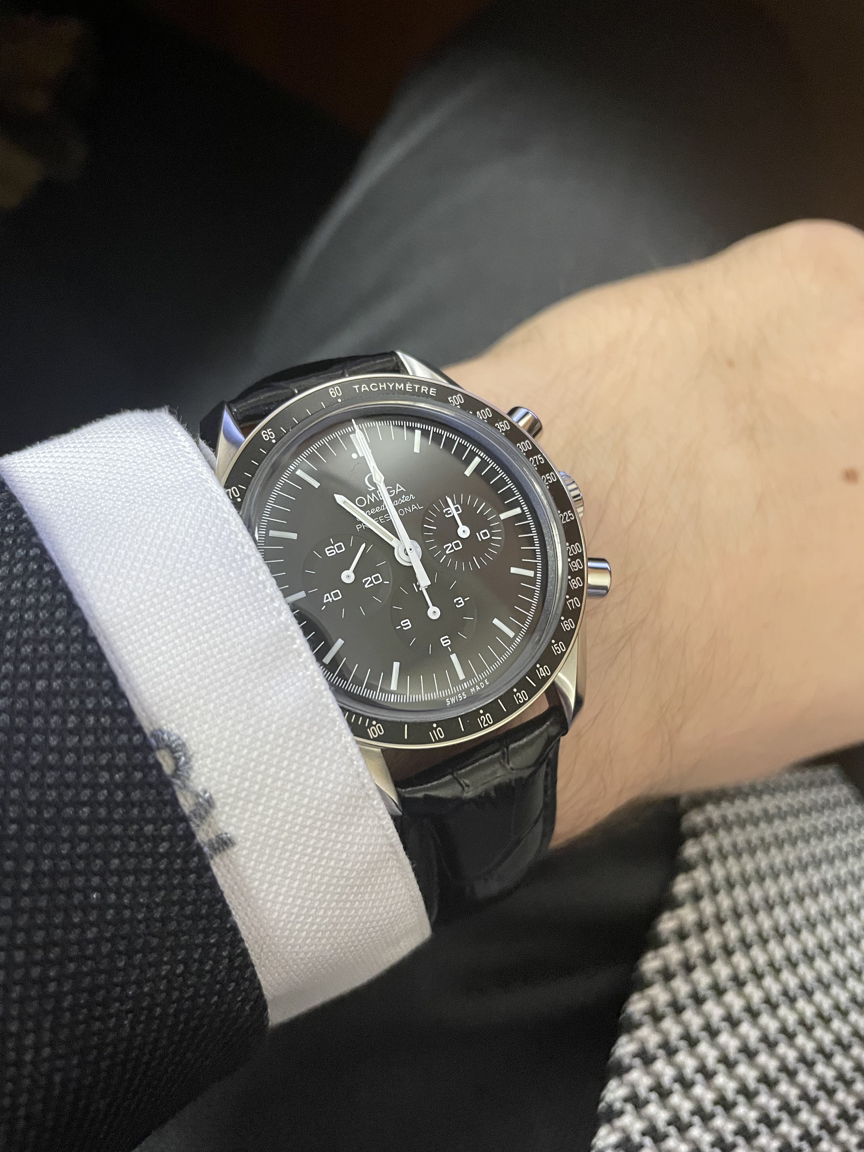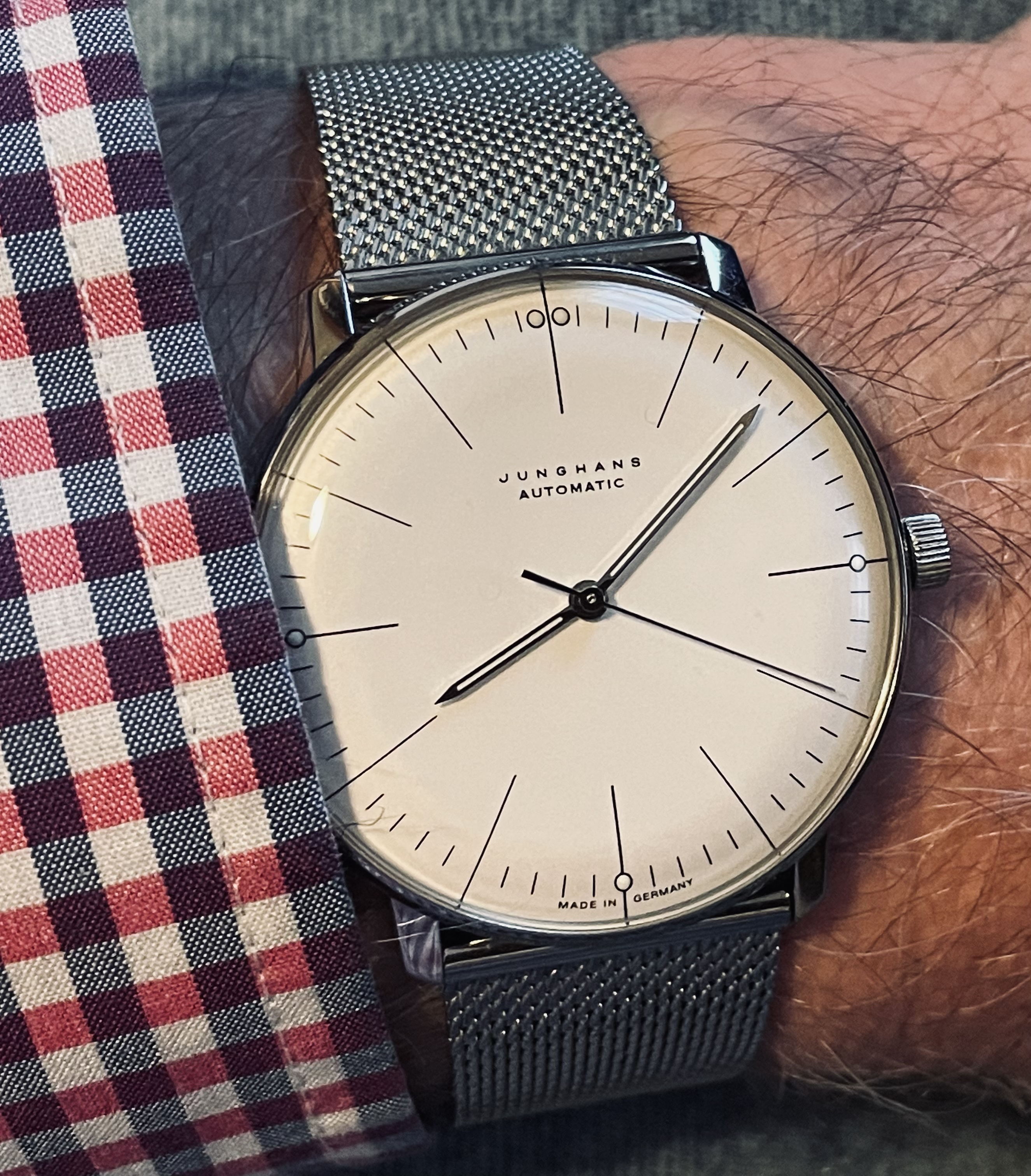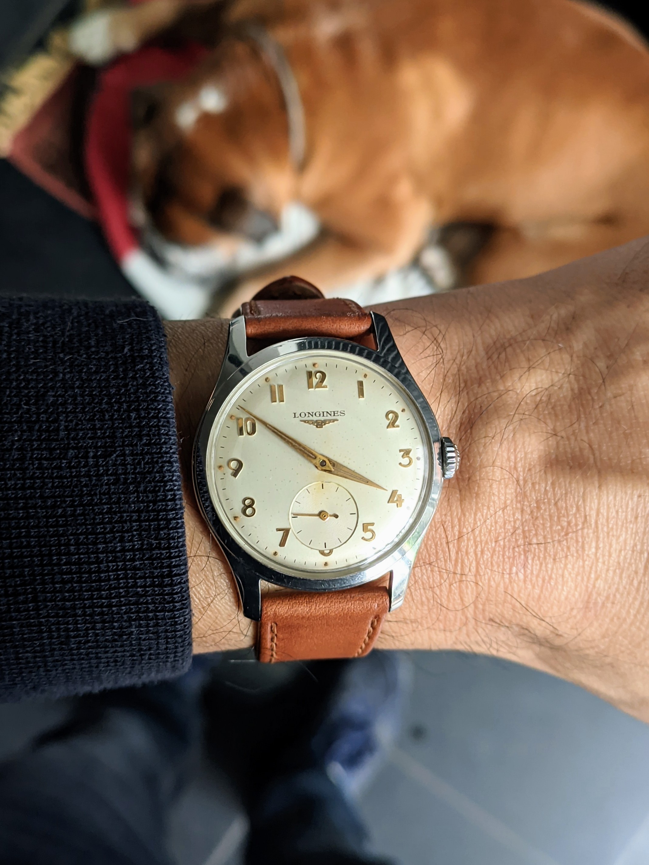 The second Accutron is my 1967 Accutron Astronaut. This one has had me tearing my hair out for weeks, to try to get it right! On Sunday, I cleaned it for the second time, but this time, I fitted a NOS genuine Accutron 214 index wheel, and adjusted the index jewel spring a teensy bit. With Accutrons, it is my preference to service them, then phase them to operate properly on currently available 1.55-volt batteries. They are readily replaceable, and they last a lot longer than the modern modified Accu-Cell which I find do not last a full year. I have finally succeeded with this one. So, off for the day wearing two watches. Lunch with a brother collector.