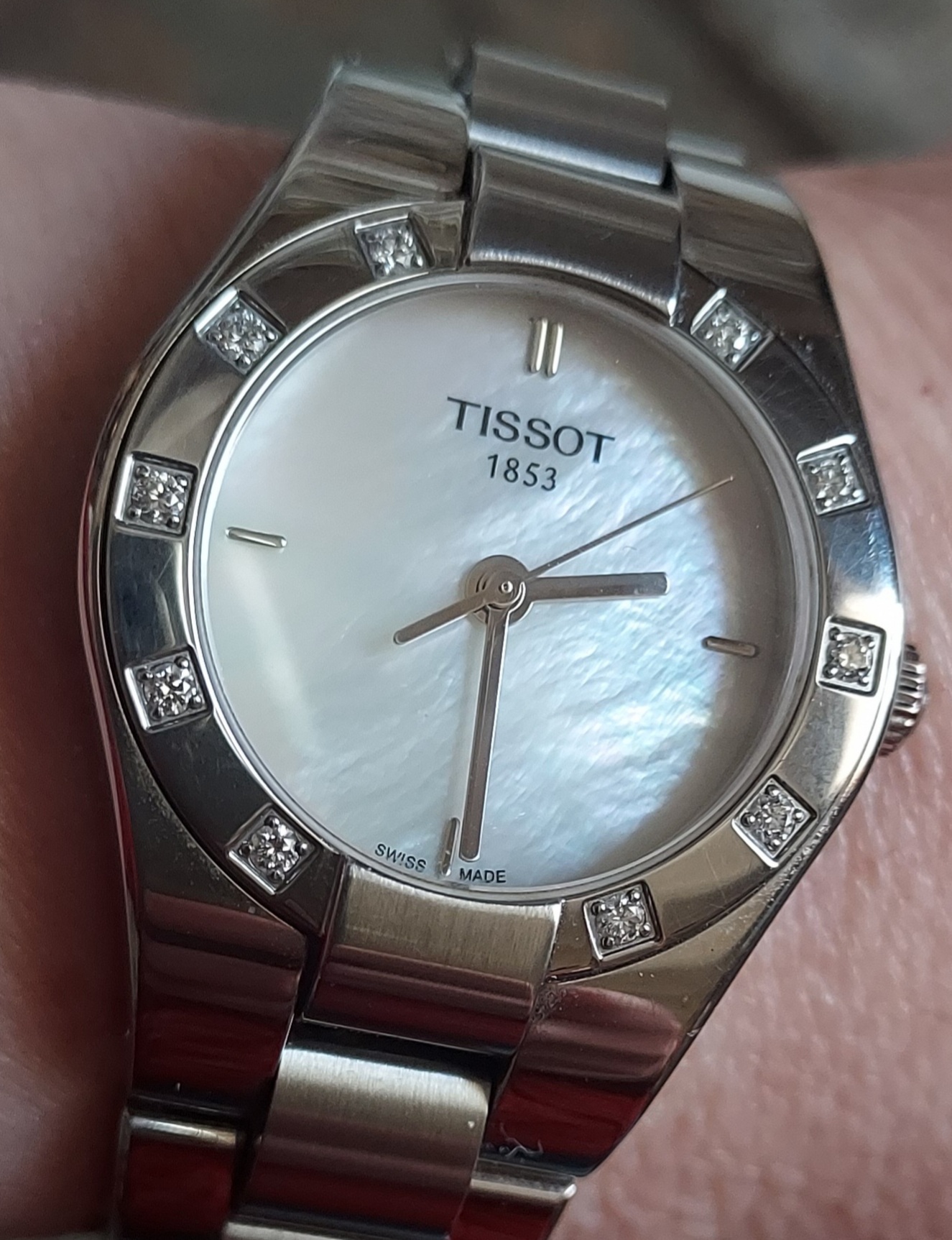 A lady TISSOT Glamsport mother of pearl dial. Love mother of pearl dials. Sadly quartz - no mecanical or automatic option was available... But I wanted exactly that: sporty with a touch of glamour and... not too much expensive ( don't tell my husband I knew the price, it was a gift, haha!) Love it and wear it most of the time it is perfect for every occasion and not a show-off watch, which I dislike. And I don’t like diamonds on the dial either, nor with gold. Stainless Steel is perfect!