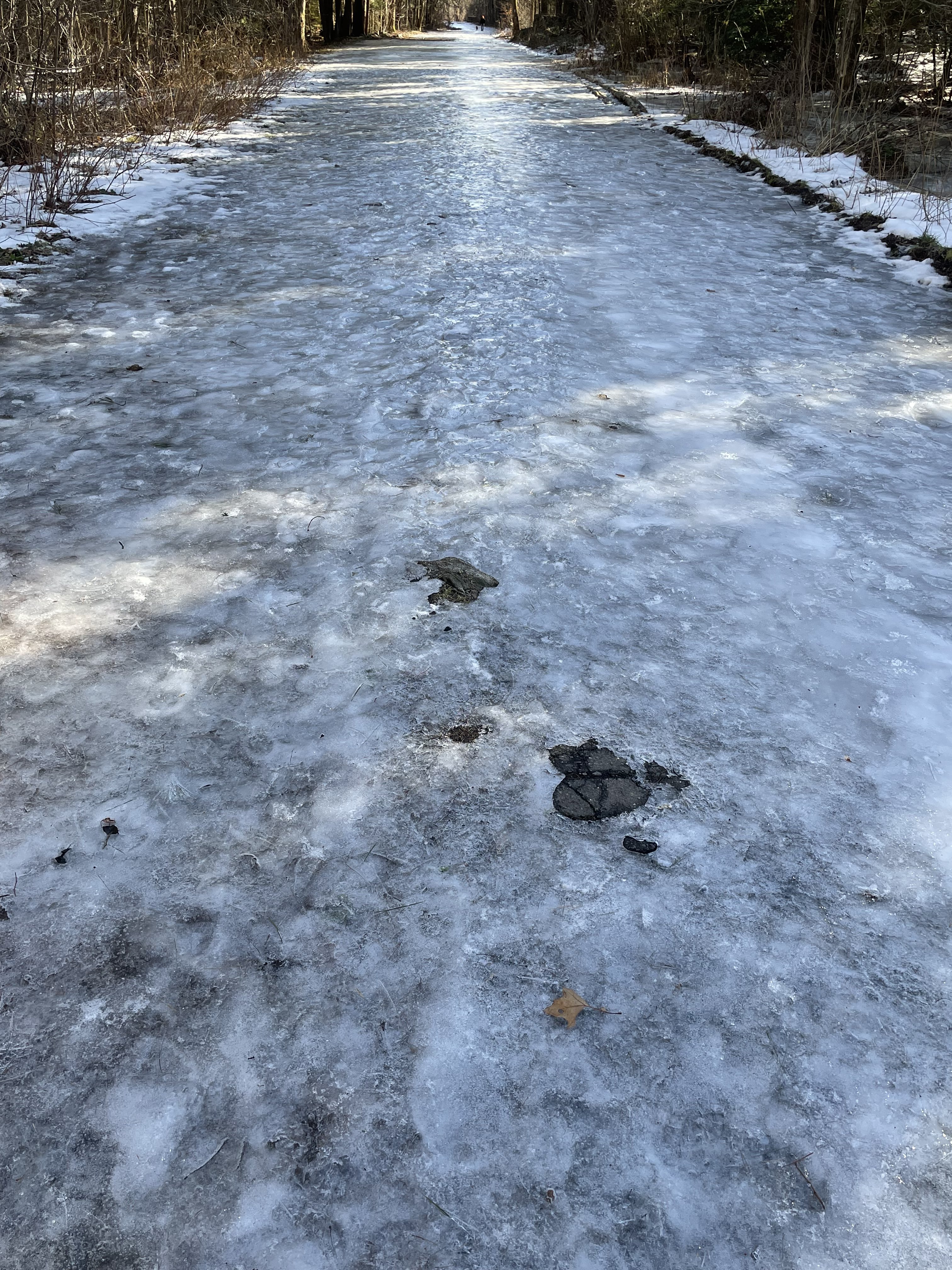 Darn sorry double post today I completed my duties everyone home and safe thought it would be nice to check out the water but the trail is a skating rink I’m 85% sure I’ll land on my behind at least once to get to the water trail and I just don’t feel like risking it today