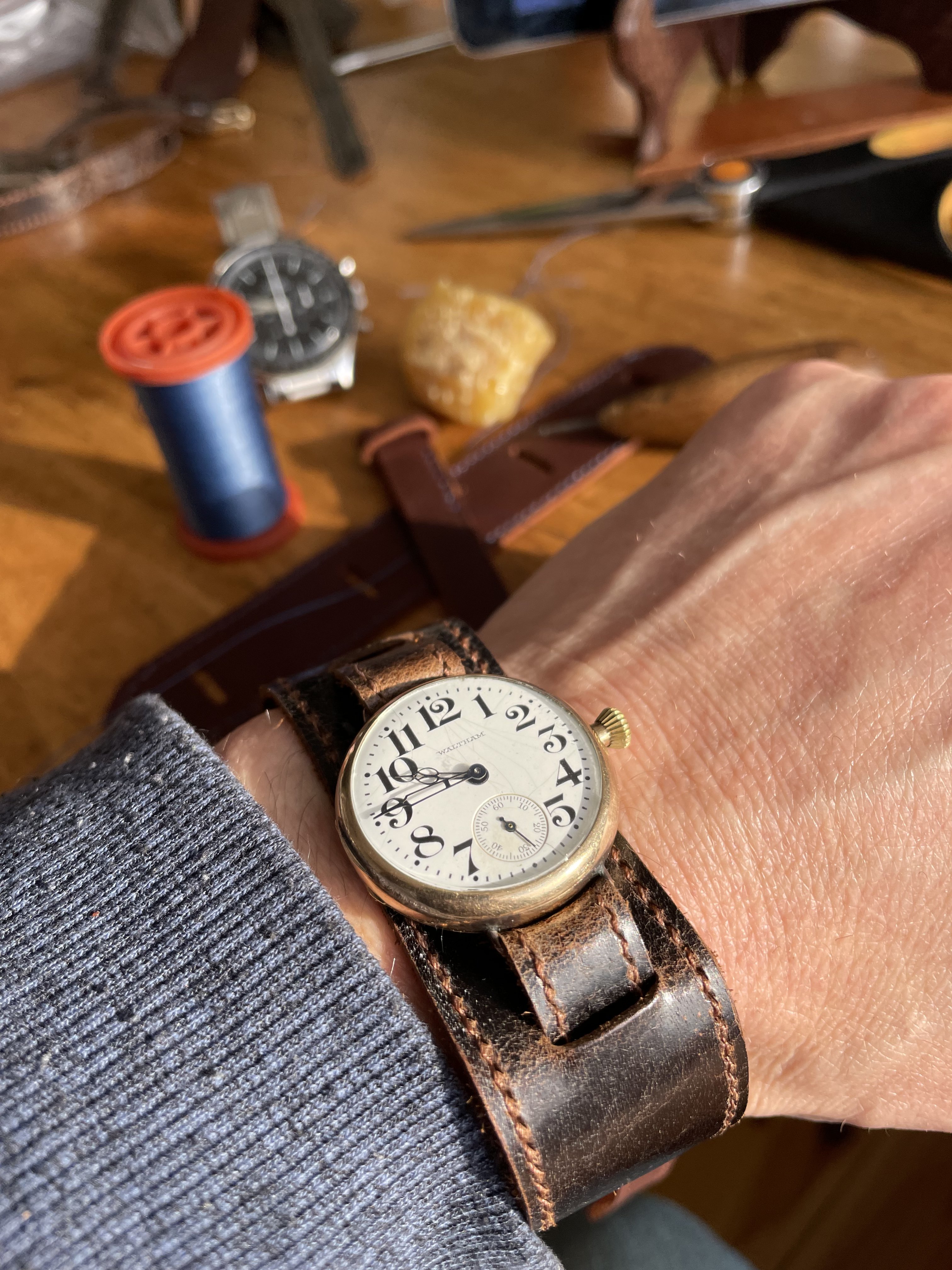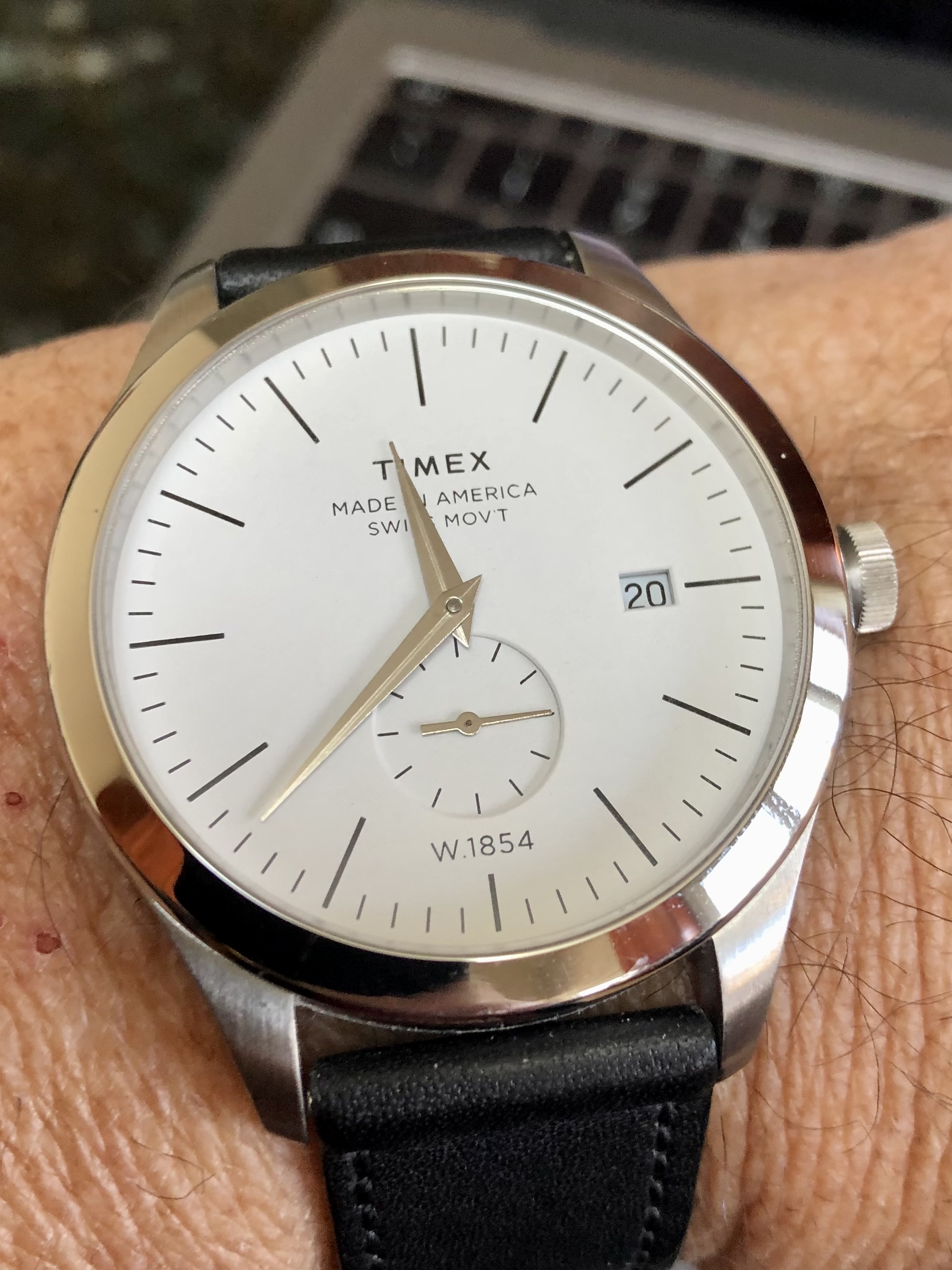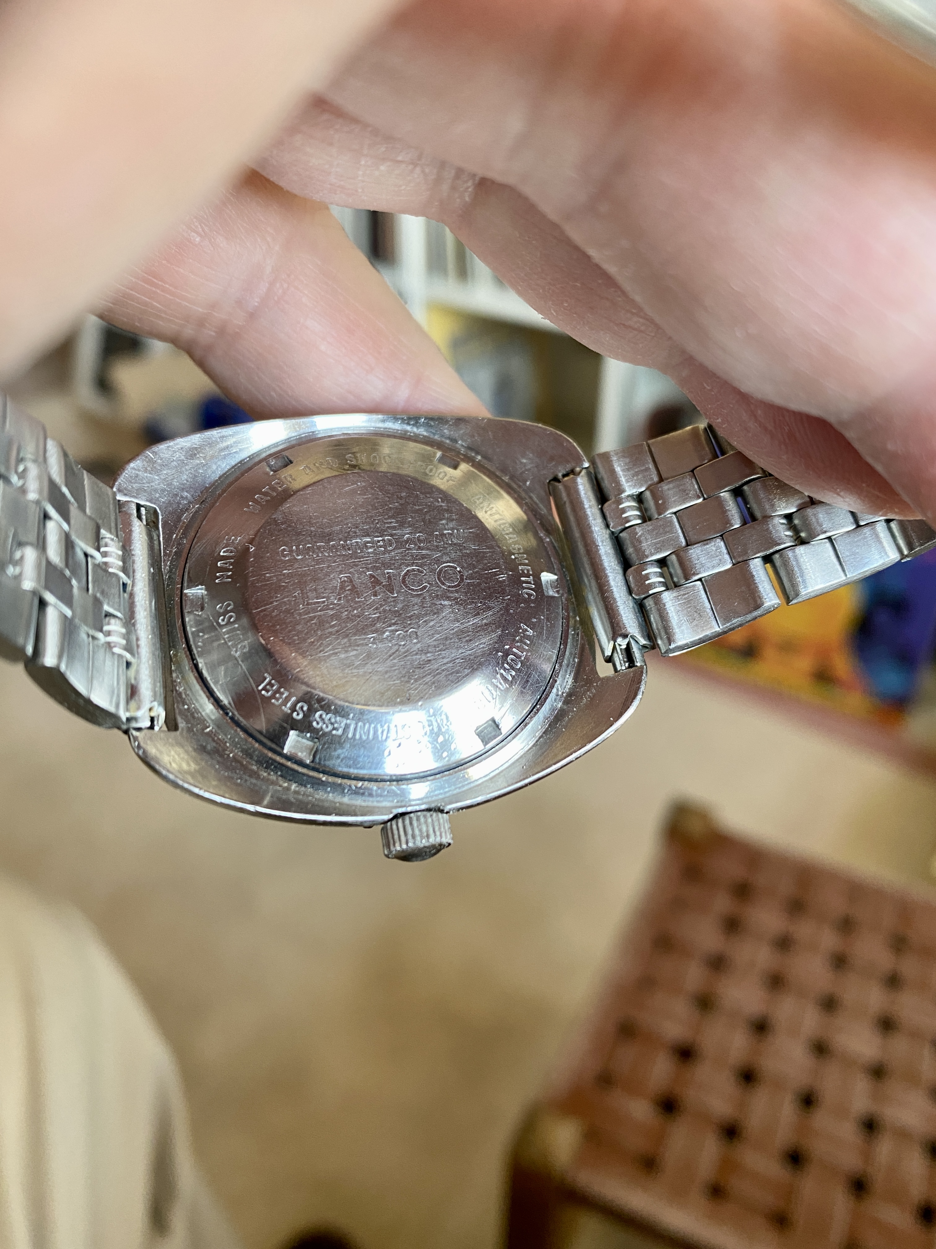 Today, my mildly modded 51-year old Rolex Air-King Date. One owner, me, won in a Rolex sales contest in 1971. Last year, it occurred to me that I had a genuine Rolex NOS 14-karat Oyster bezel in my stash. I don’t recall how I ended up with it, but the price on the envelope was $595.00! So I know I didn’t buy it! I checked the size, and it is a perfect fit for the Air-King, so here is the result. My 50th anniversary Rolex. Bracelet is after-market.