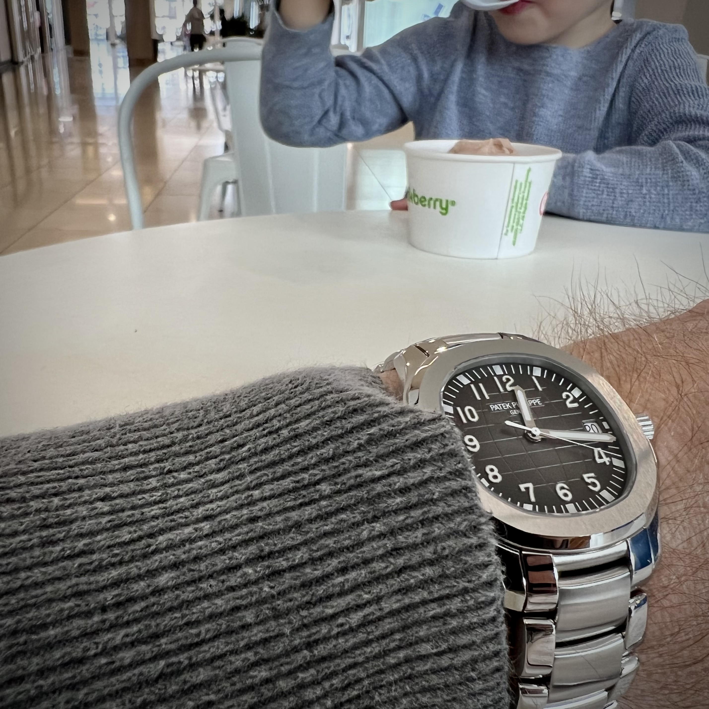 Enjoying Pinkberry with kiddo. He scrapes milligrams of frozen yogurt at a time and savors slowly. I inhale large mouthfuls and remember only suffering a series of cold-strokes. One of us is doing it right!
