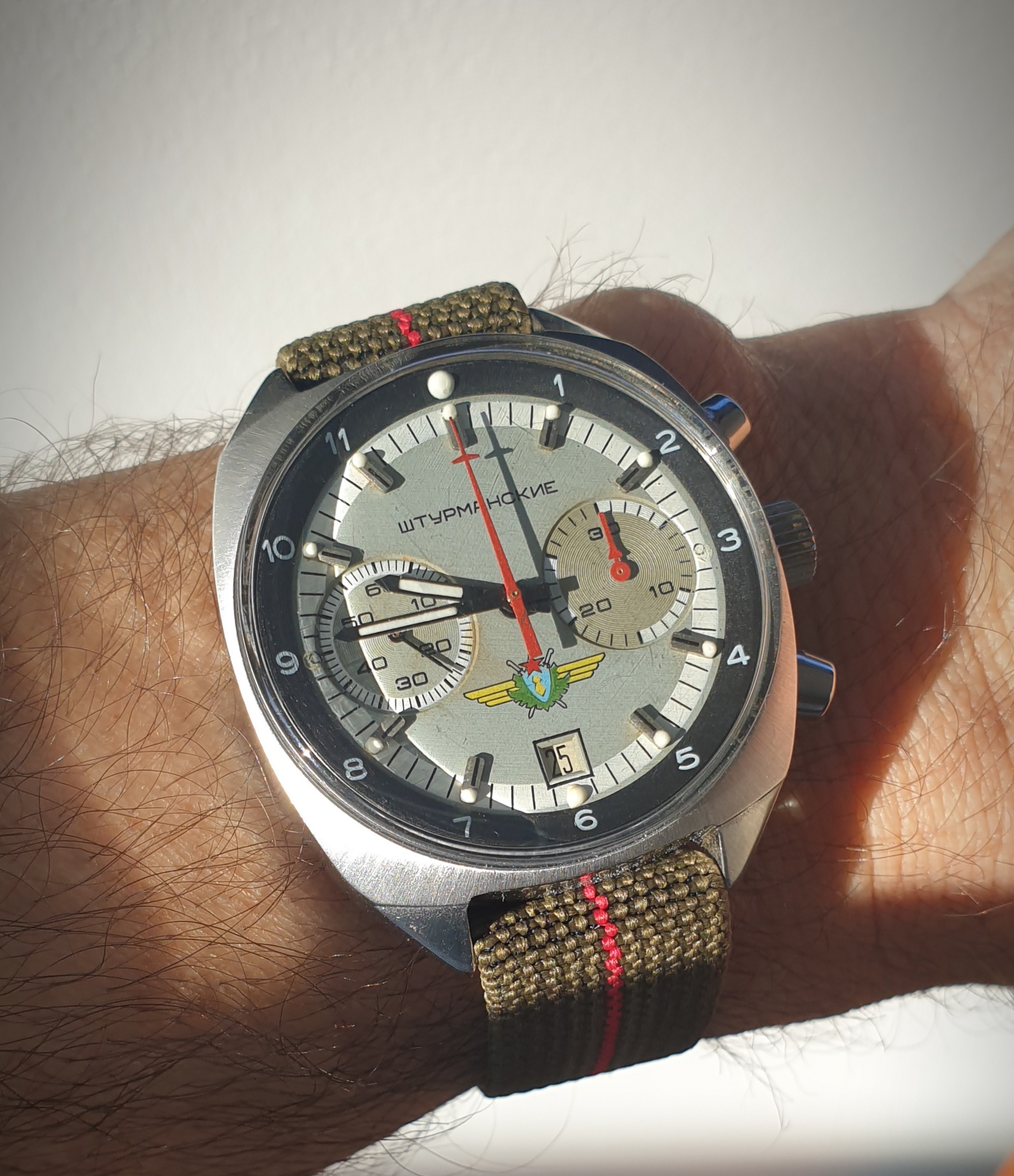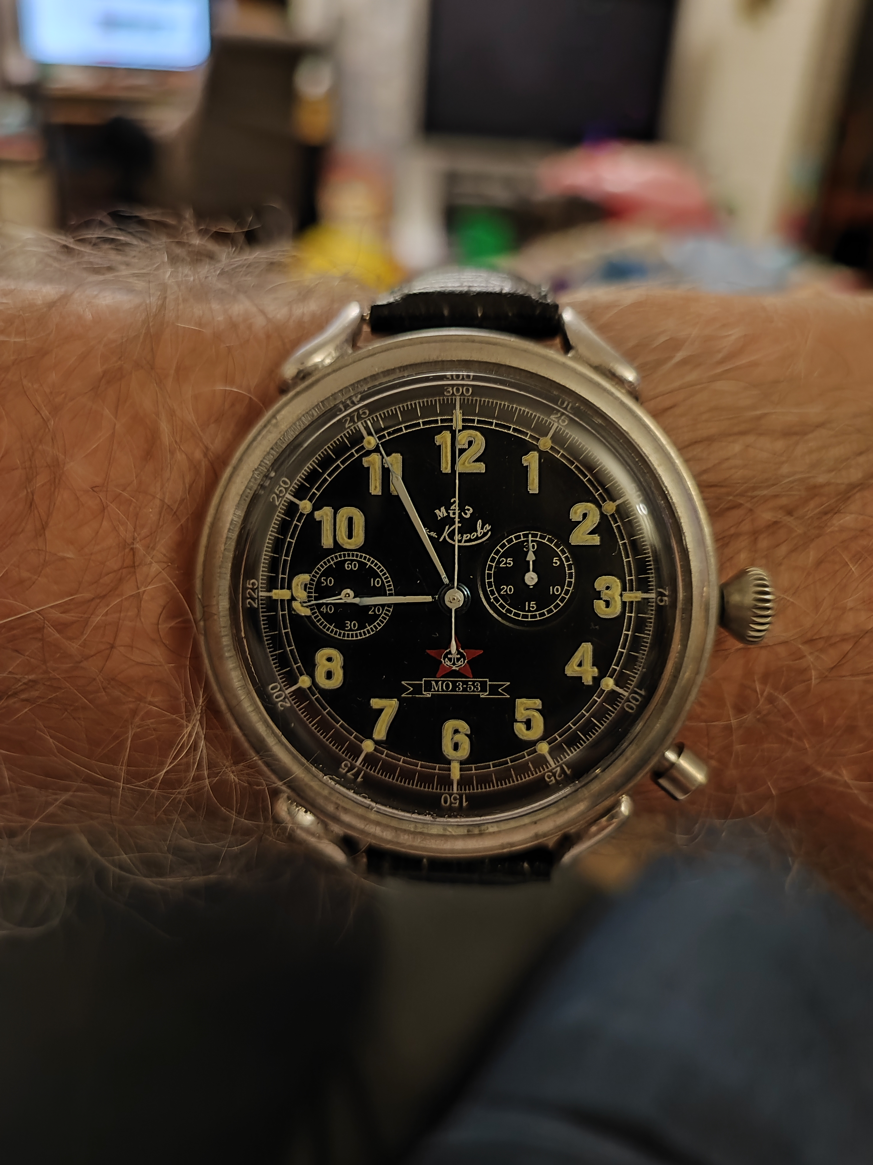 I have been wearing this 52 mm beast strapped on my arm most of the week, made from scrapped U Boat's and heavy metal and the sweat of the Soviet workers of old. It's 20 mm strap barely holds it so I am on the look out for something a bit beefier in the 22 mm range.