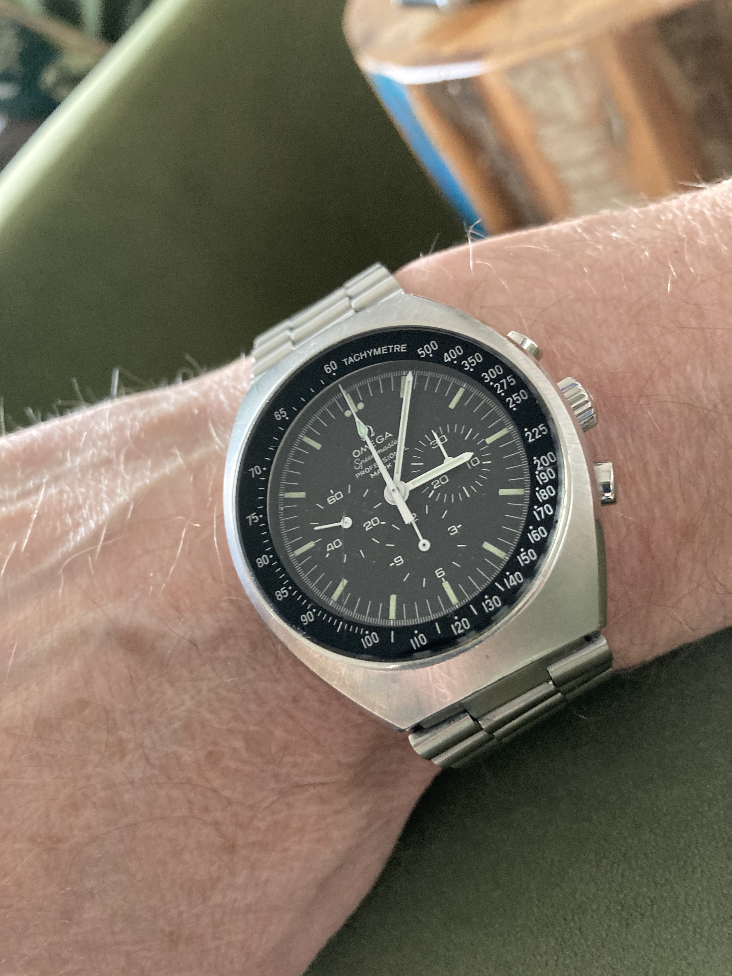 My only other tuning fork is a Speedsonic chrono, so this is my first 3 hander hummer, and first devil red trapezoid signed Omega...YaY!