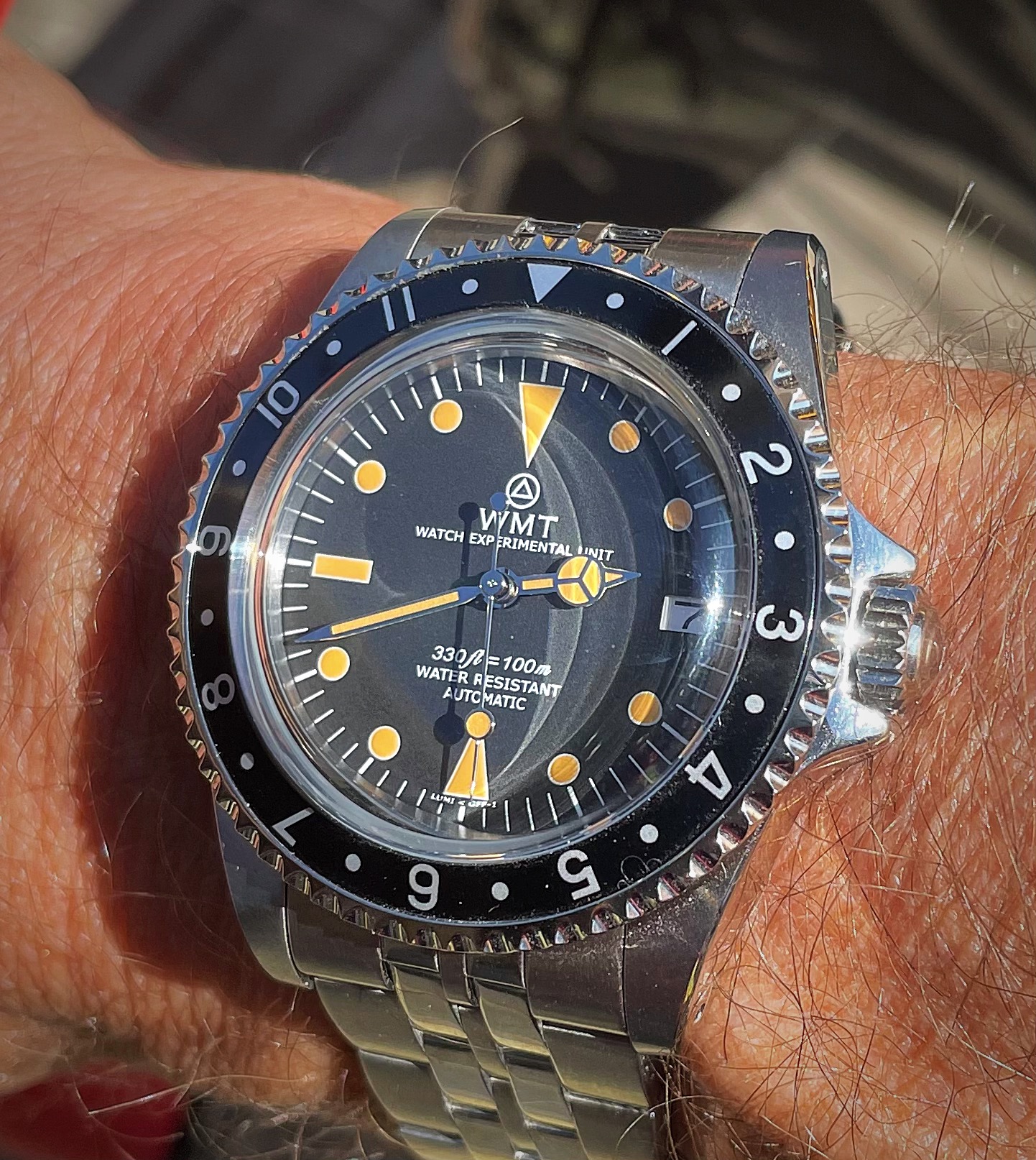 I switched to this watch, as it seemed appropriate today...a watch inspired by a pivotal geopolitical event. The Nomos Orion Berlin '89 commemorates the liberation of the former DDR from the tyranny of the Soviet Empire, the reunification of Germany, and the revival of the Glashutte watchmaking industry.