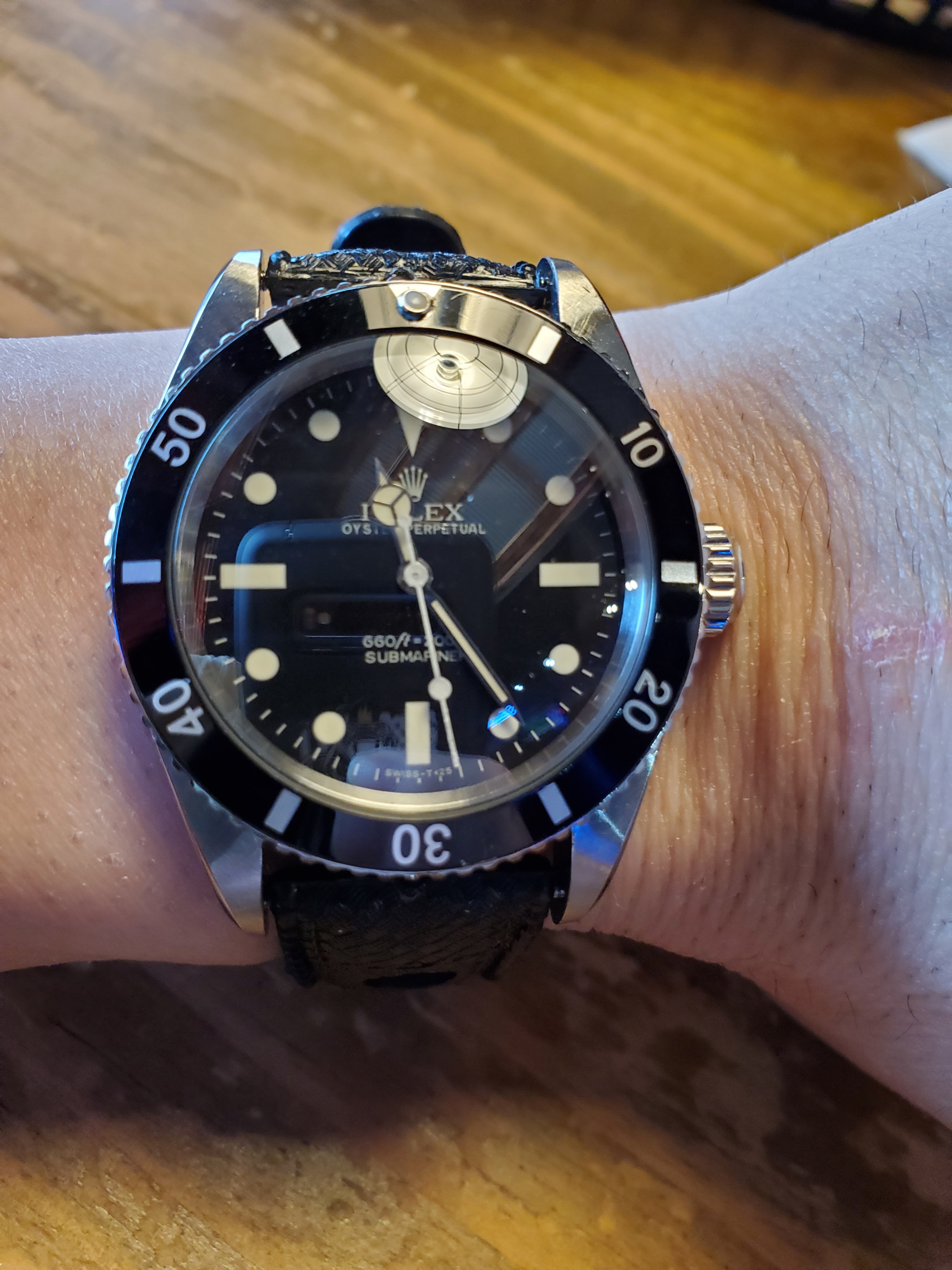 I put it on a vintage 16mm Mil issued nylon strap which is a perfect fit of course.