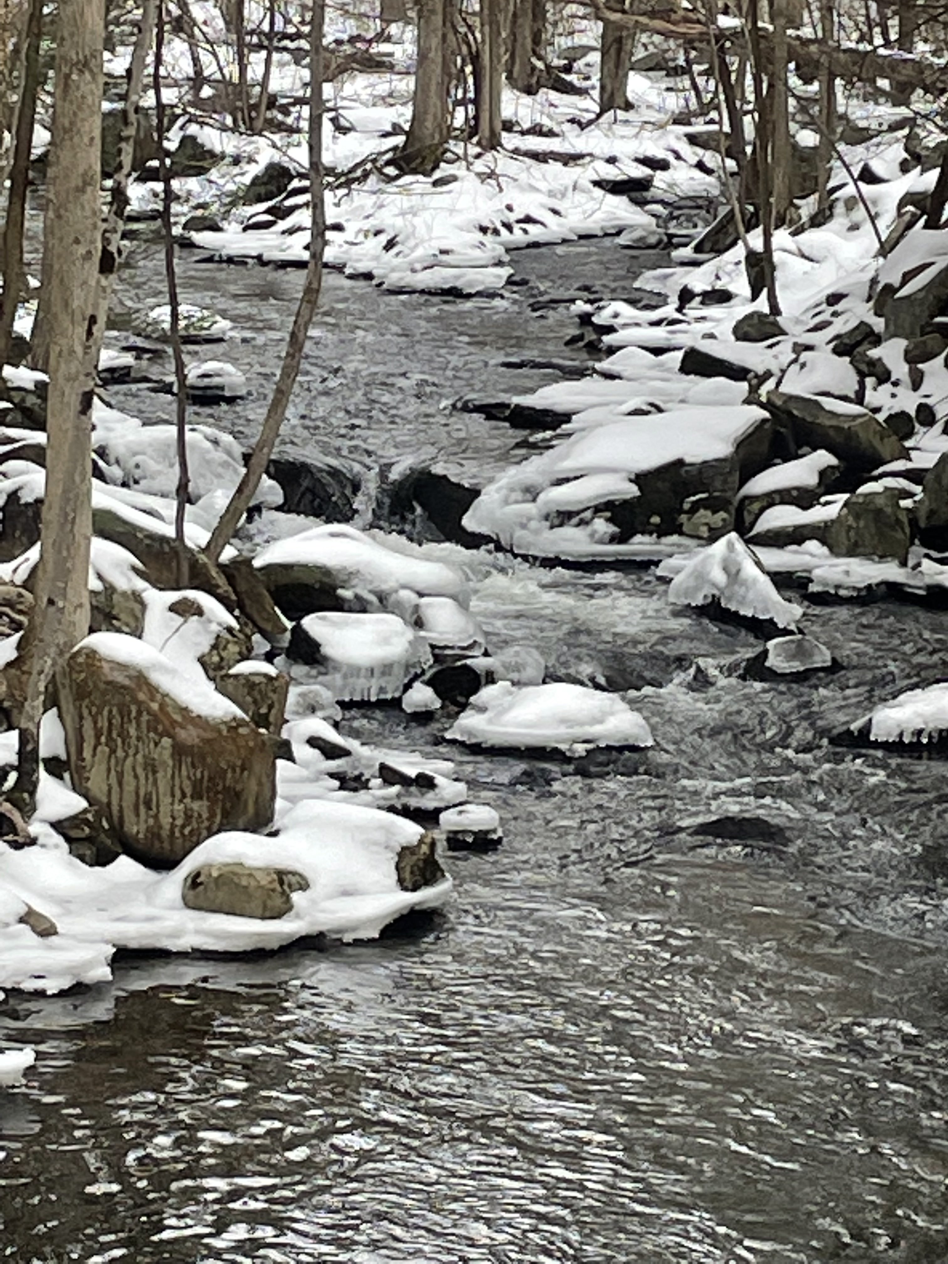 I must be losing my mind cause I could have sworn I was here Monday and the area had only few spots of ice and snow and it made me happy thinking maybe spring is on it’s way. Today it’s back to an ice walk it must have been last Monday I was here but I hate when things like this happen as I’m worried enough about my memory. Anyway snow sure can be pretty sometimes but the walk was treacherous