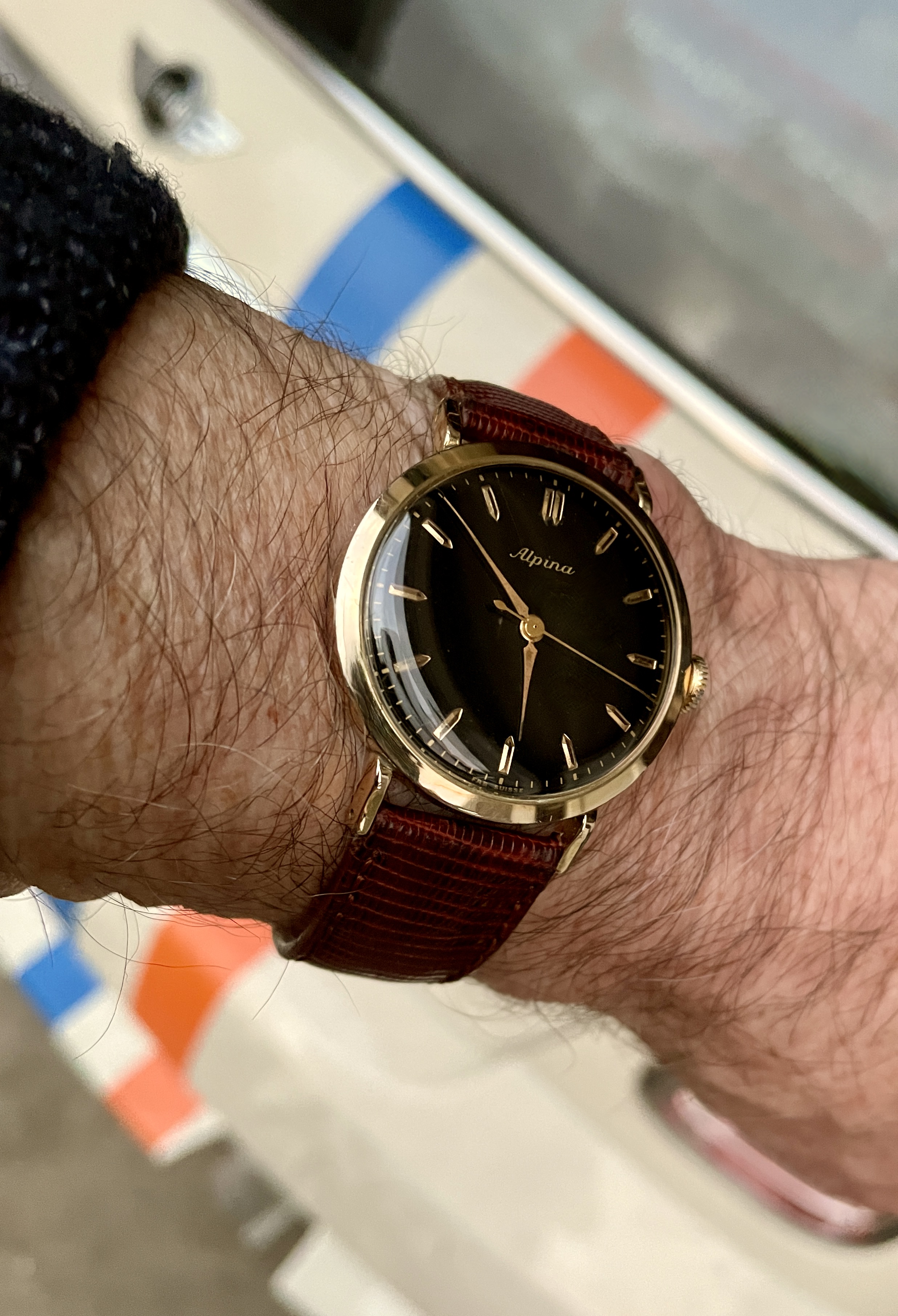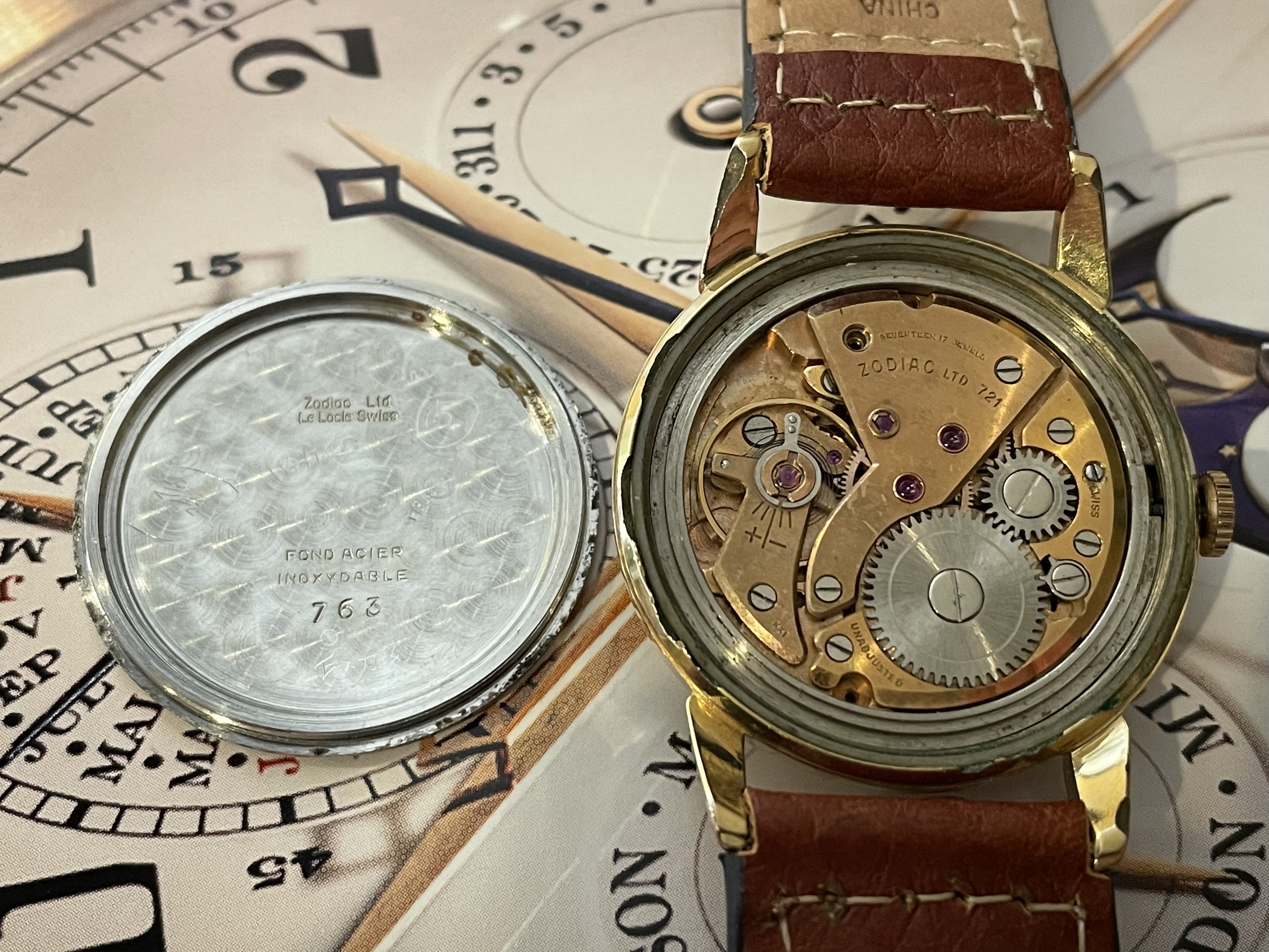 ·Wearing this Zodiac “Glorious” today…bought it a few years ago “not working” from flea market junk box for $5. Someone had installed an incorrect crown having a long tube so when fully wound it actually pulled the stem out to the “set” position making the watch appear to be broken. I put a different crown on it and it was off and running. Doesn’t get the wrist time it deserves.