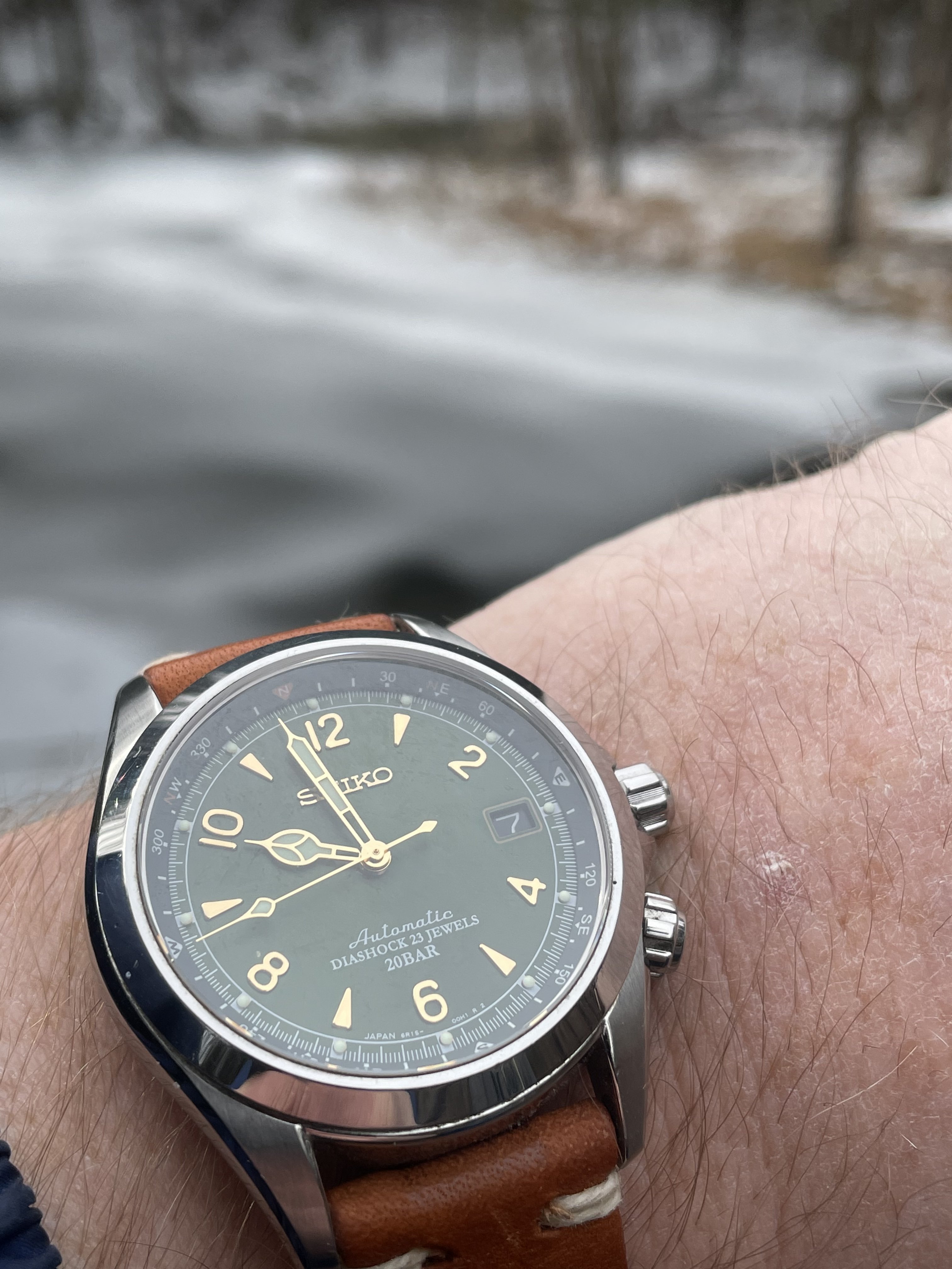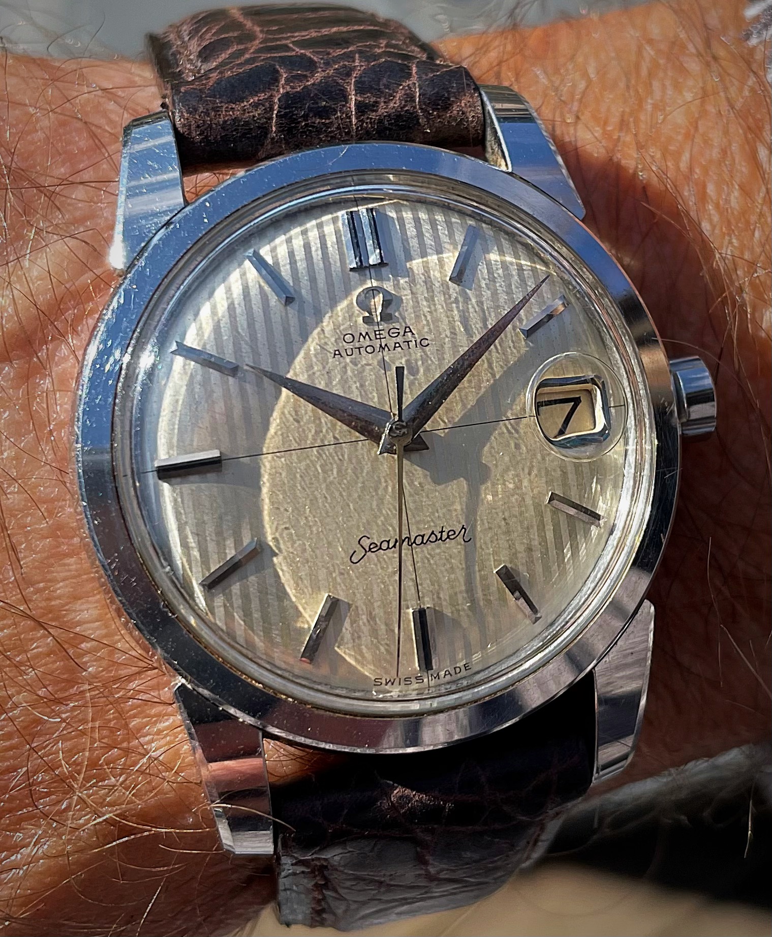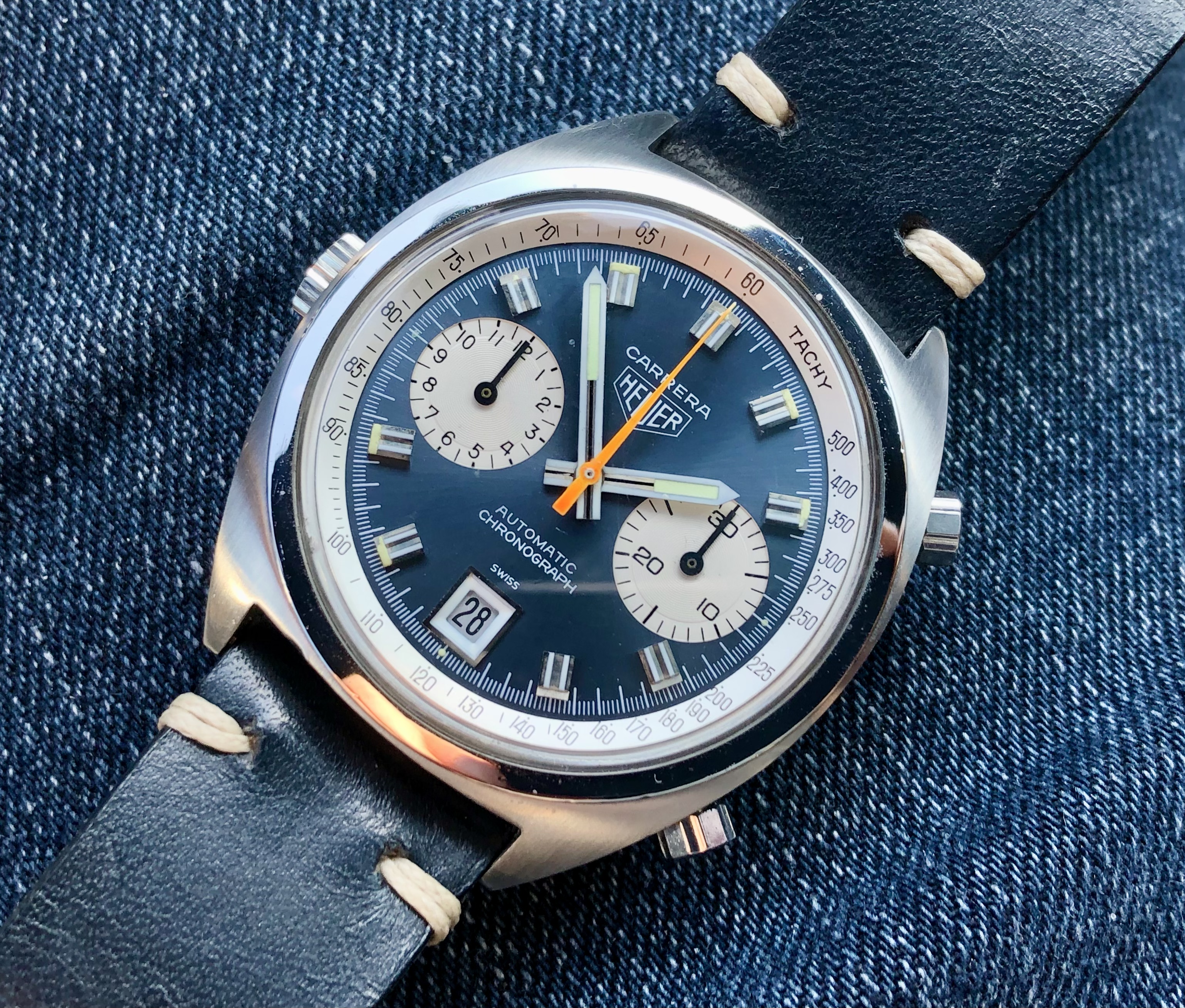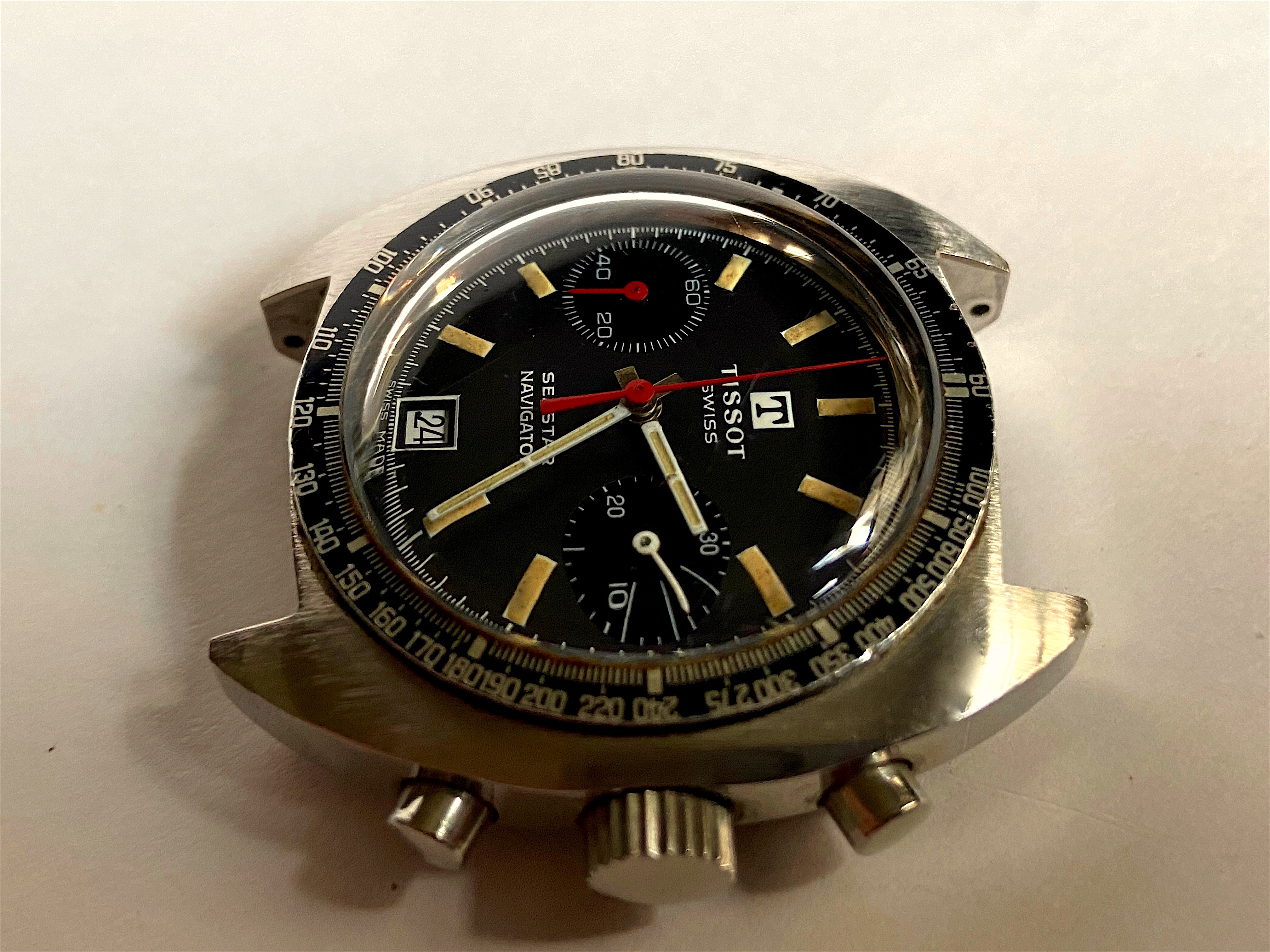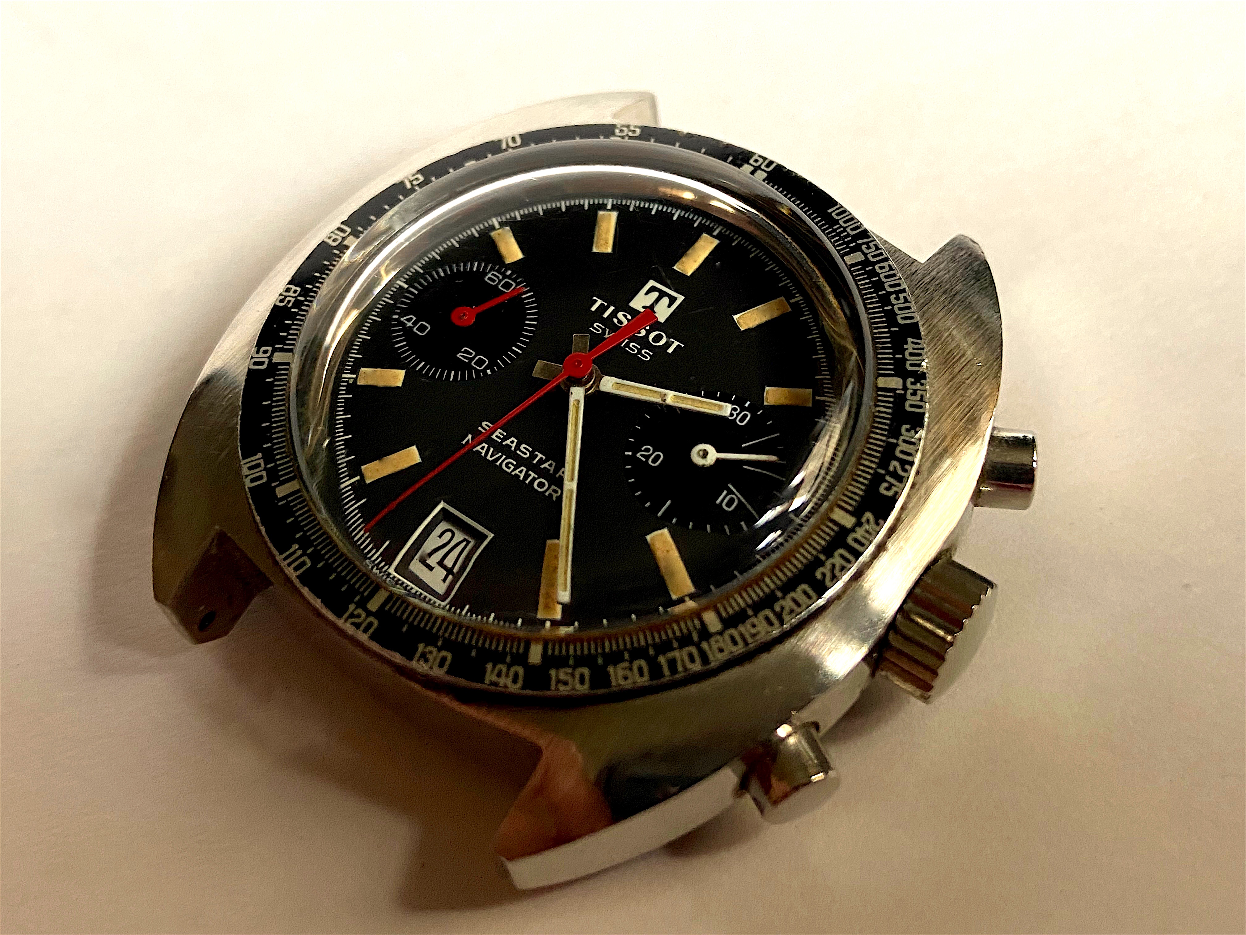 Co-developed by the famous Jacques Cousteau, the Self Contained Underwater Breathing Apparatus (SCUBA) tank changed the face of diving for professionals and enthusiasts alike. Dubbed the “AquaLung”, a diver could stay under longer, go deeper and all with more freedom to carry out important tasks, or explore for enjoyment. Dive watches like this were originally sold under the Spirotechnique and Dato-Matic names and ultimately branded as AquaLung for the European market. The U.S Divers Co. co-branded them with U.S. Divers added to the bottom of the dial (for export to North America) throughout the 1960’s and 1970’s. This example is AuqaLung Ref. 1573-666 from the early 1960’s and uses an A. Schild case and is powered by a A. Schild signed Felsa Calibre 4004 movement. The 666 in the reference indicated a depth rating of 666 feet.