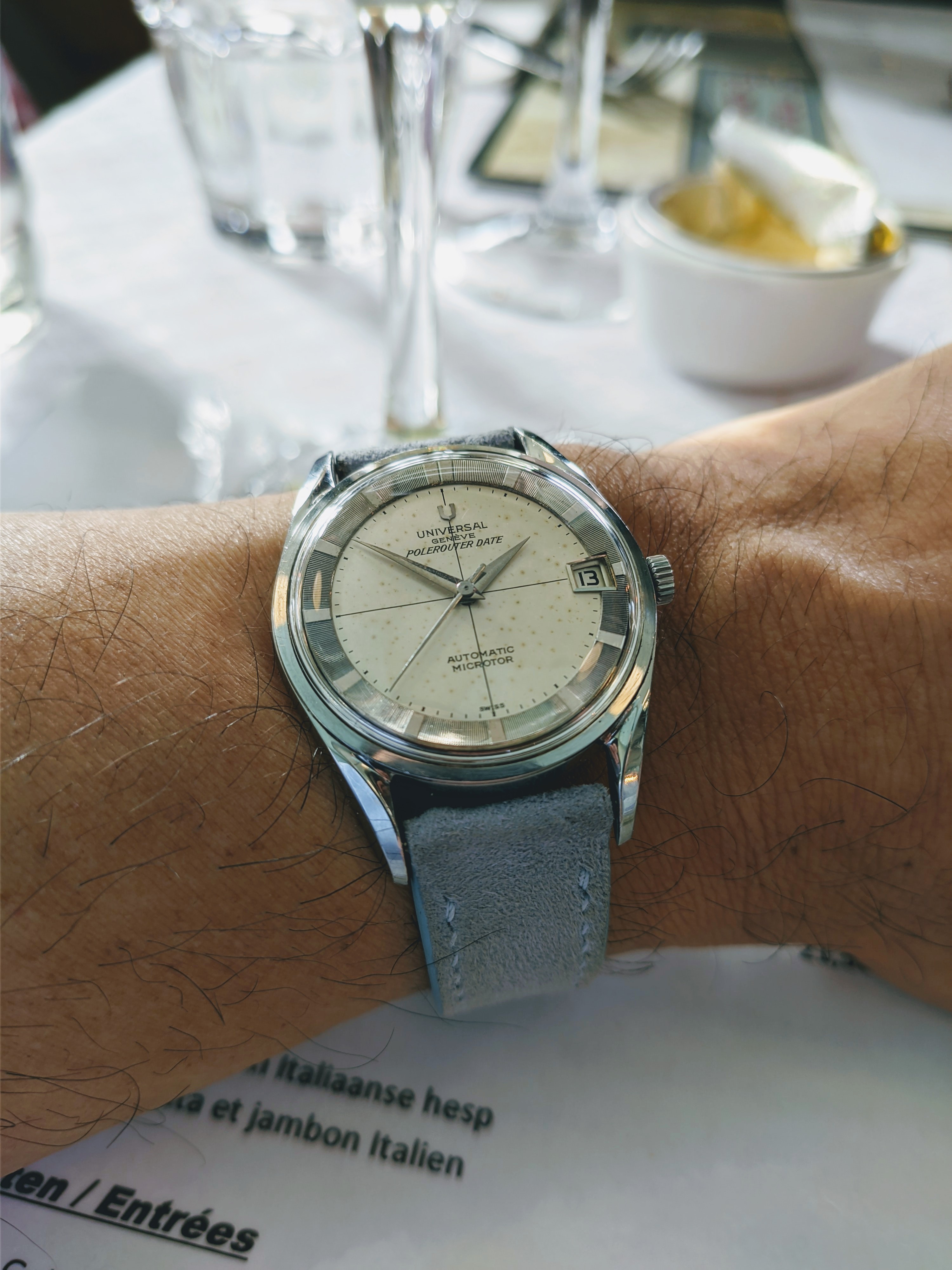 路路Sunburst dial fanBeater 166.003. Starting to think this one needs its crystal polished; I'm starting to spend more time looking at the back than the front.