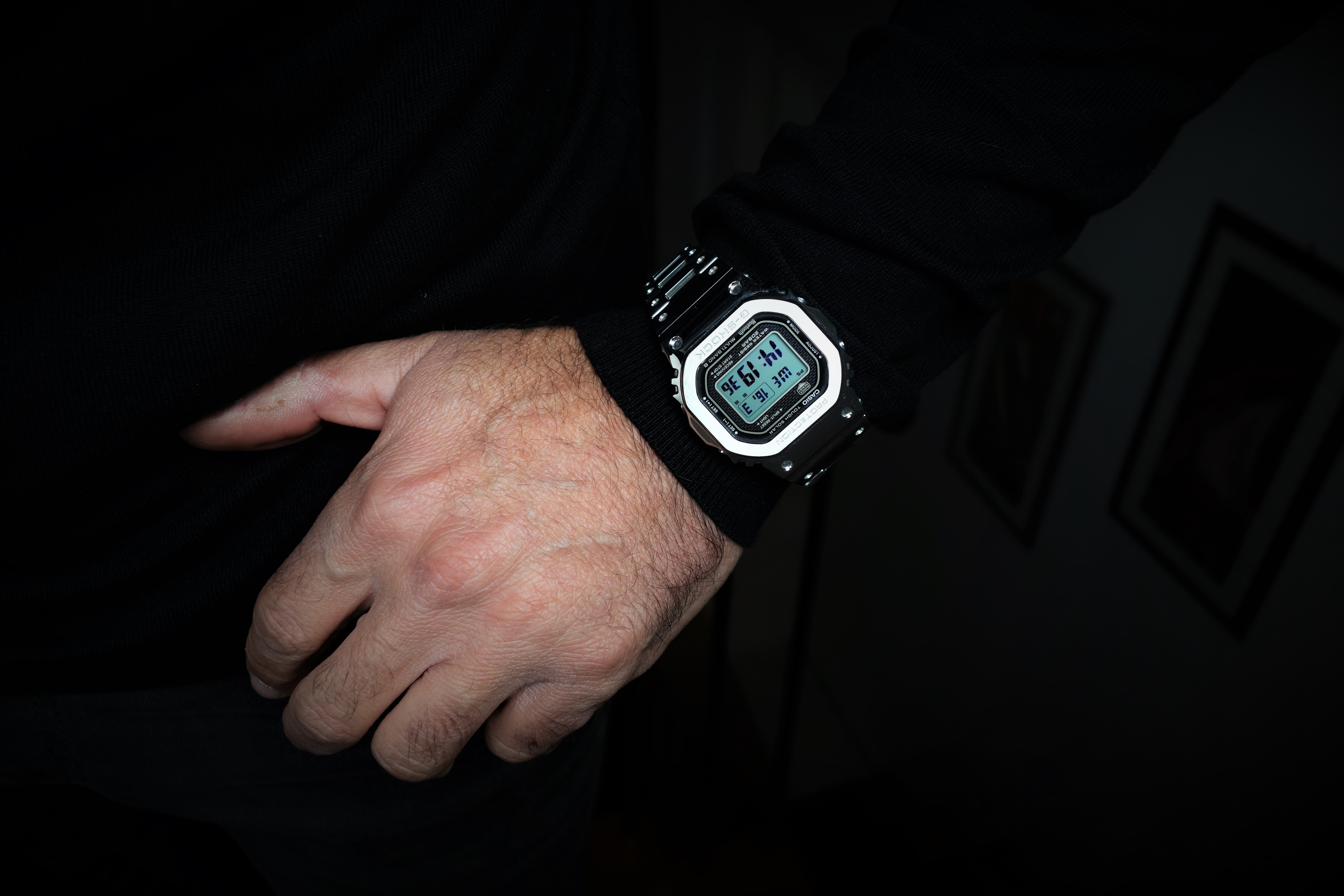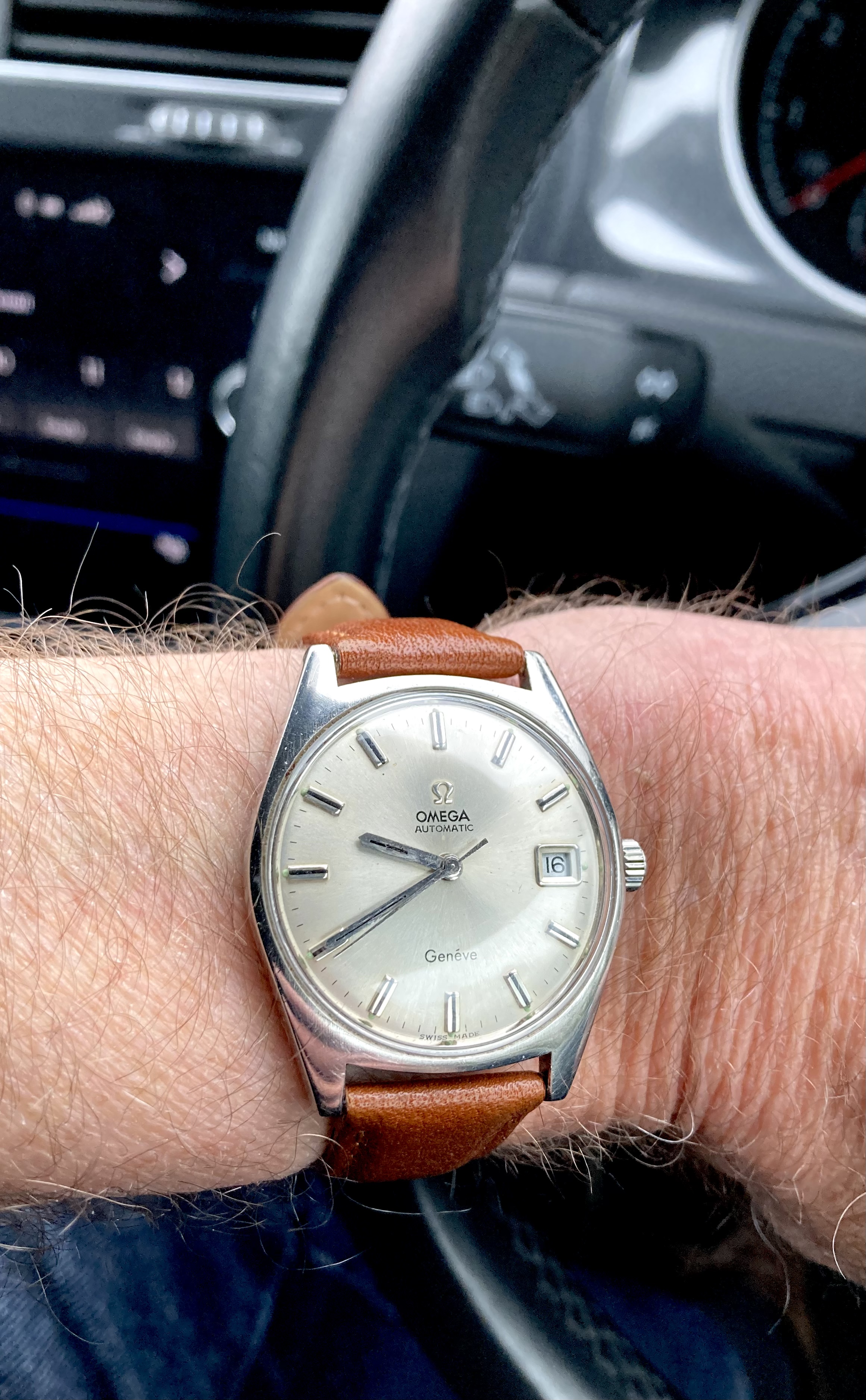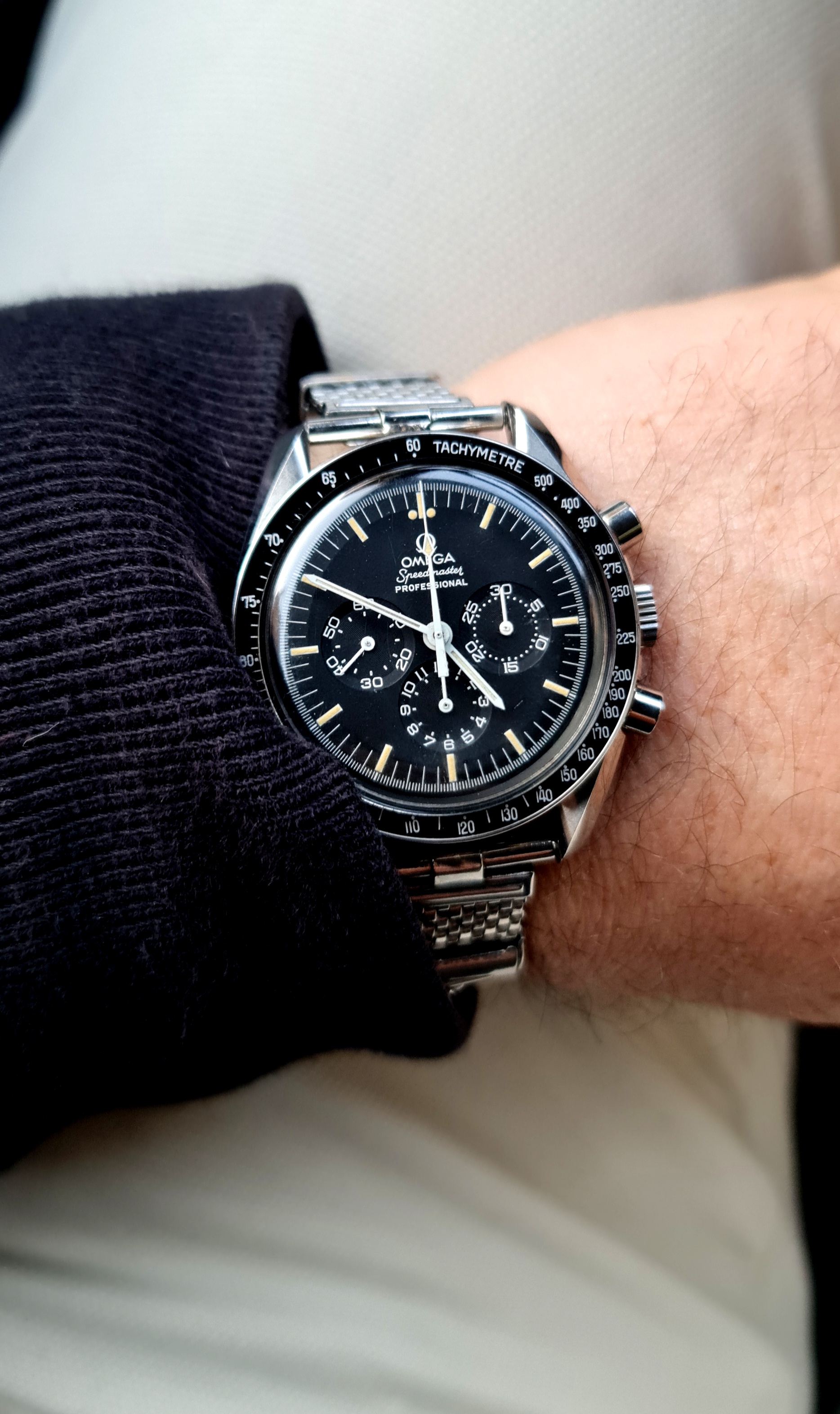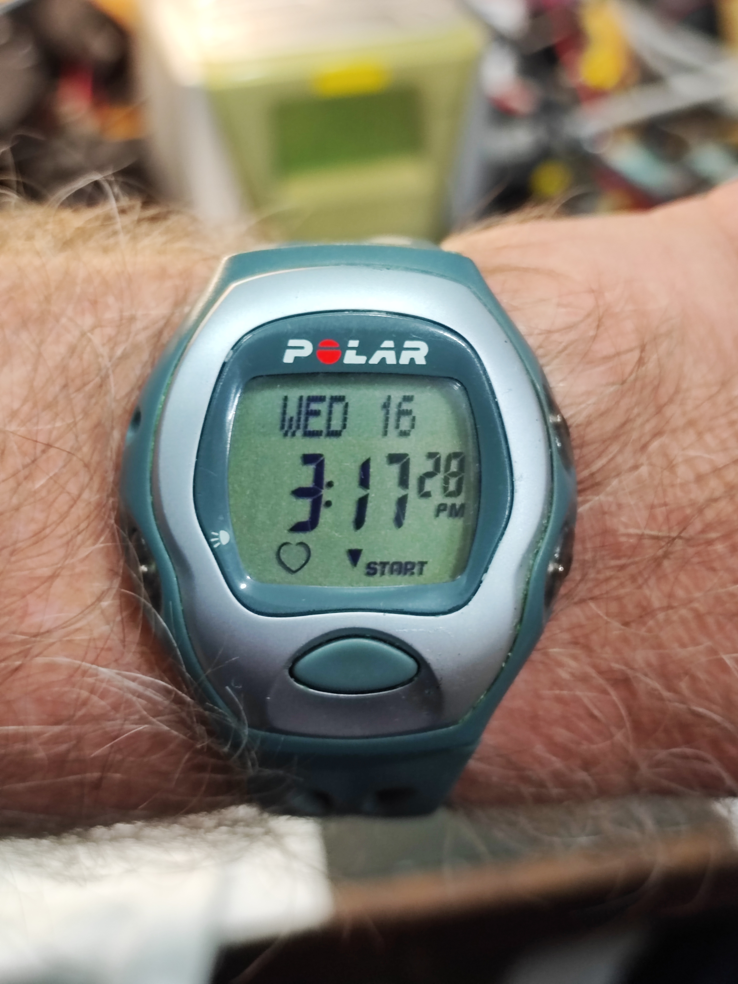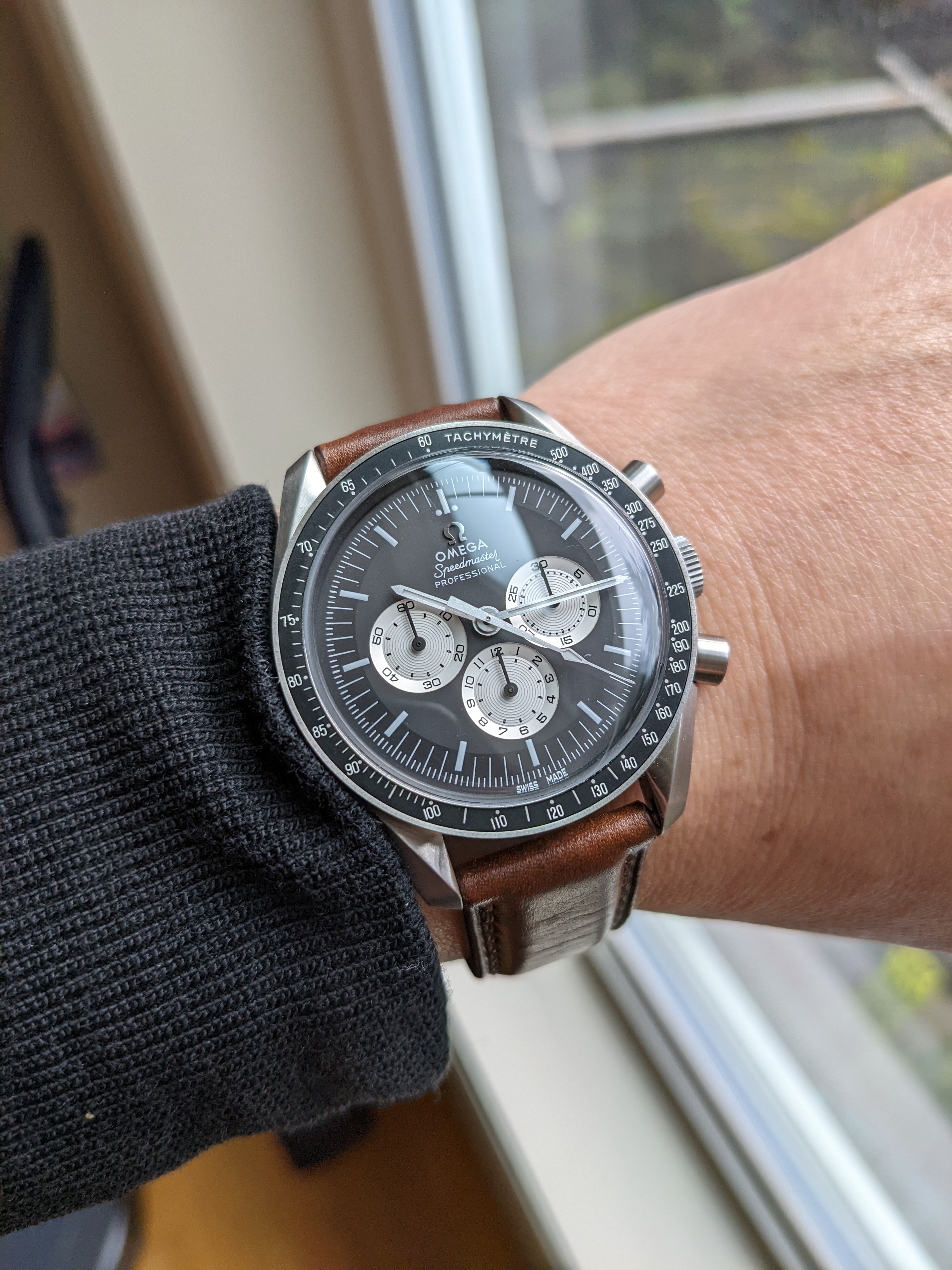 Chunky hour markers with fine lines (repeated on the hands), an applied star, and a faceted crystal (hinted at by the reflections). A lot of detail for a cheap'n'cheerful!