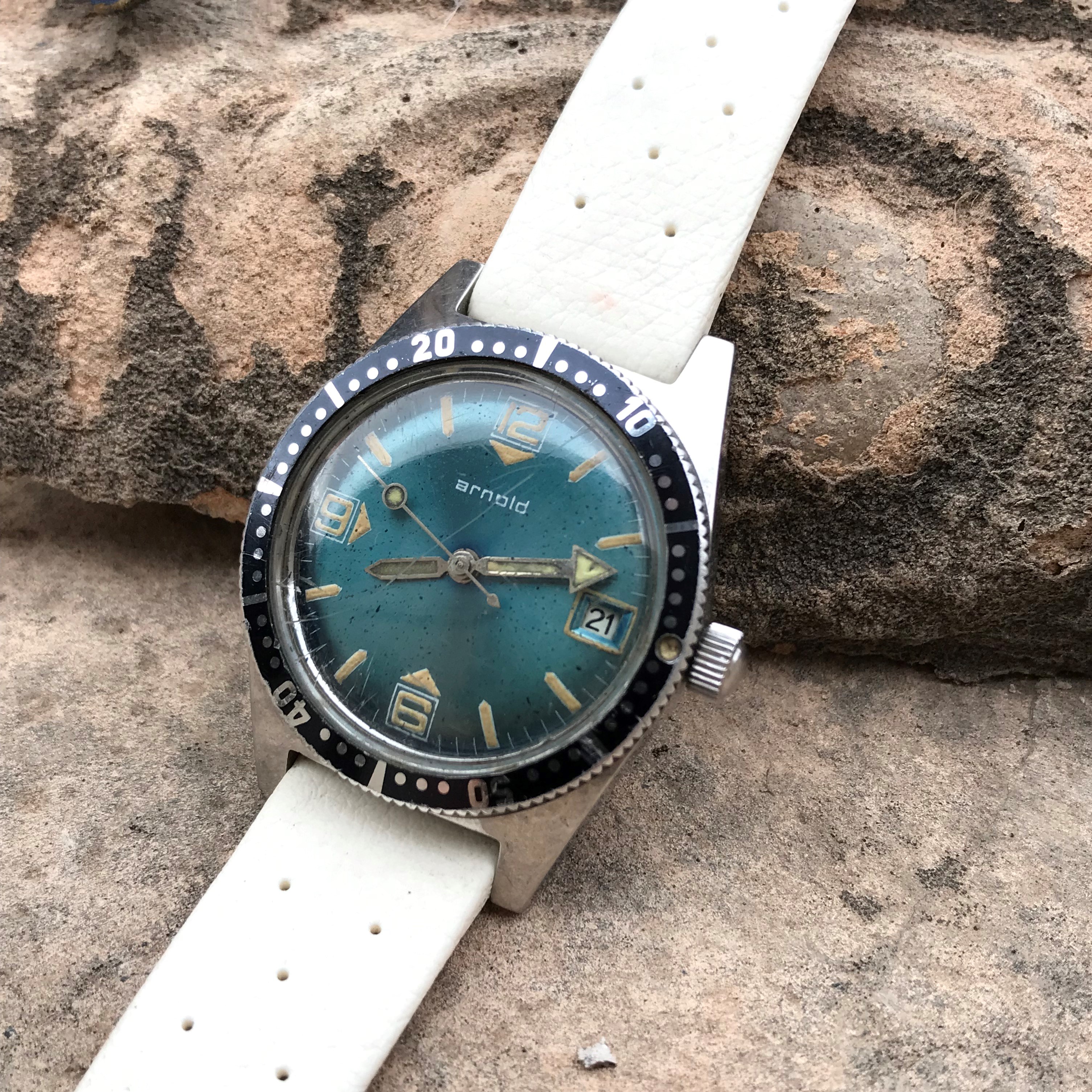 Posts 964 Likes 11,315 timesofplenty ·Mar 21, 2022 this old arnold skindiver showed up over the weekend, on the wrist with a white tropic this fine brisk nm monday