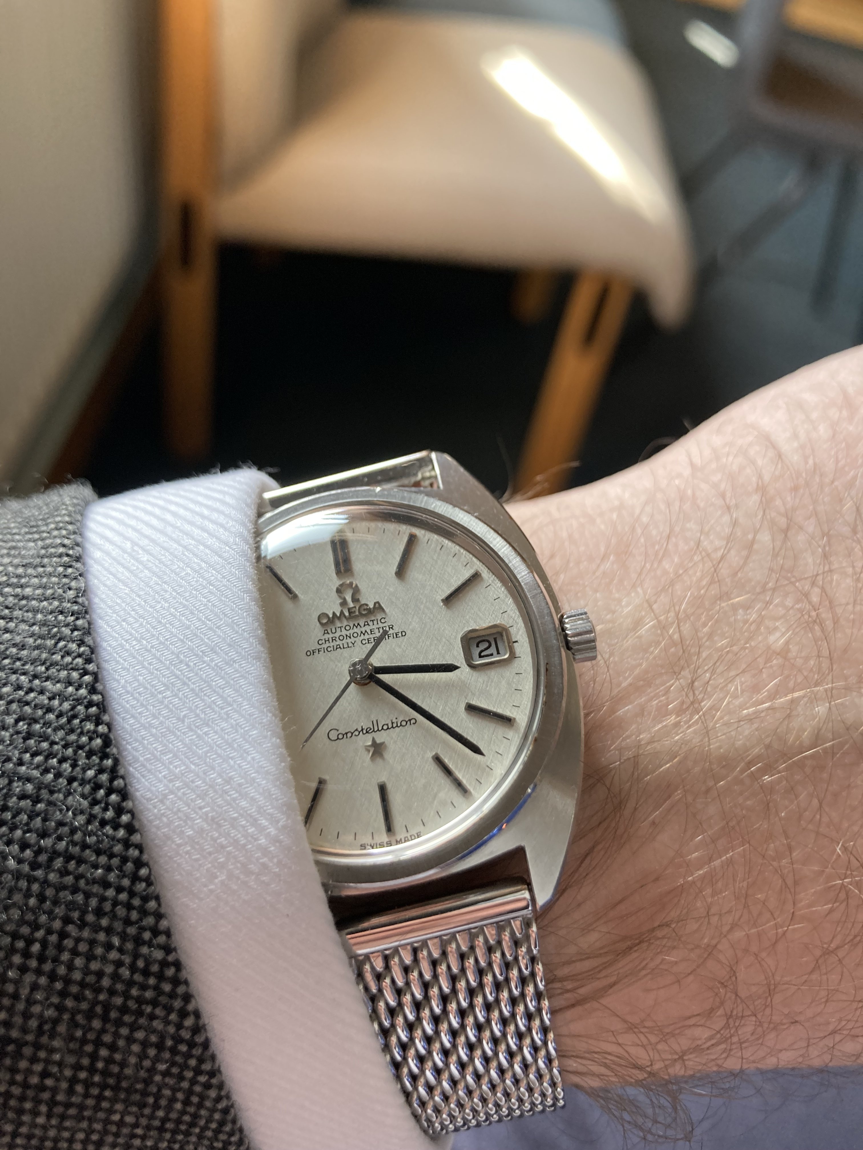 Latest acquisition, just back from my watchmaker today after a service, had the winding post sub plate replaced and one winding gear as part of its service, perfect cosmetic condition. ( A few raindrops in the photo) no marks or damage original Omega lens was totally unblemished.