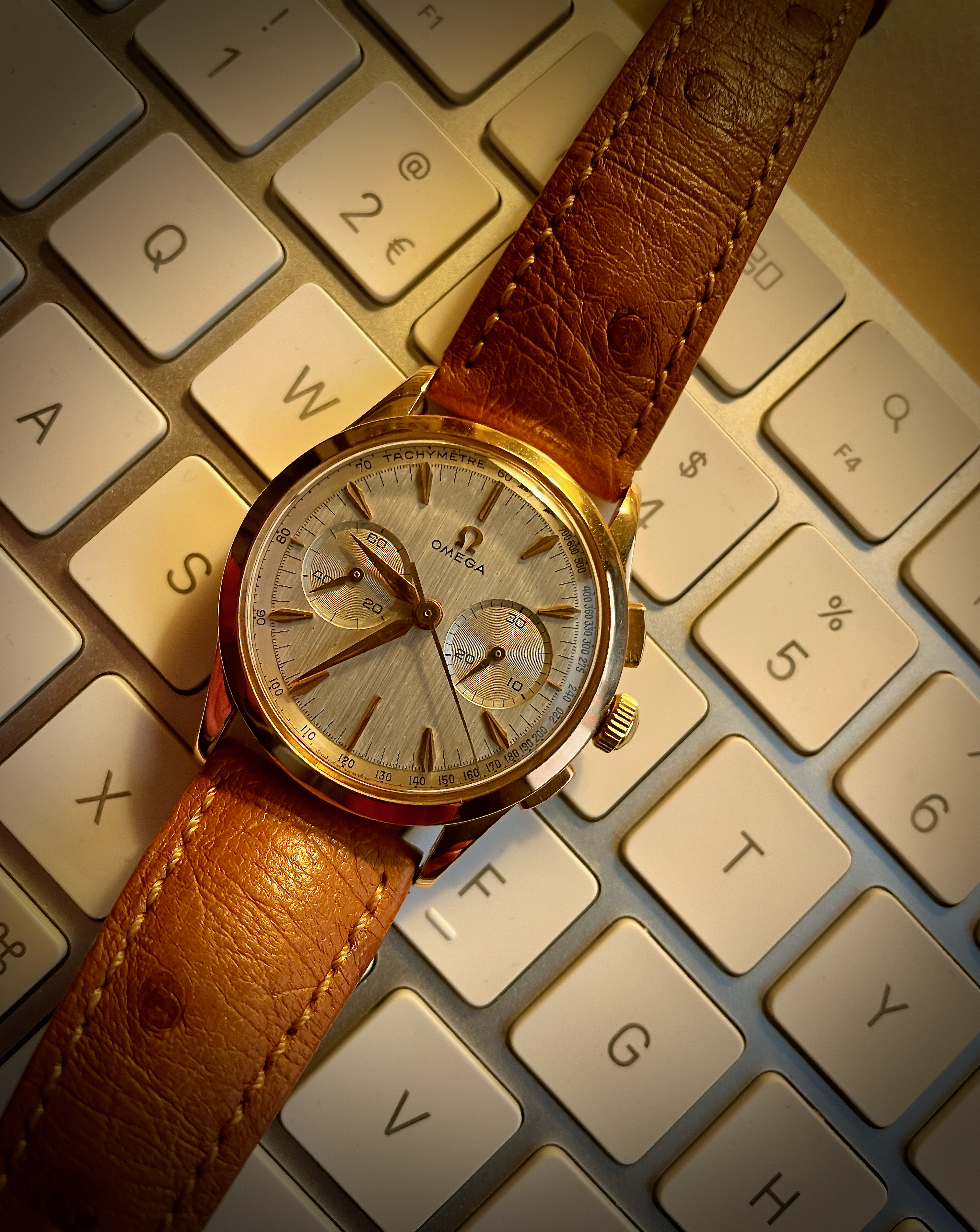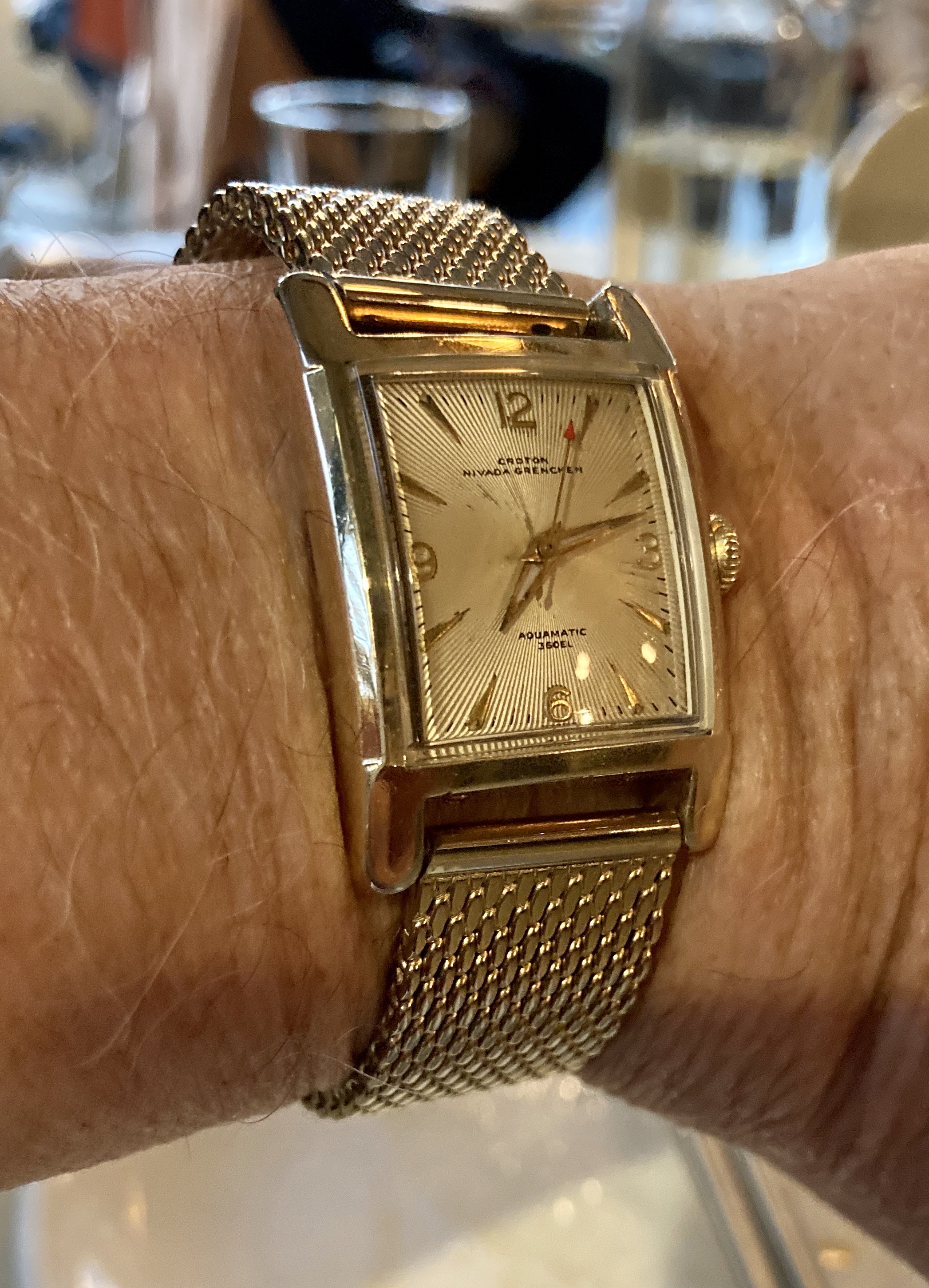 I had an offer on this one yesterday. I acquired this rose gold filled Omega jumbo, manual wind, and an Omega Cosmic 2000 on a barter deal, about 20 years ago. This one is circa 1954. They came from a friend who wanted to give them to me. I told him that I would only consider them to be mine if he’d name his price. He was adamant! He wouldn’t accept payment for them. But he told me that his grand daughter had a gold chain that needed repair. If I would fix it for him, we had a deal. I took the chain to a goldsmith friend who charged me $5.00 to gold solder it. I ended up with the watches. I told this story to a friend yesterday, and he offered me double the money for this one! I turned him down!