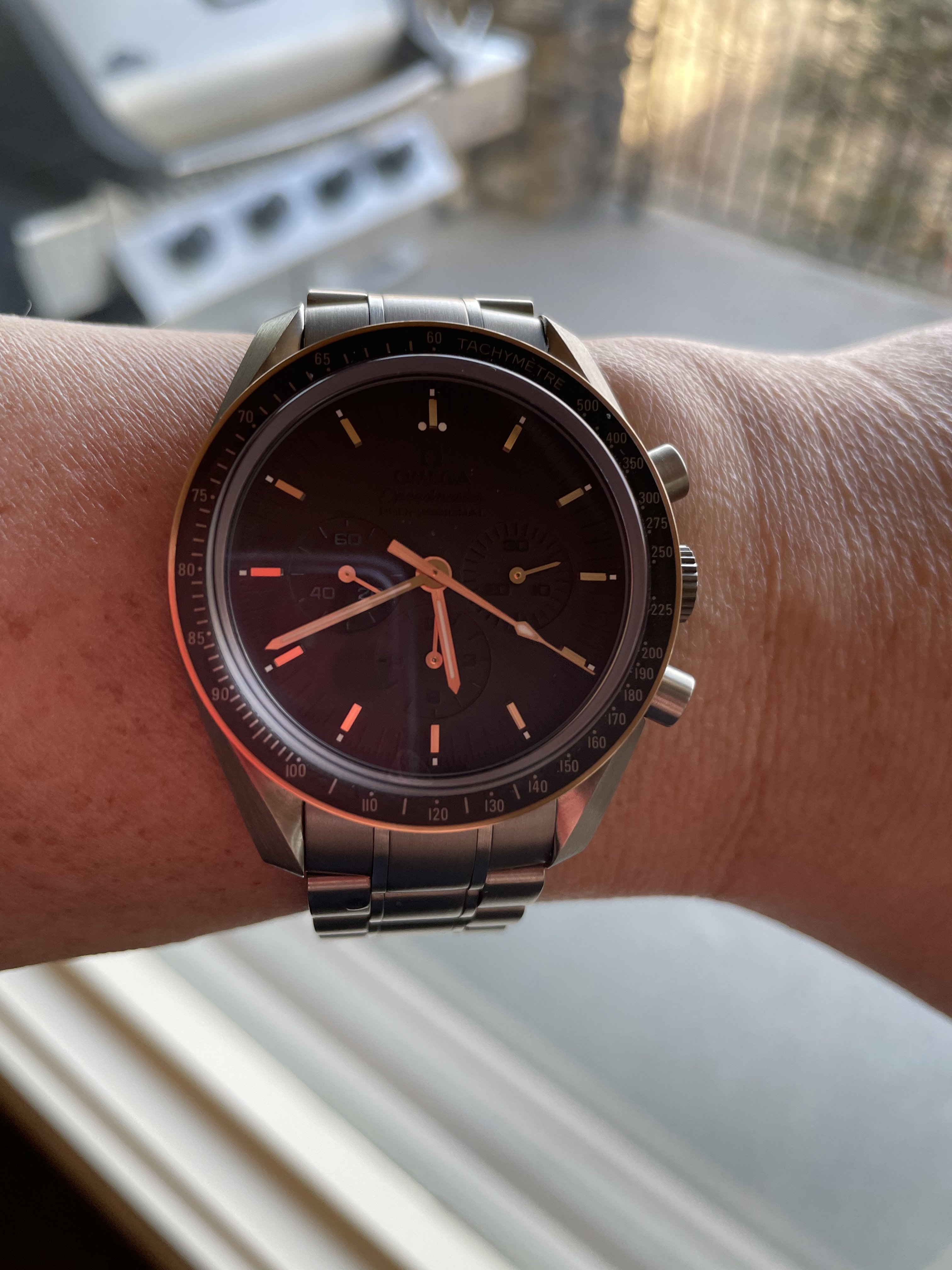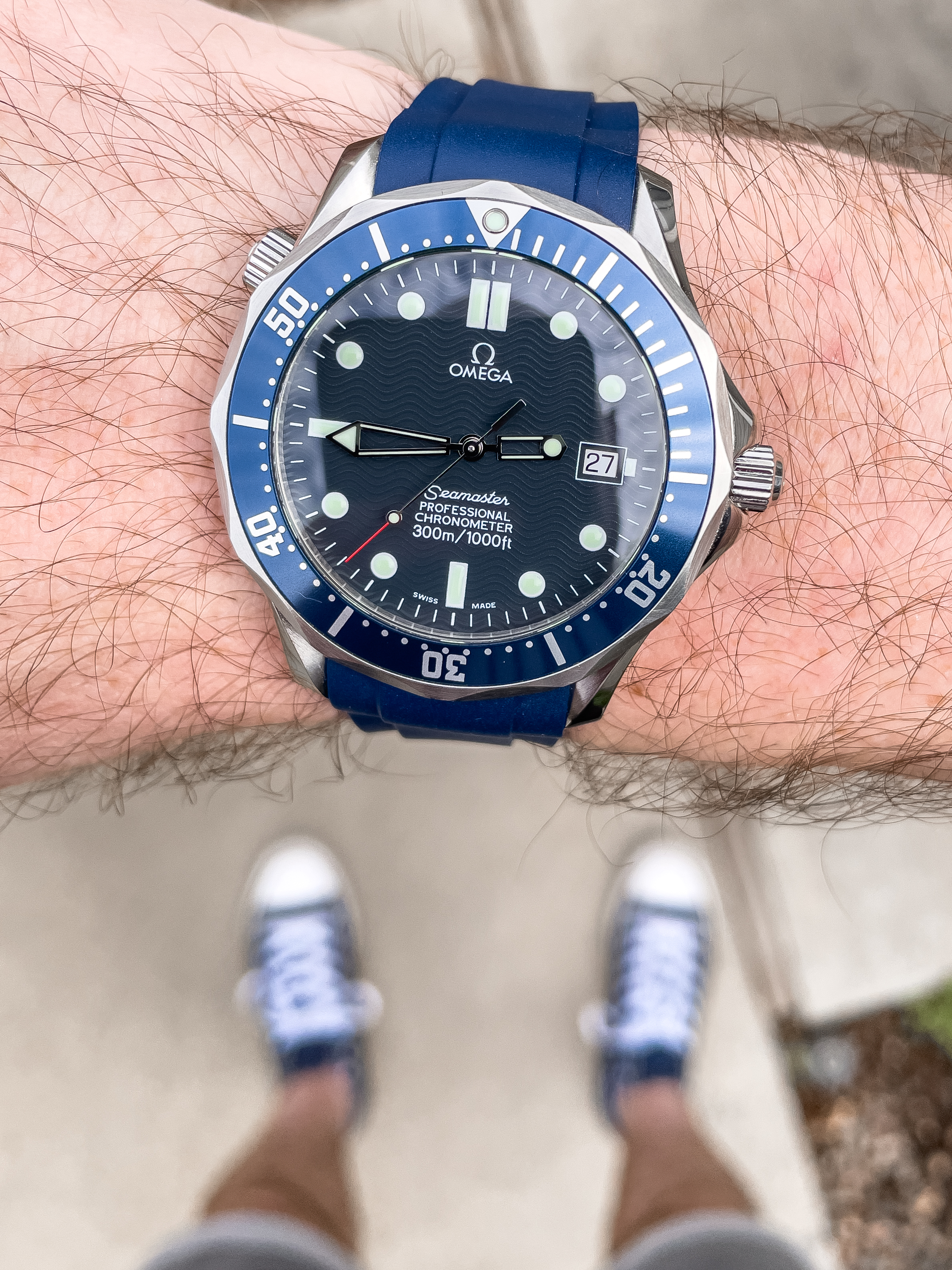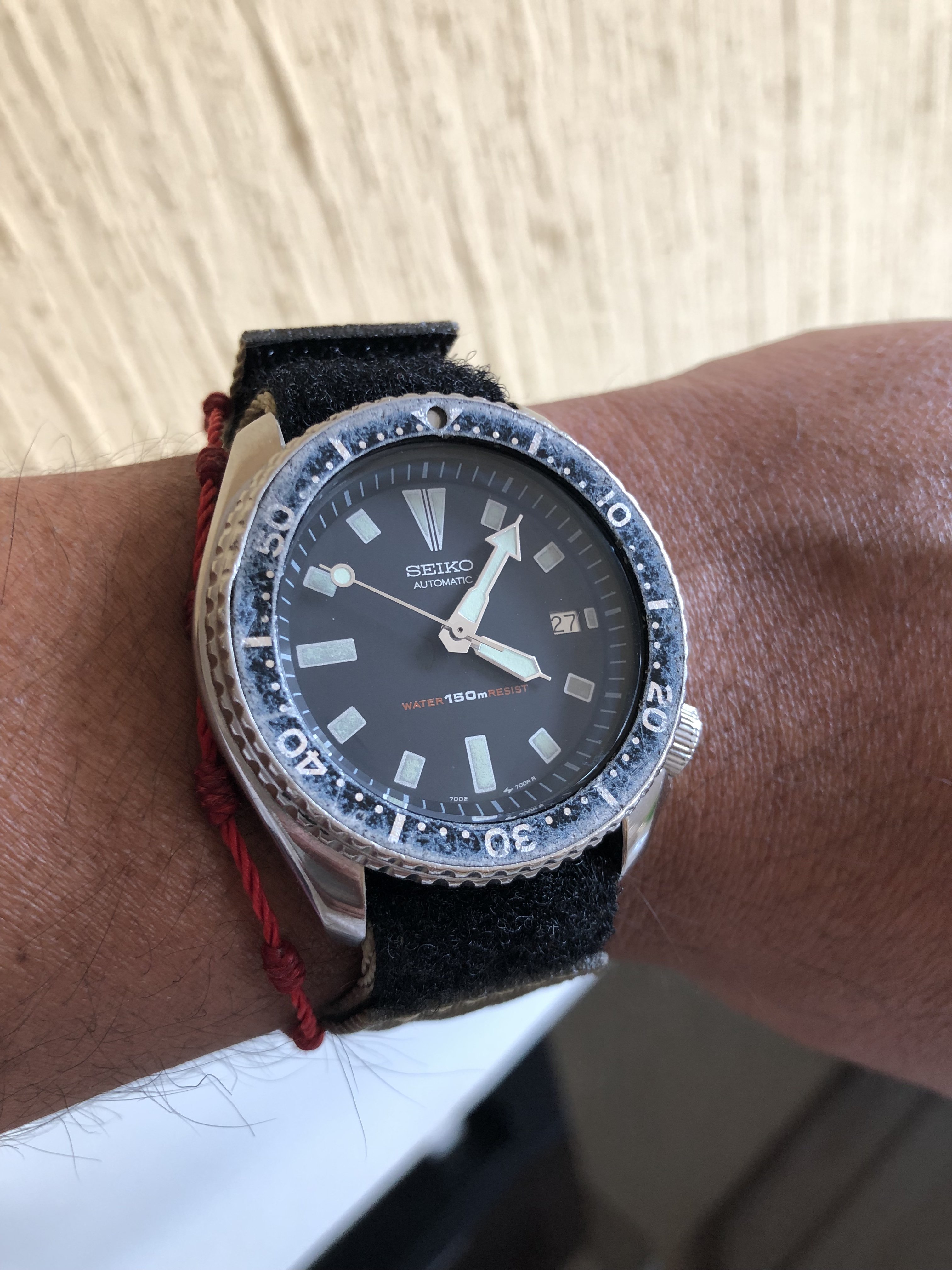 Thank you! It is an inexpensive 20mm aliexpress strap on the 21mm lugs. It is really hard to notice the sizing issue even in a photo. There are very few OEM curved end strap options for the 21mm Planet Oceans, so I had to compromise.