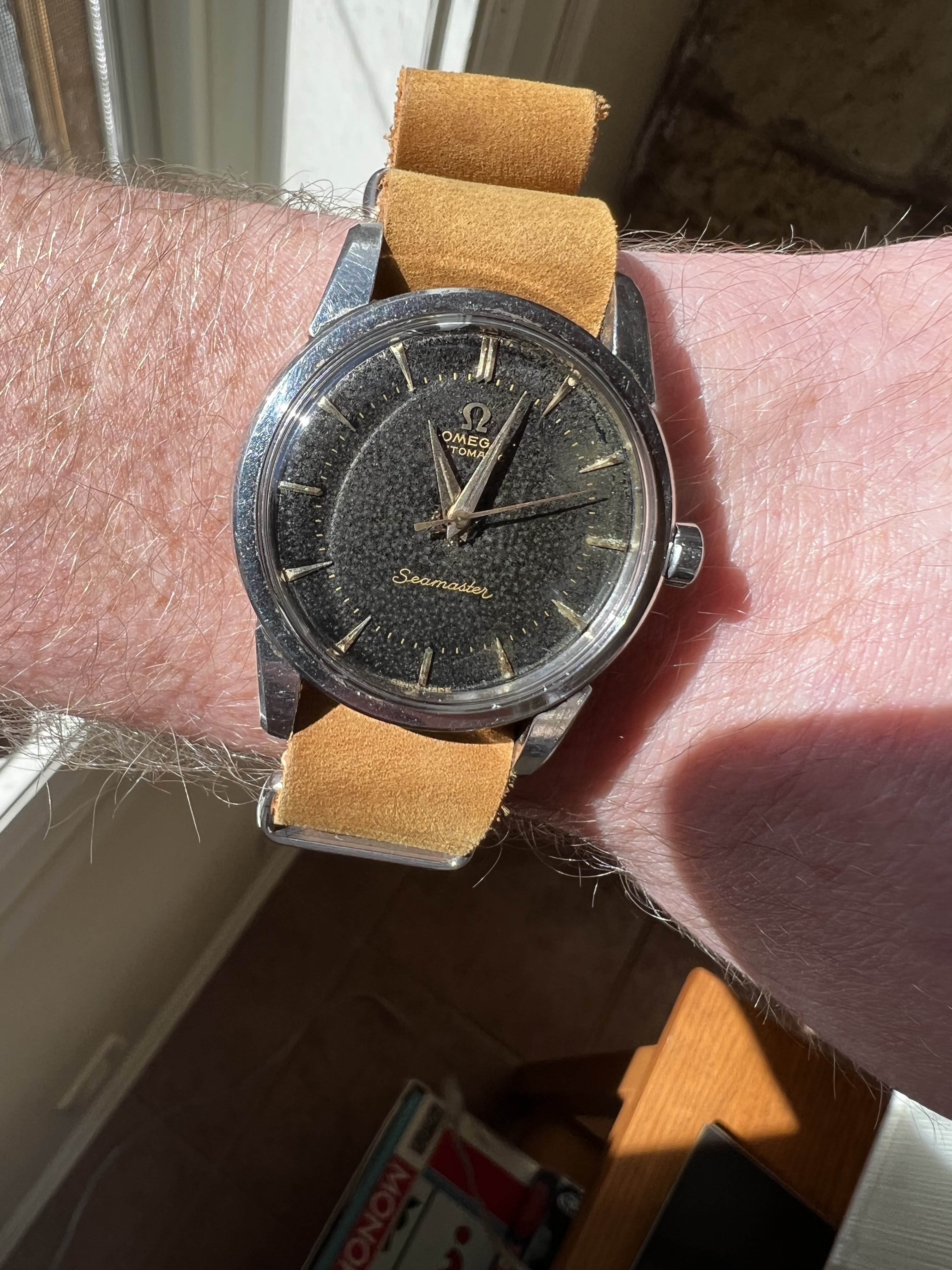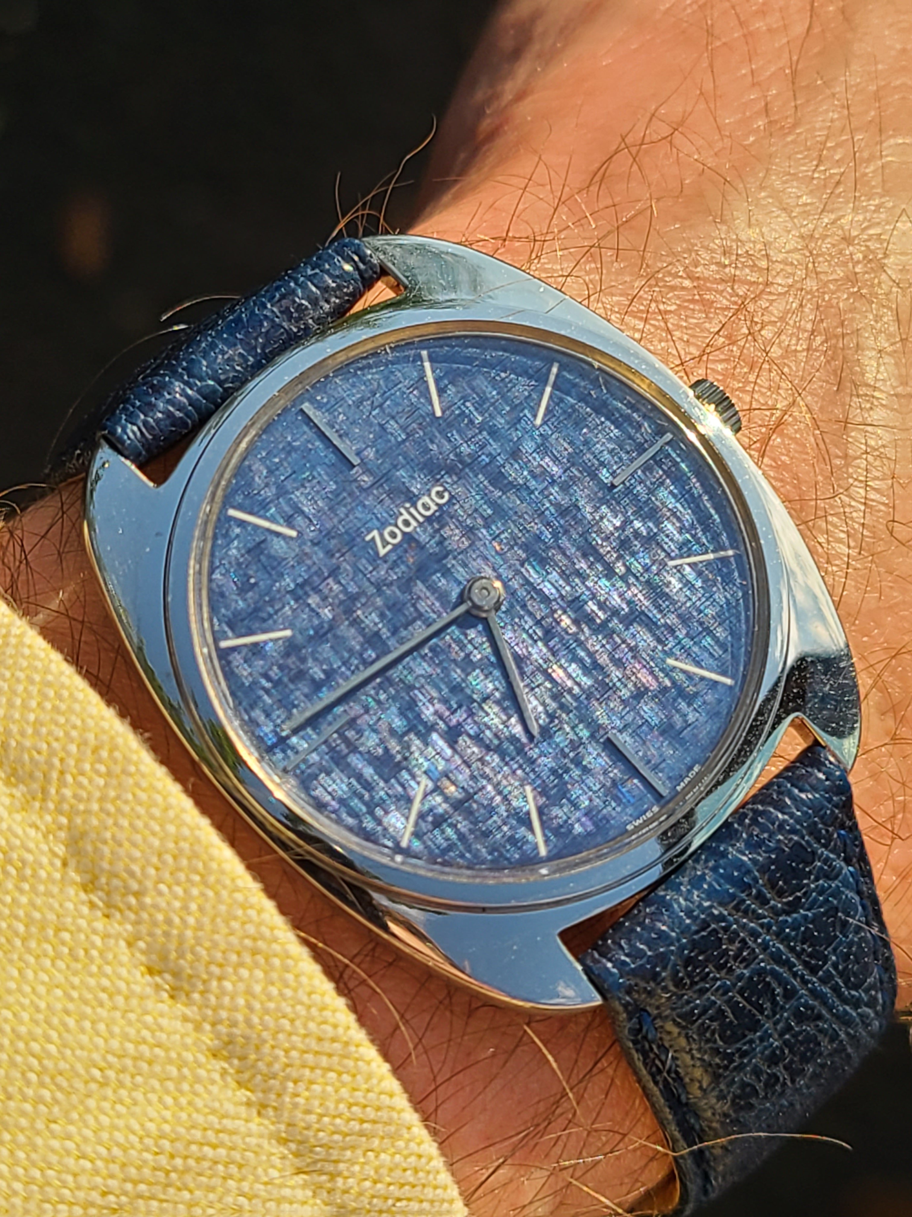 I've repeatedly looked high and low for watches. I've been in the safe almost daily since late October, have looked in that compartment at least a time or two, yet the watches remained undiscovered until today. Included within were my first Omega, a '57 Constellation on a BOR bracelet, Omega bumpers on hand here, a quite nice Lemania that the Forum influenced me to acquire, the Shameless Hussy redial '59 vintage Omega 520 Seamaster, the Mudu watches, the only quartz watch, a Seiko that I am sentimental about, Seiko 6309 7040 diver, my old favorite beater post war military style Glycine from a pawn shop 40 years ago, and an early production Zodiac Sea Wolf. While not a large, great, or valuable trove, I like 'em and am sentimental about some few of 'em. Was beginning to fear they were really just lost for good. It was a bit of a downer I must confess and contributed to less watch hobby enthusiasm for some reason.