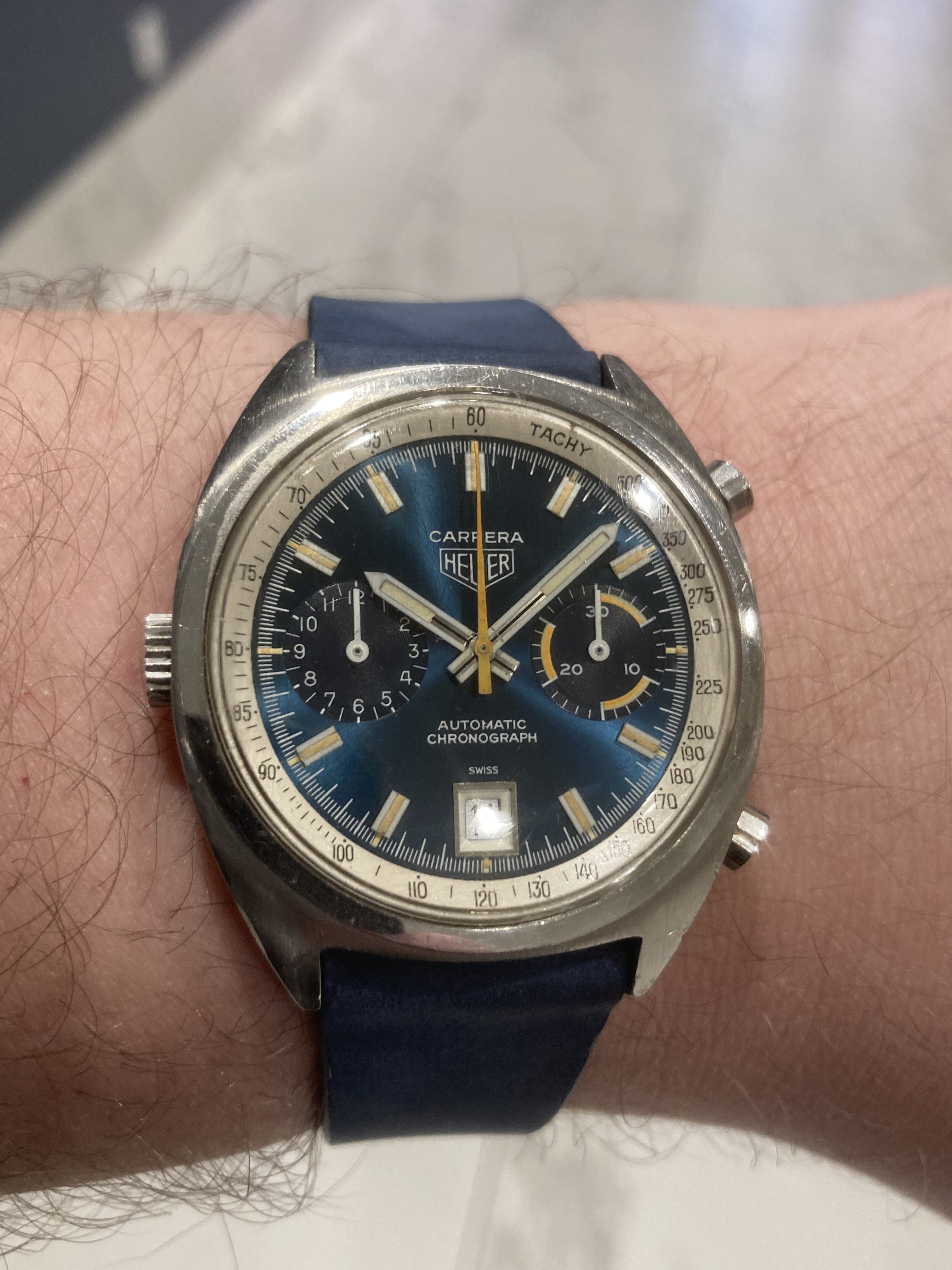 Trying a different strap on my 2534.50 for the afternoon. Too much? Too bright? Too "Mr. Wonderful?" 😜 We'll see. Some red sailcloth for a summer splash.