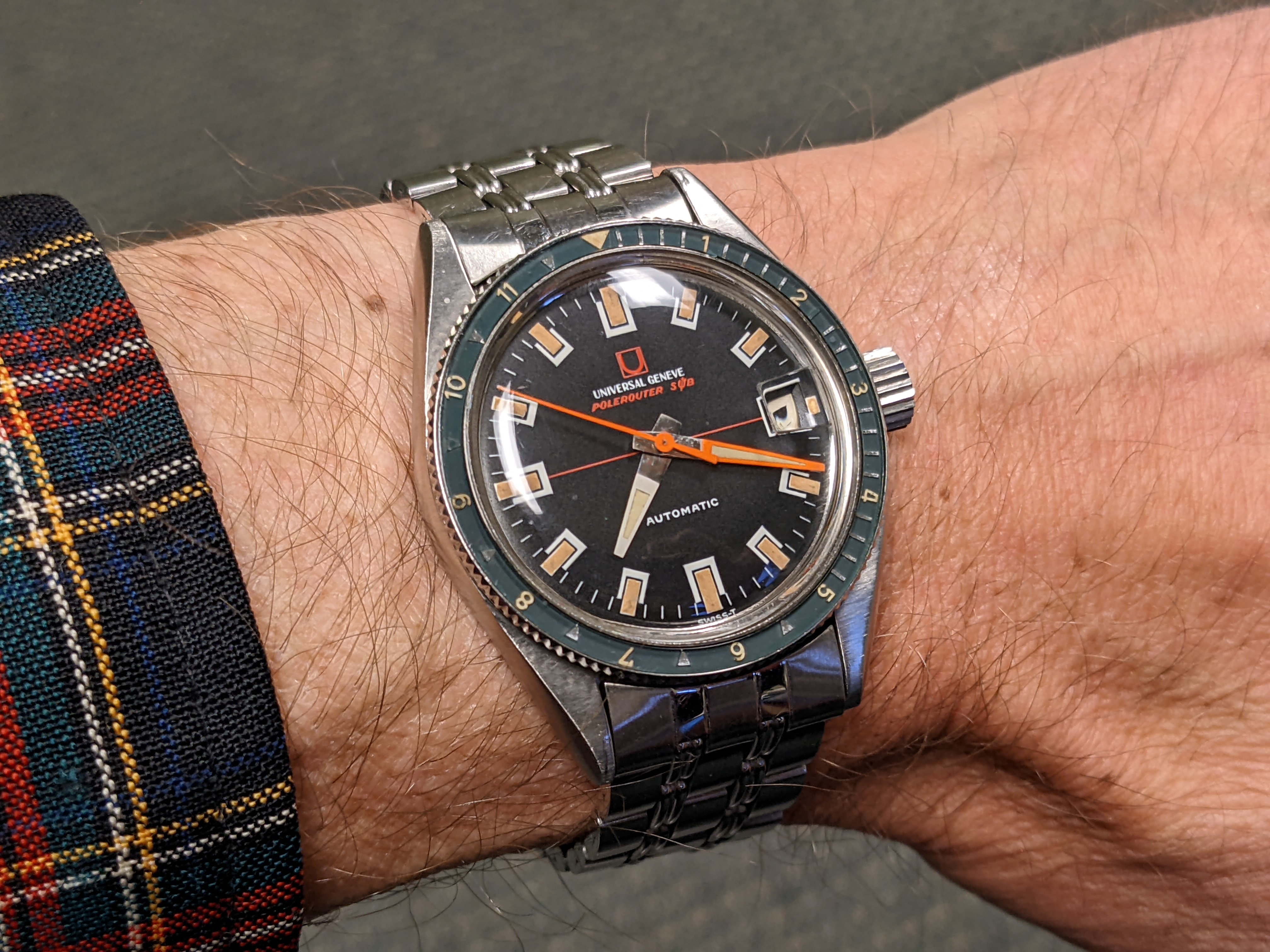 Posts 1,387 Likes 14,427 8926ob ·Apr 22, 2022 Gopher UG Polerouter Sub, Gen III from 1969 on original GF bracelet. You do not see too many watches with a green (Bakelite) bezel! Same material...different color Oops...wrong date.
