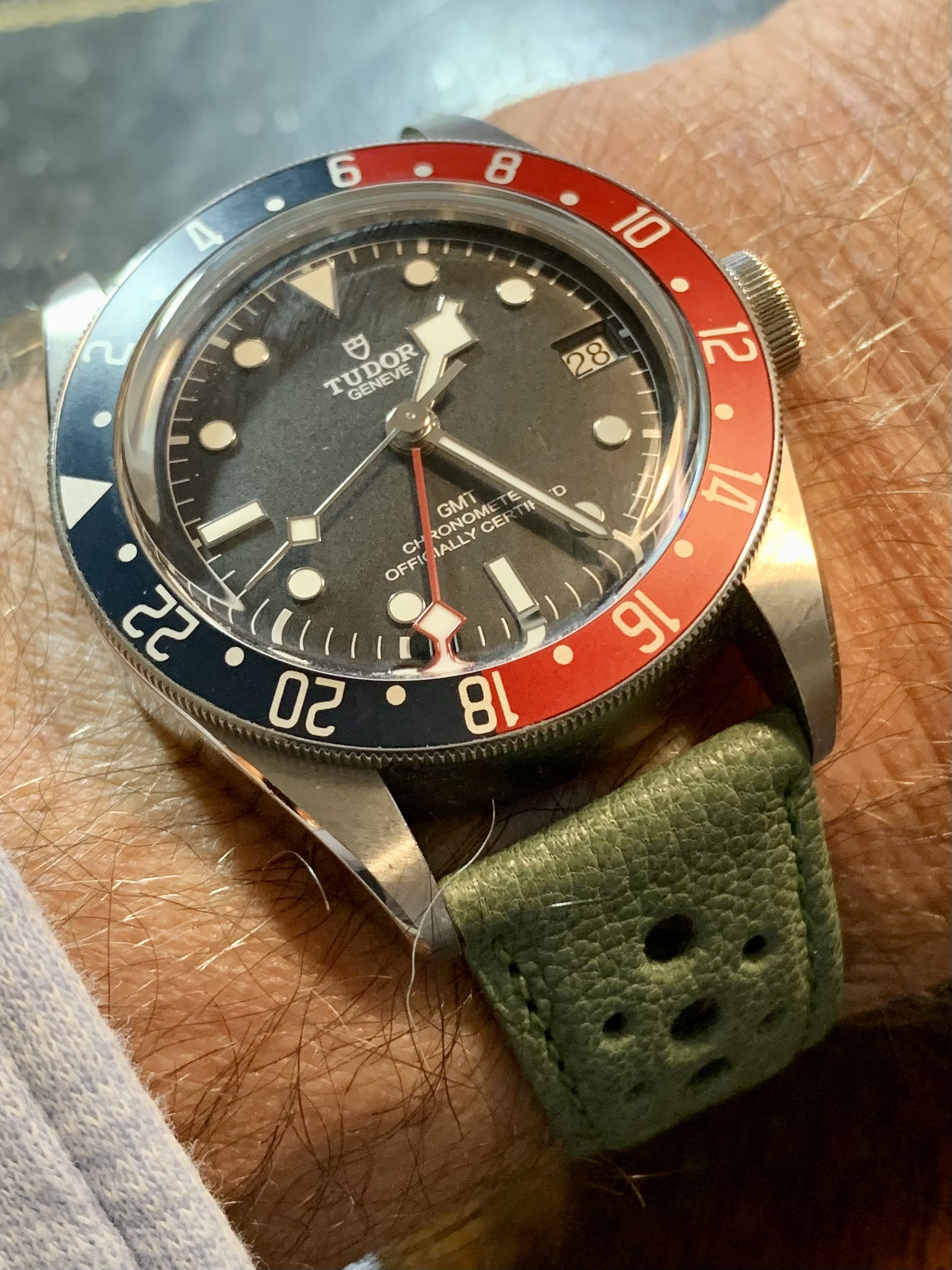 Posts 2,053 Likes 22,099 Norfolk ·Apr 28, 2022 Tudor GMT on RalStra Strap. Salvia green colour of strap is very distinctive on this watch!