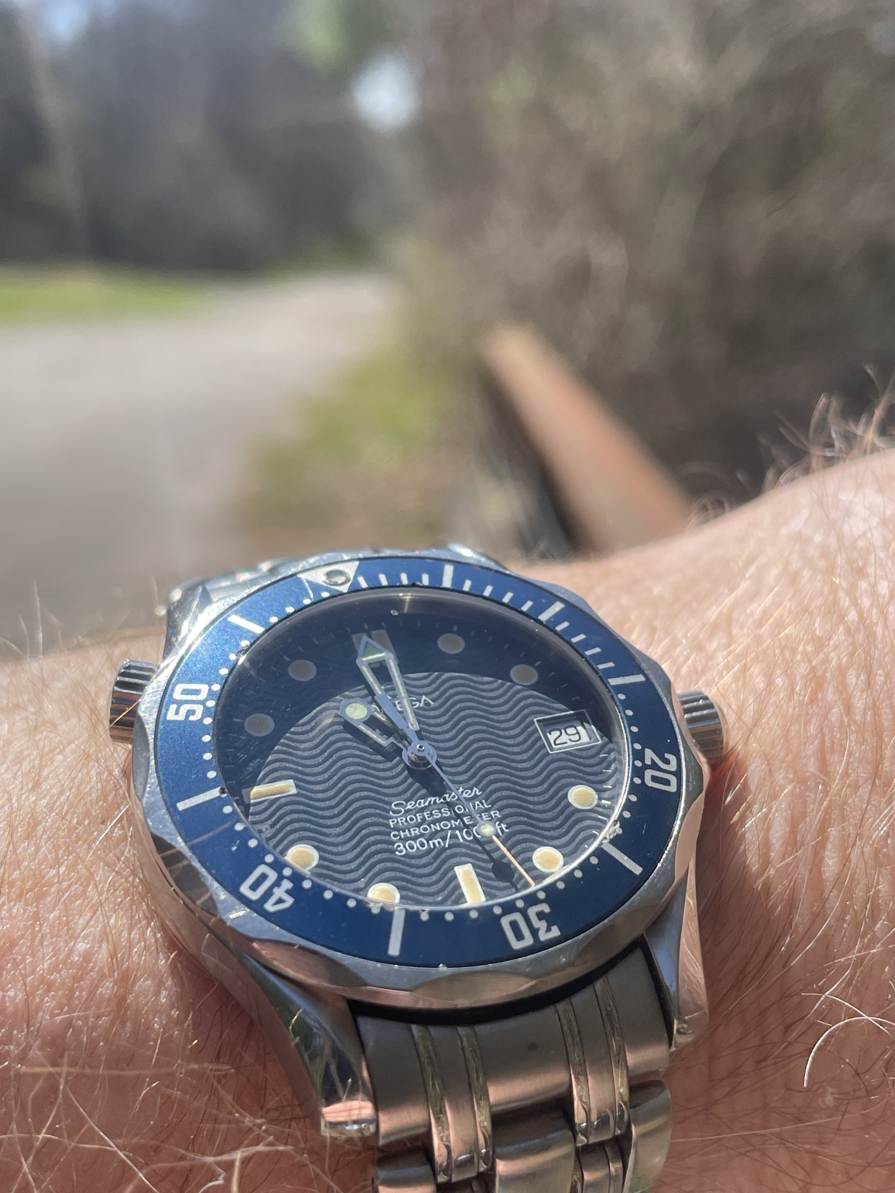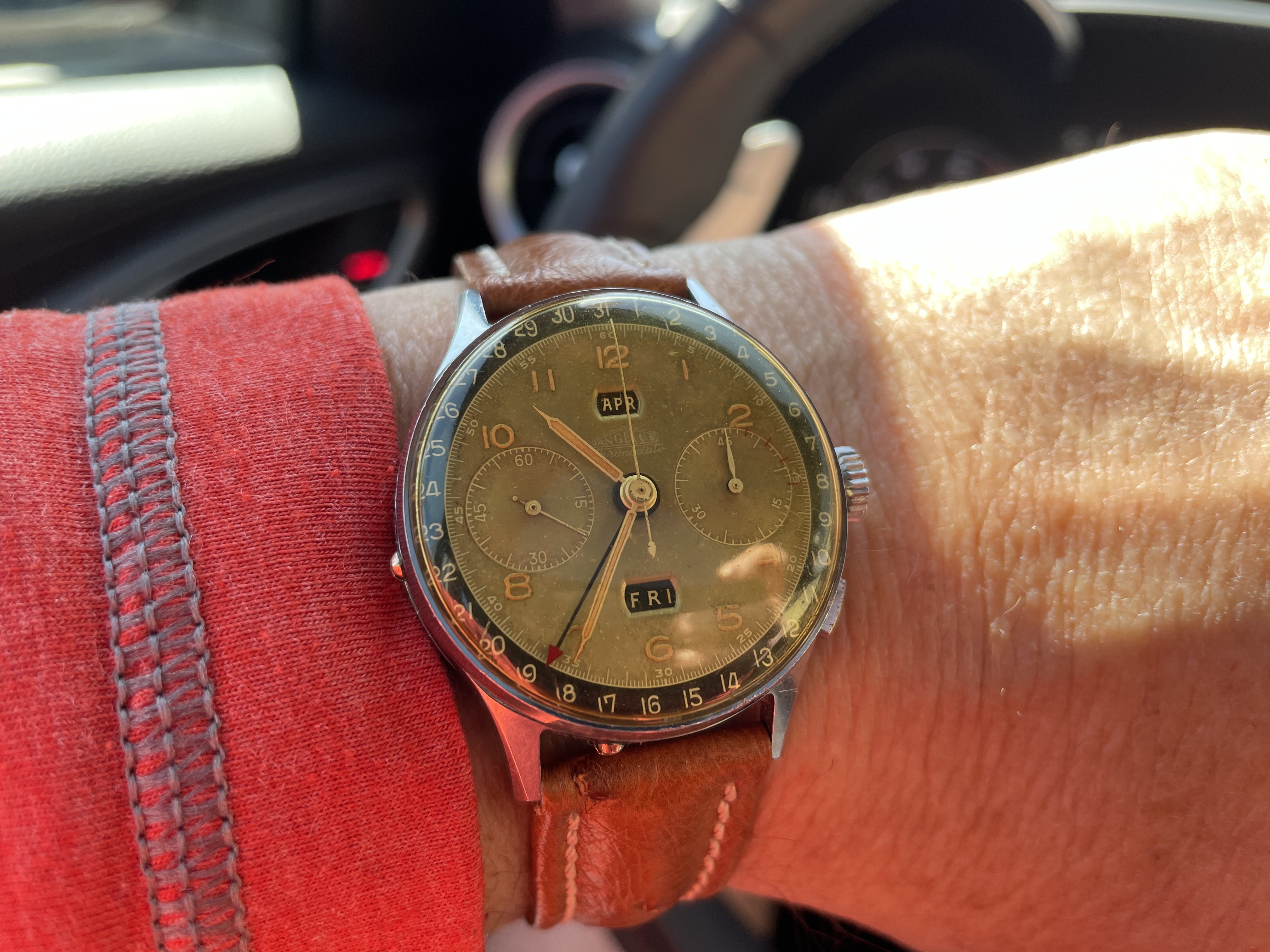 Usually I try and match my watch and strap to my shirt or belt color........first time I have ever seen a man accessorize his watch strap to his dog. LOL Sorry, couldn't not notice or resist.