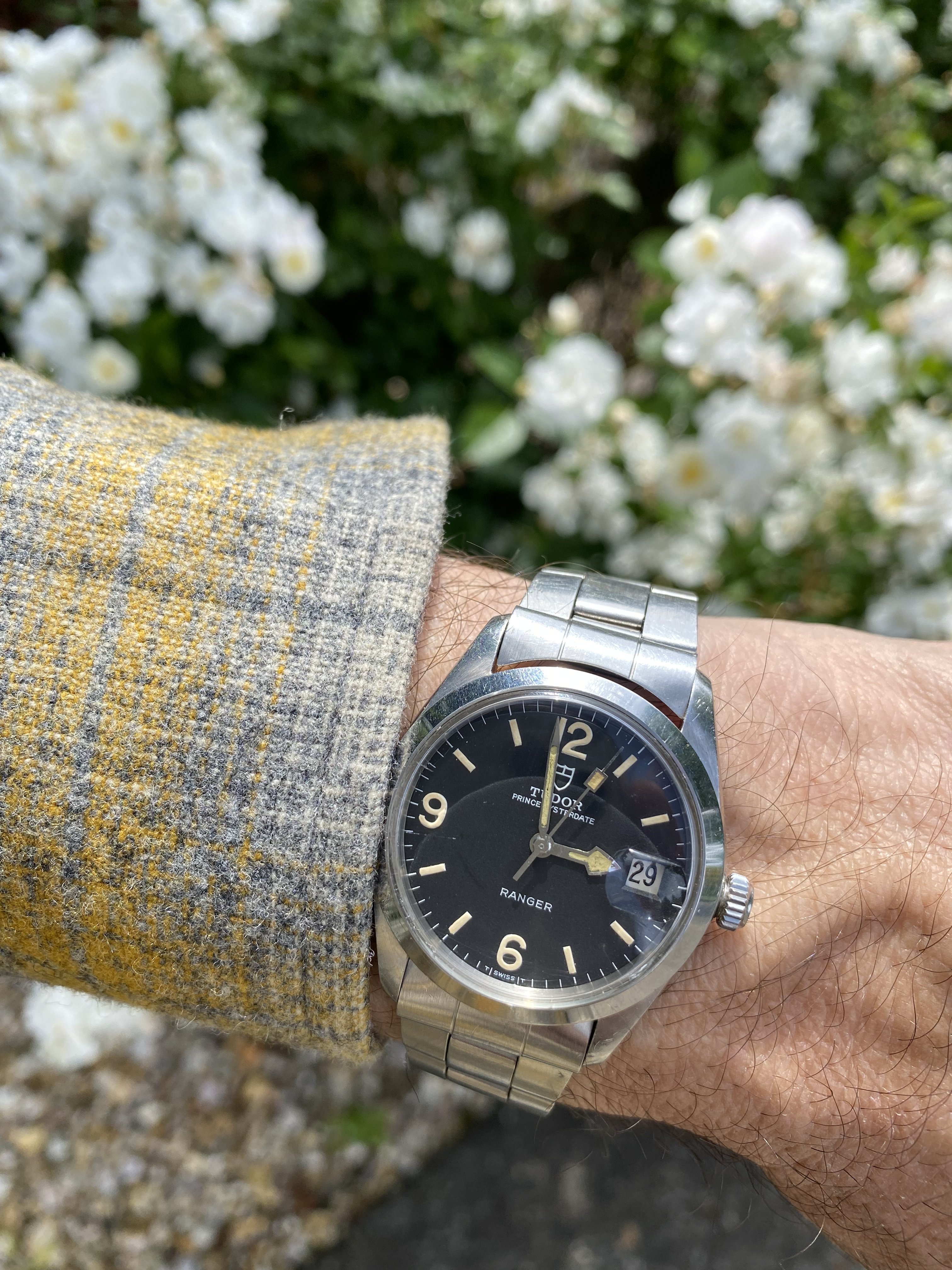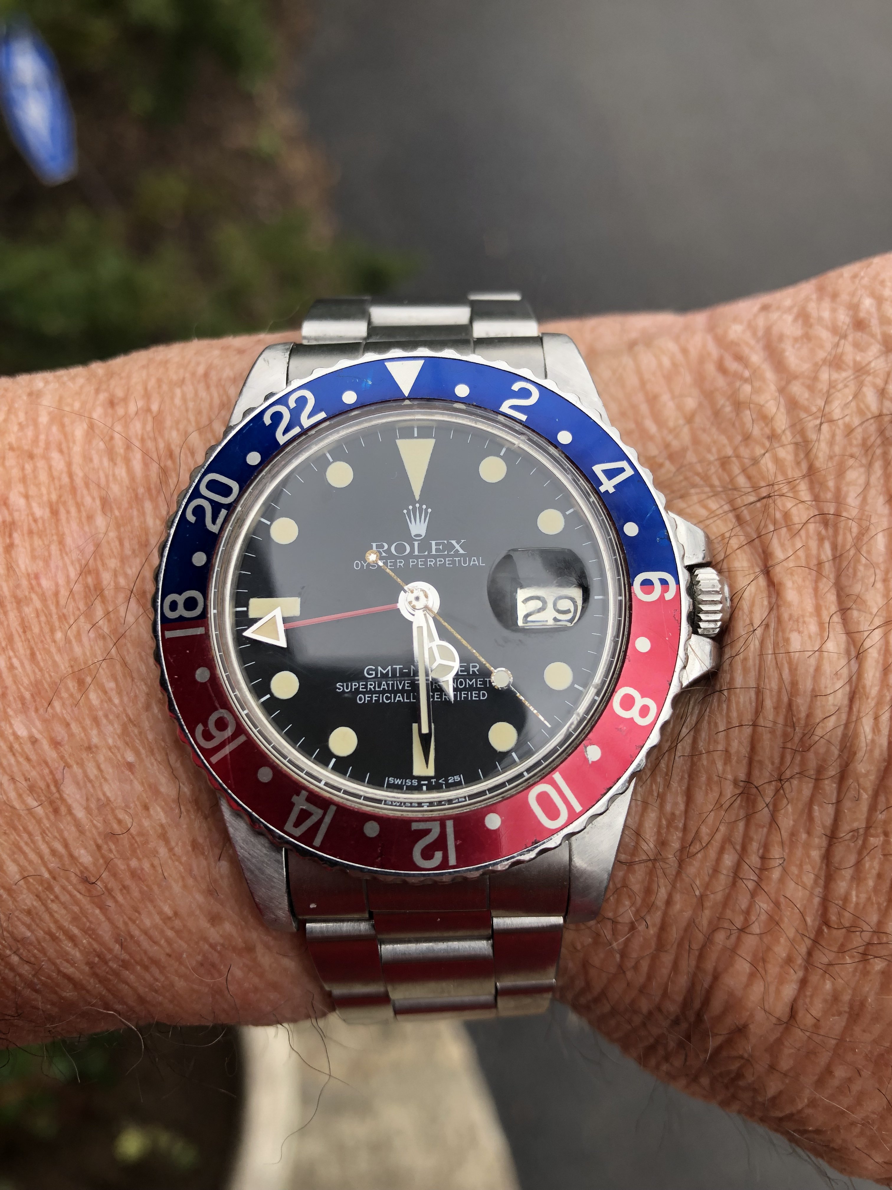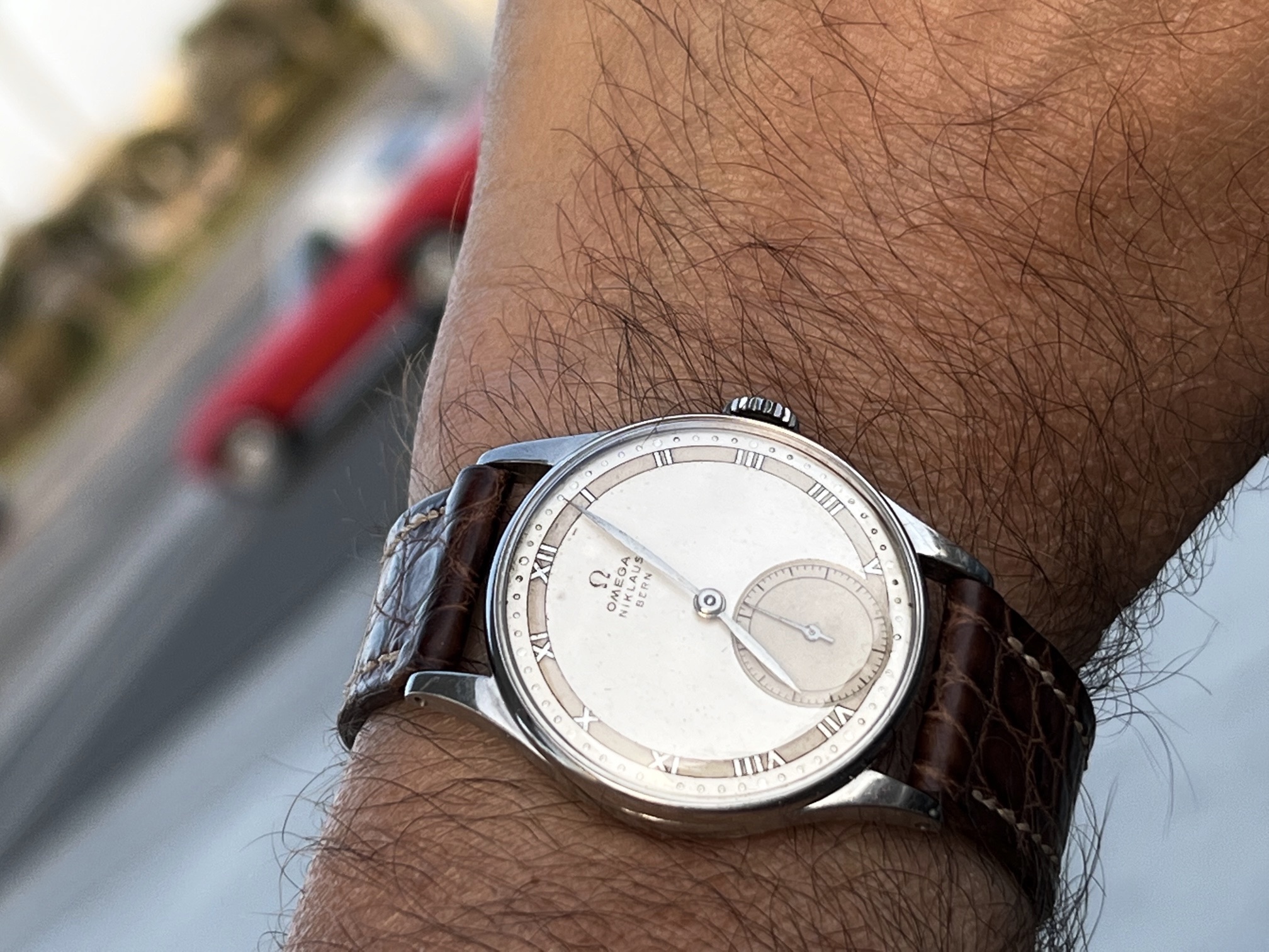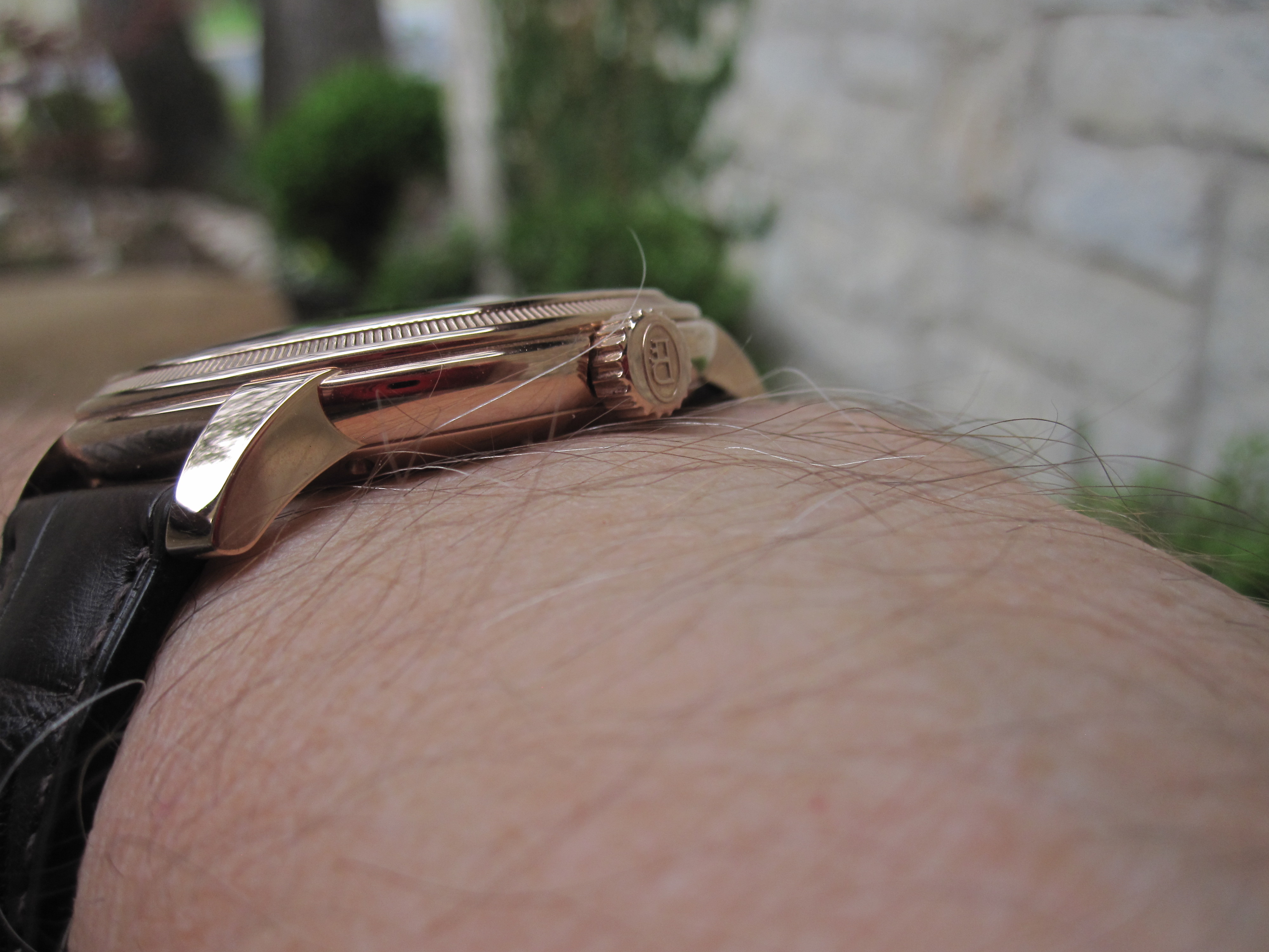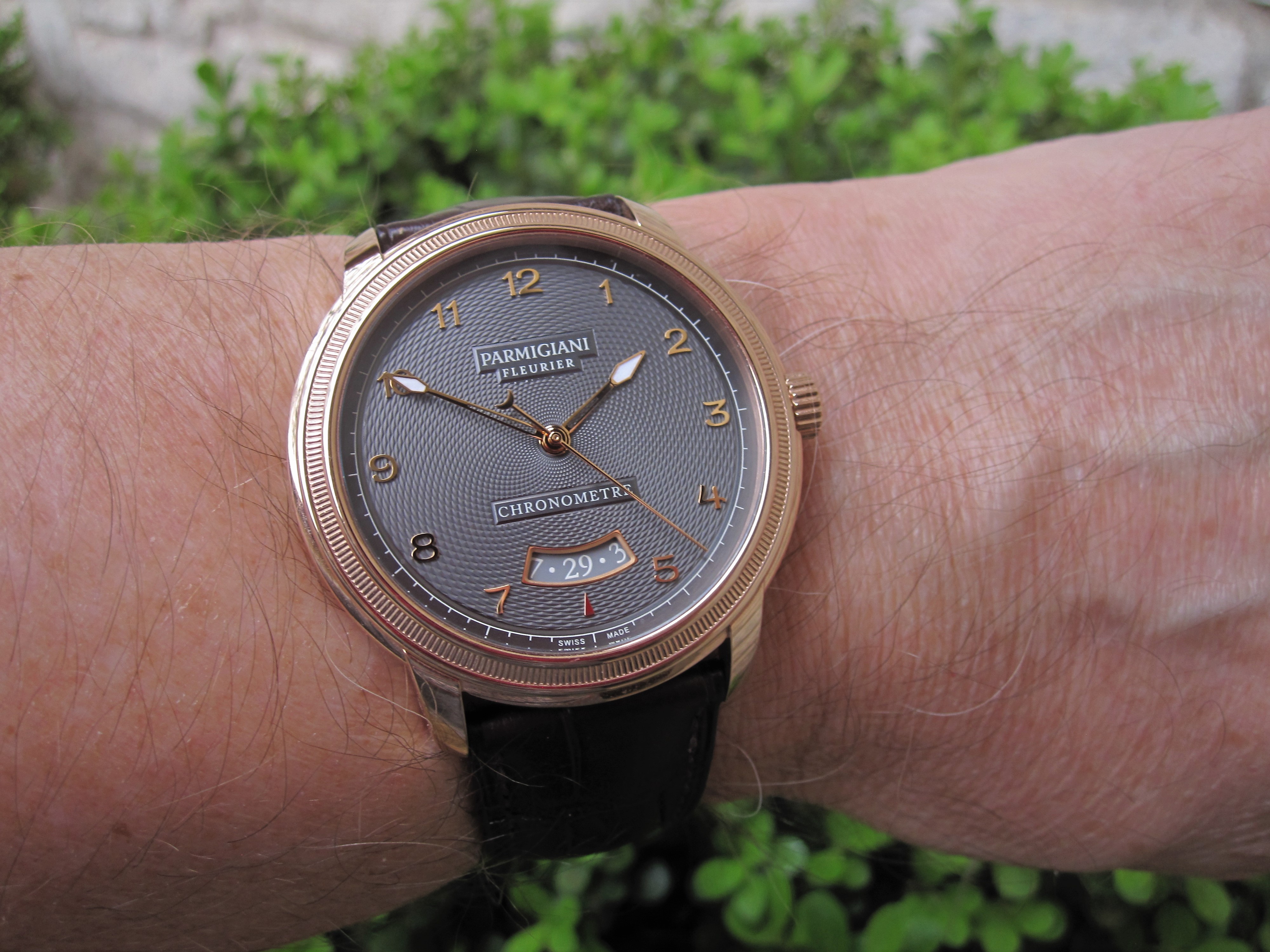 ·A dressier watch for today, this is a limited edition of 10 pieces by Parmigiani in 2019. Rose gold Toric case with guilloche dial in grey 'Grain de riz' pattern. I was never crazy about his wide date aperture design but this one works. As usual super high quality automatic movement. Relatively thin at 9.5 mm, a very easy to wear piece.