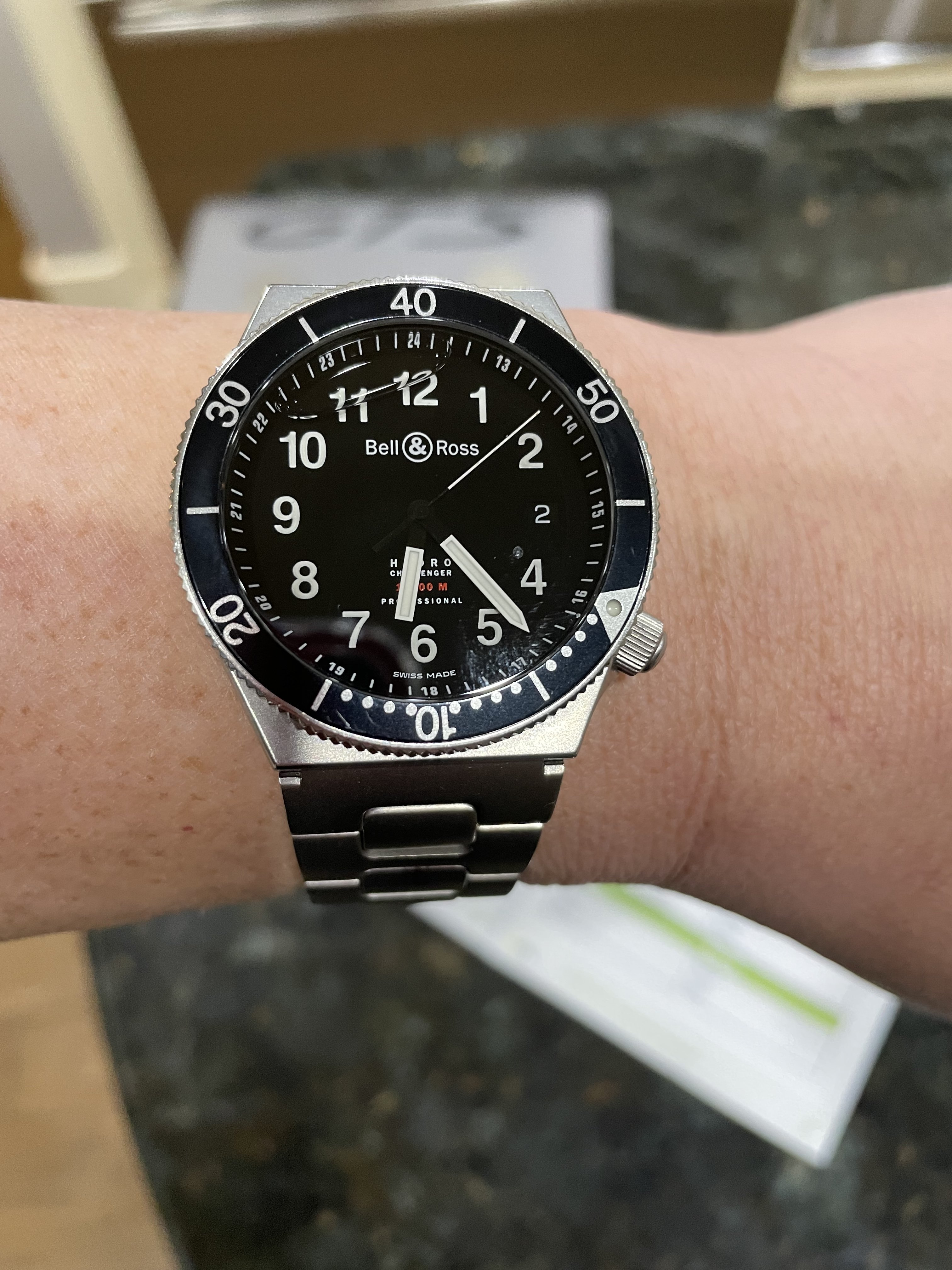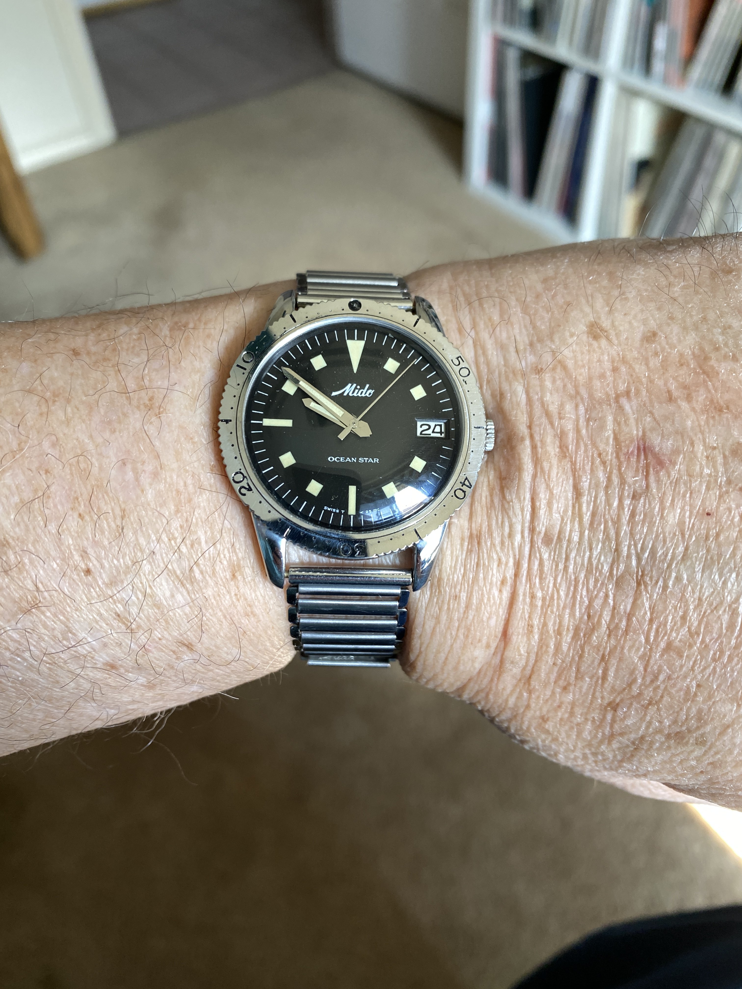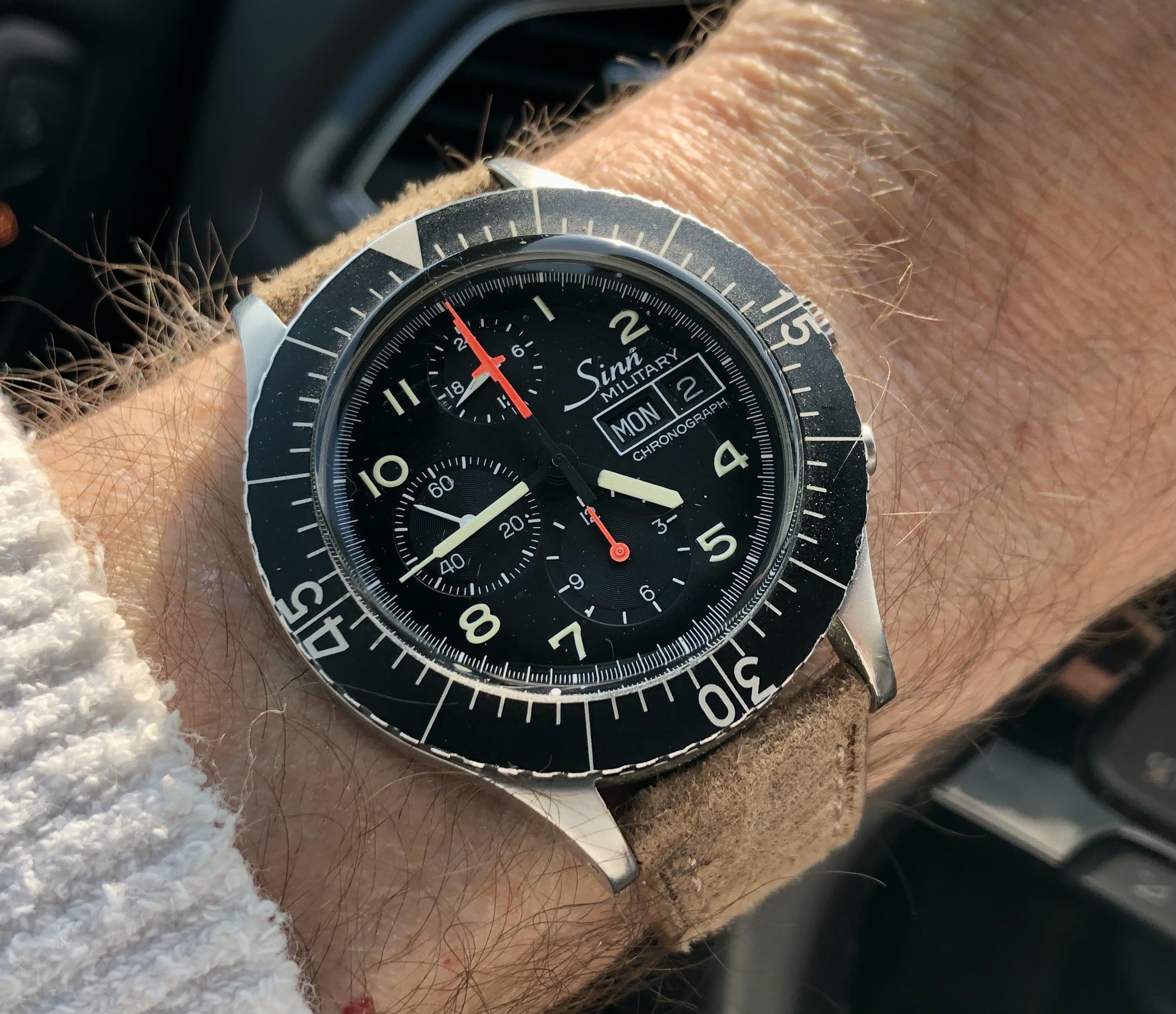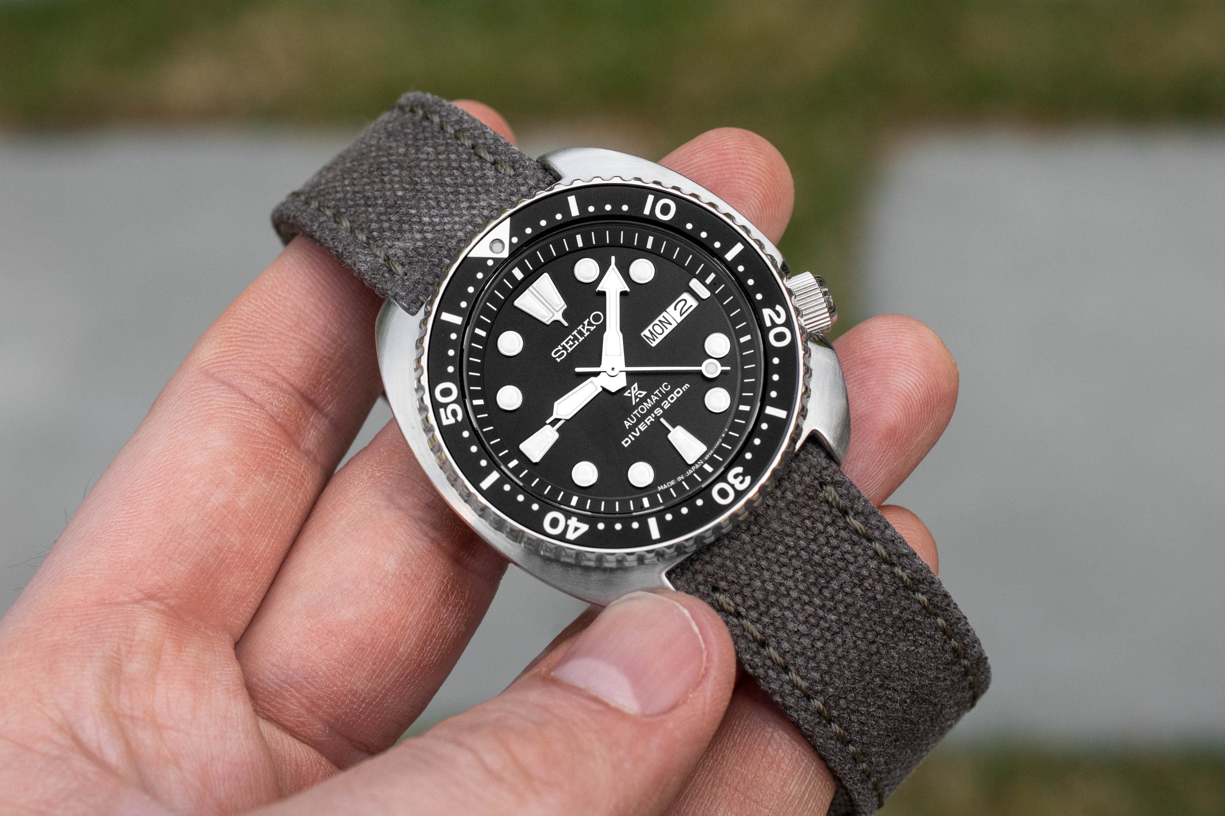 I am trying to get this fashion thing. Grey pants, grey shirt, even sneakers grey so I wanted a grey dial watch. Once again the fluorescent band makes me wonder if I bombed the fashion test but considering I top everything off with a Grateful Dead dancing bear it’s probably moot