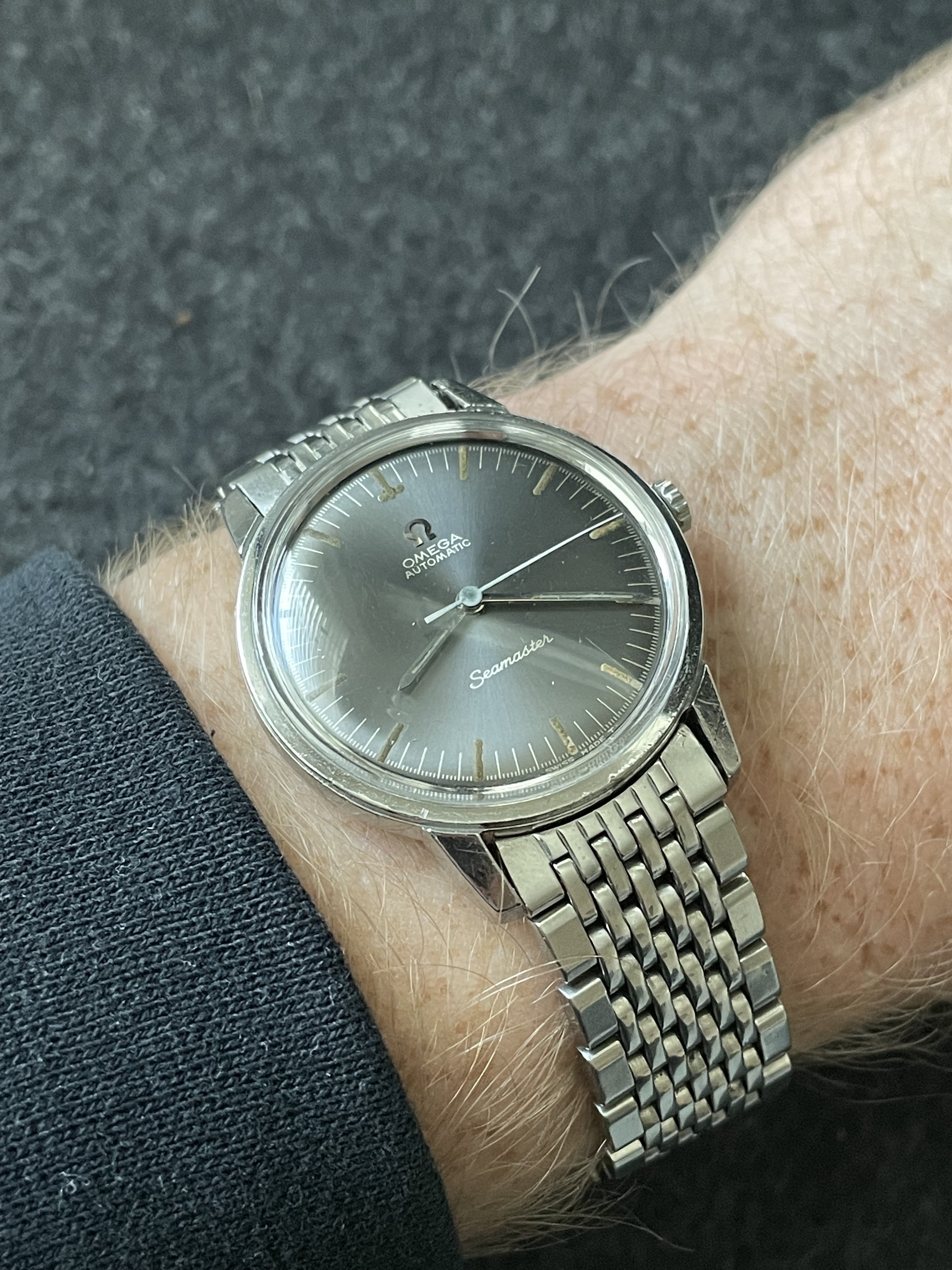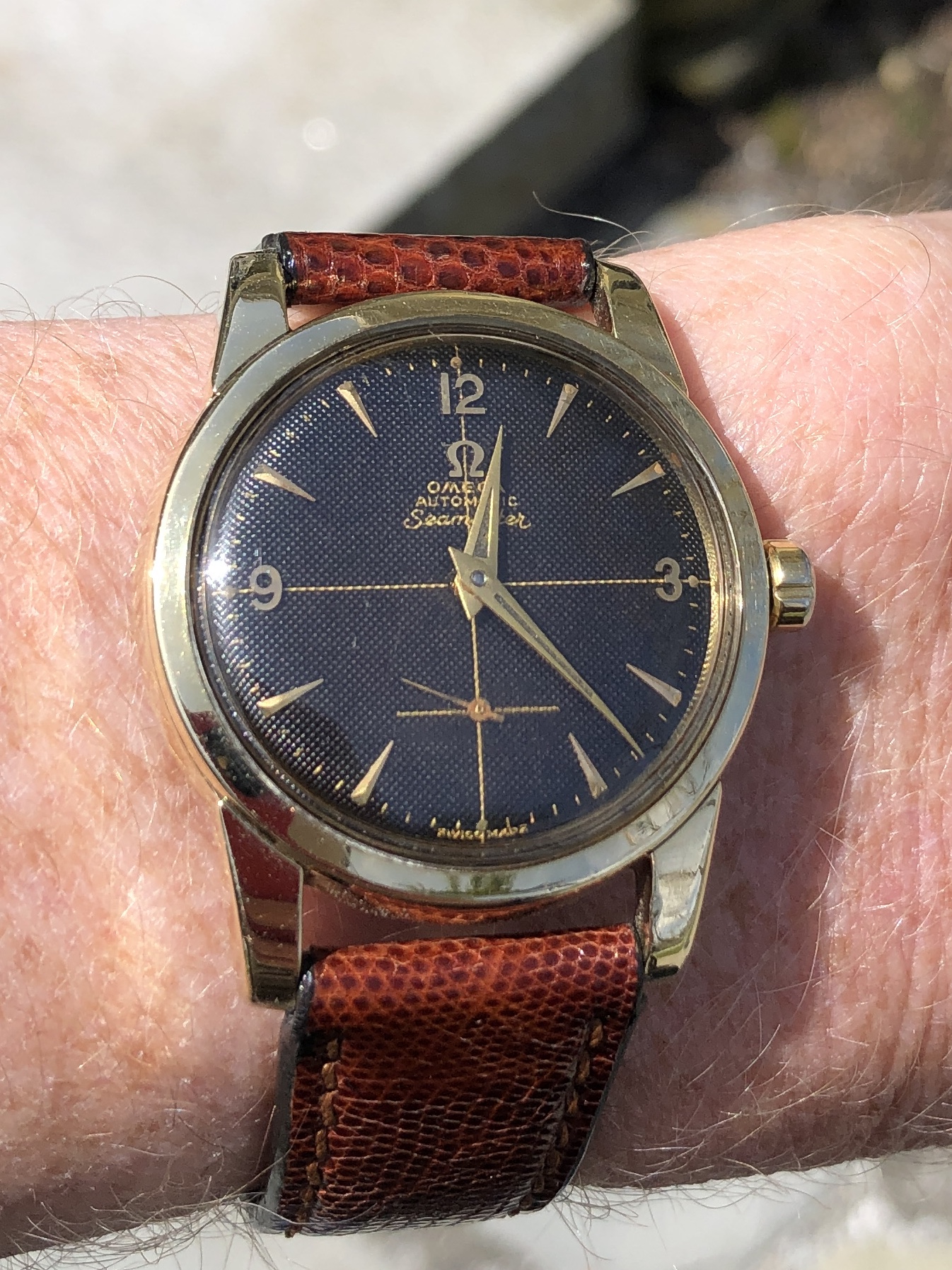 Hanging out this weekend with the Shameless Hussy re-dialed Seamaster with 520 movement. Worn yesterday, wearing today, and might even wear her to church tomorrow. After all, the old saying goes: "The church isn't a harbor for saints; it's a hospital for sinners." Ya' think anyone will be scandalized?