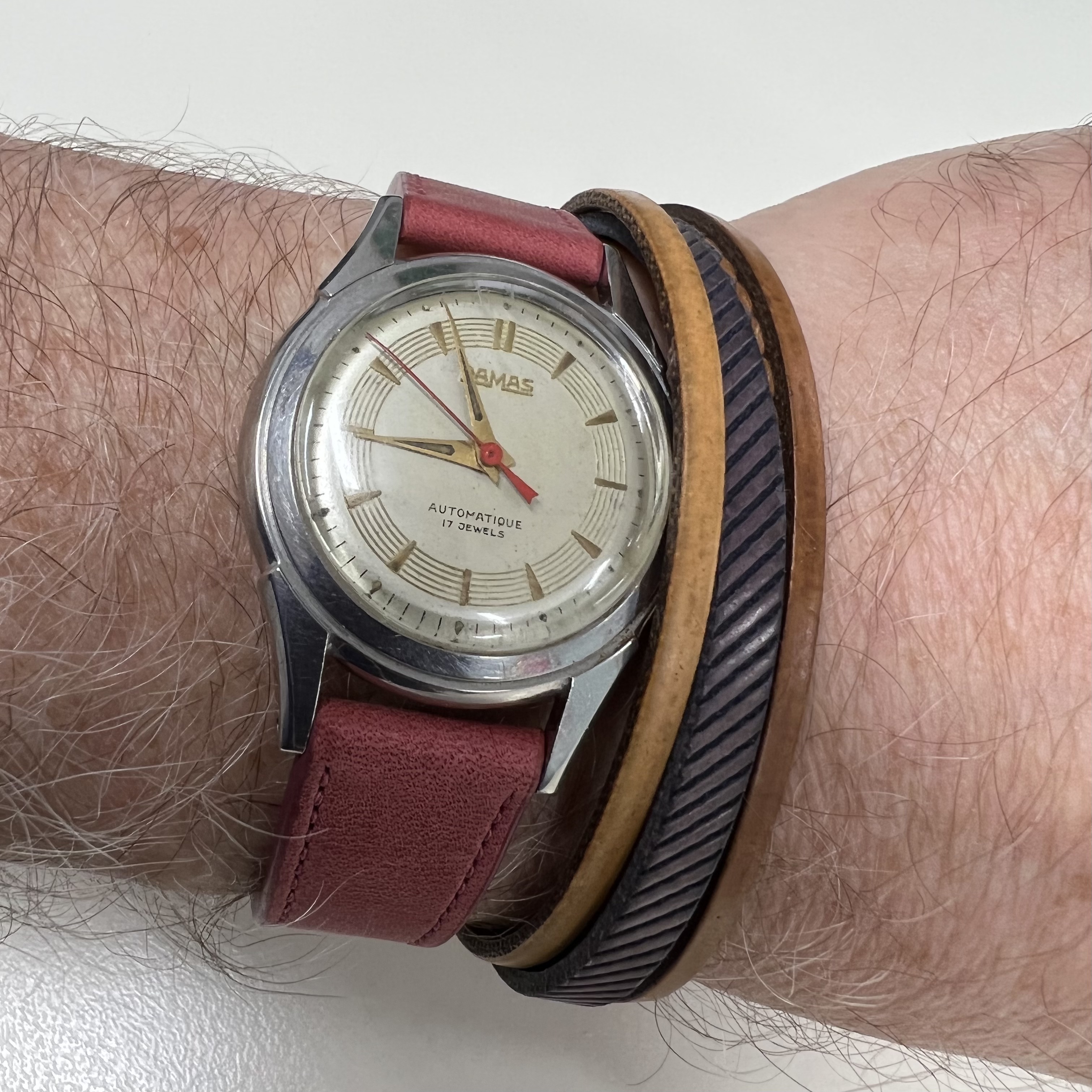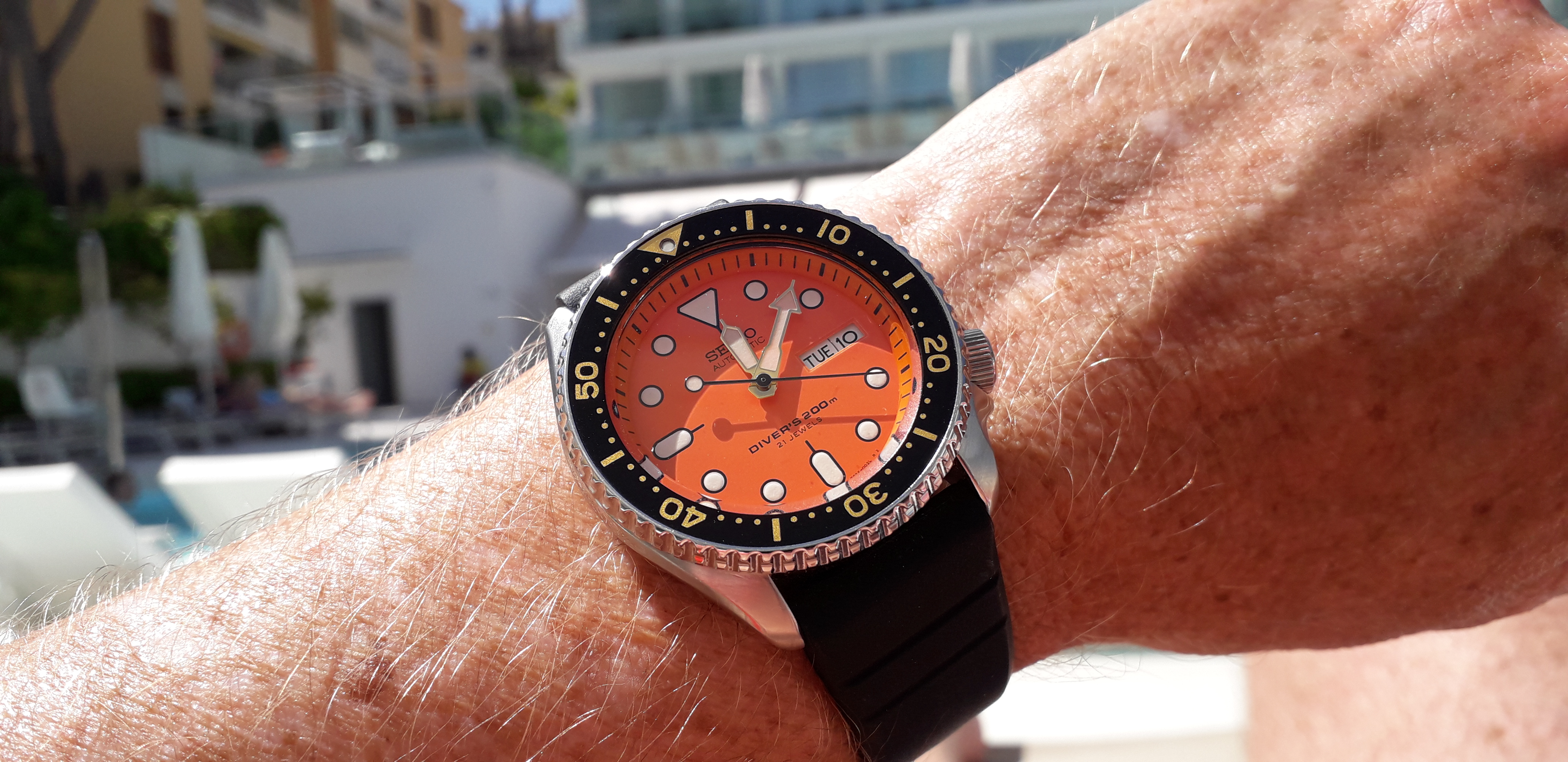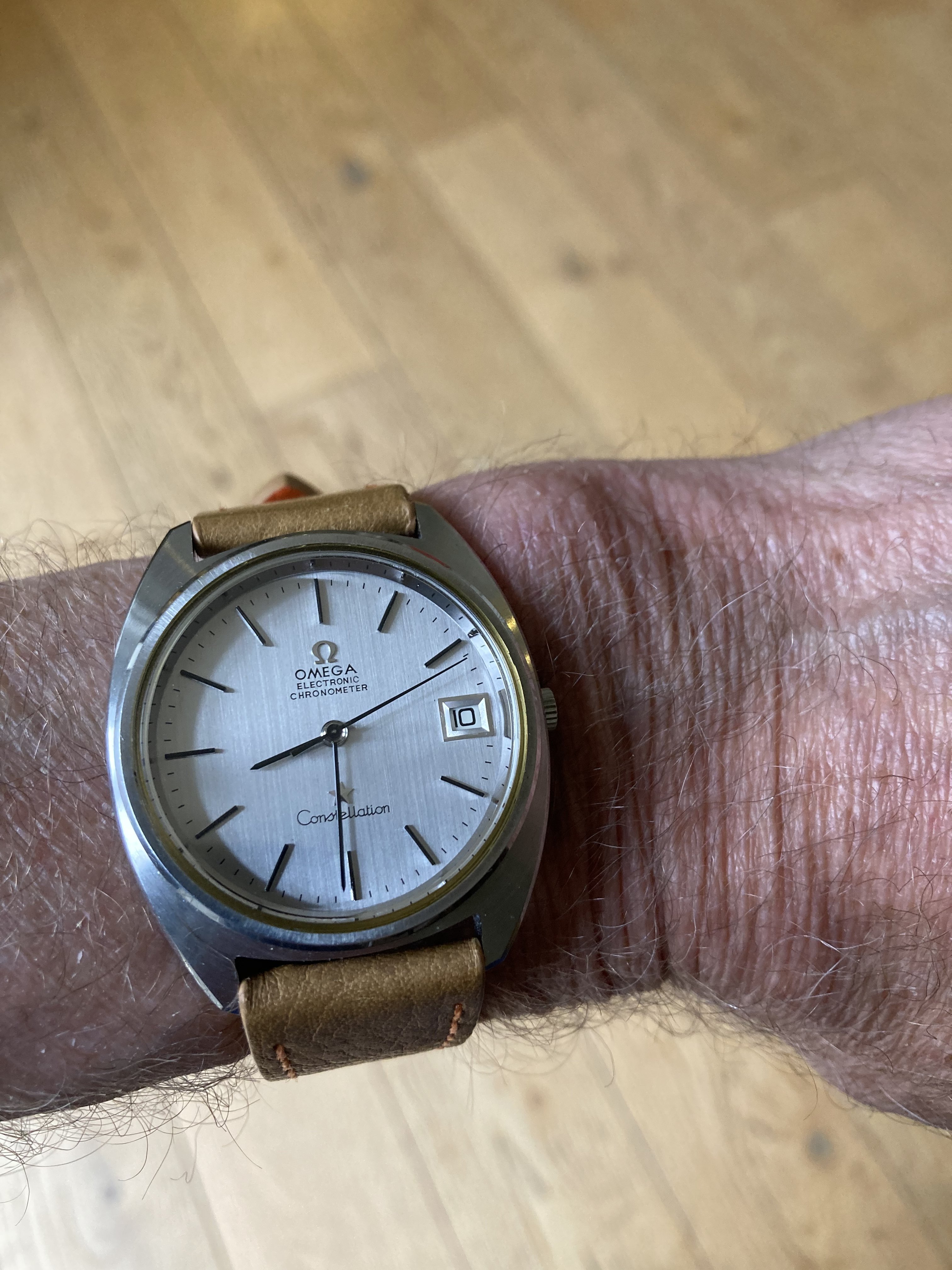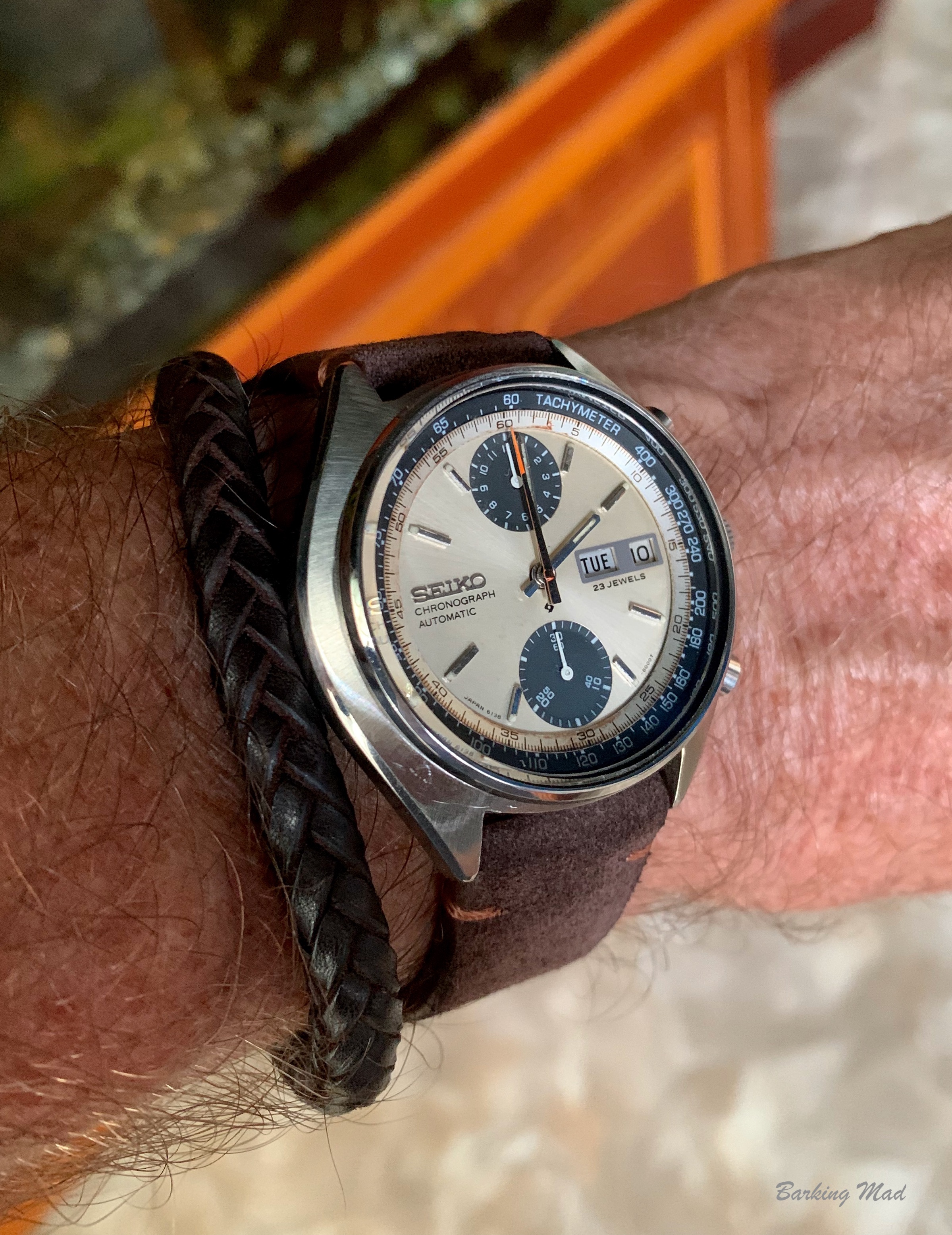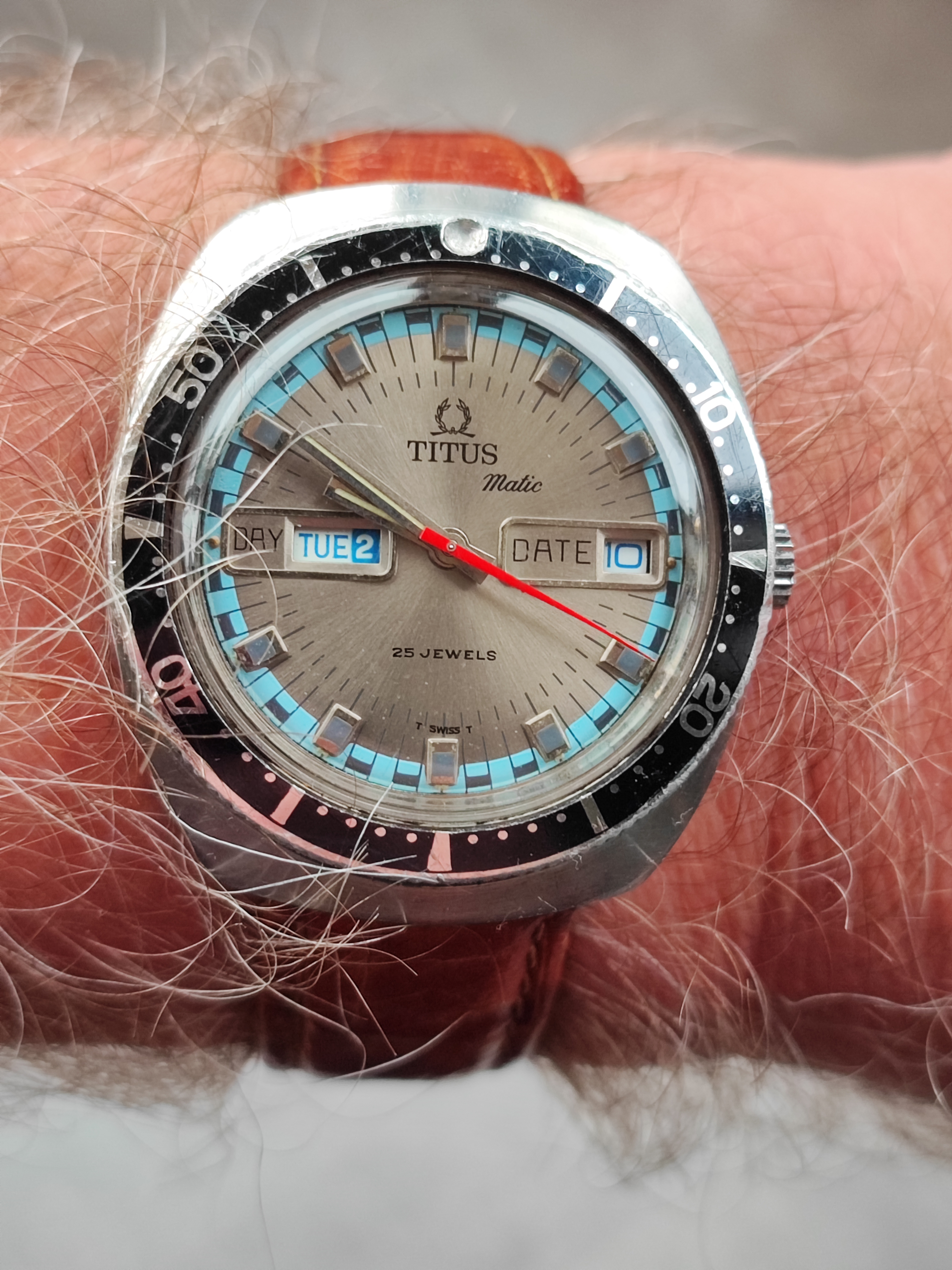 Recently got this from @Toishome and I massively love it - awesome sleeper that nods to autosports but doesn't go all the way - love the circular dial pattern, blued hands, and of course orange seconds hand. Had new eye crystal added, supposed to be Omega but no center logo...