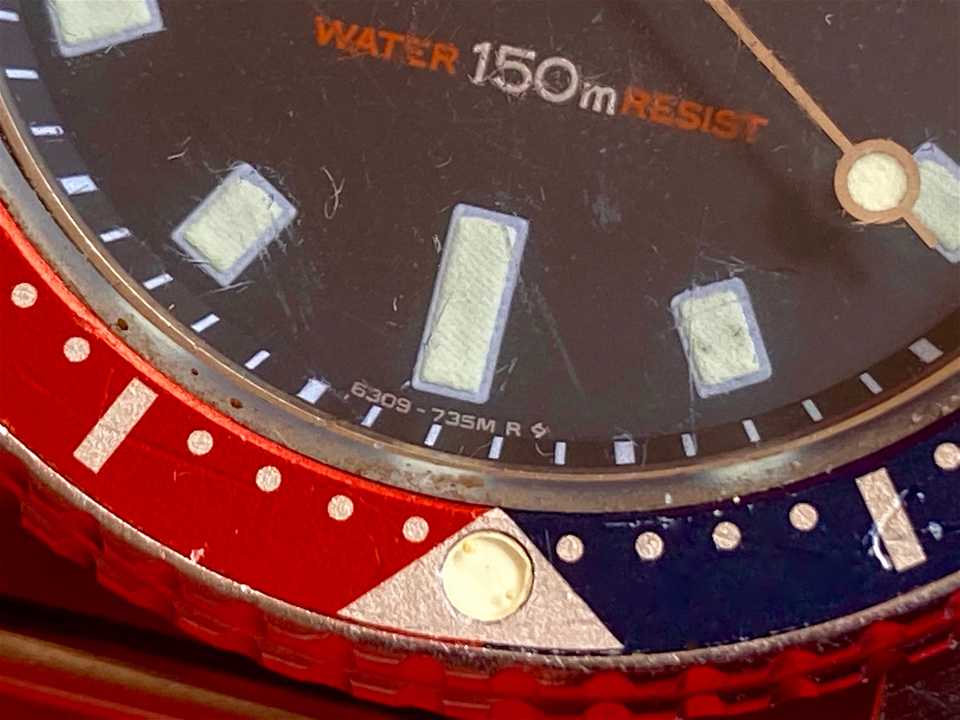 Posts 3,397 Likes 17,371 hmmmcamu ·May 14, 2022 SEIKO 6309-729A F1 Pepsi Bezel with Black Dial 1982 misc.: - SEIKO 6306/9 - (7000/1 and 7040/9) was introduced in 1976 through 1988 (13 year run) SLIM CASE 6309 (7290,729A) was introduced in 1982 until 1988. Edited: May 14, 2022