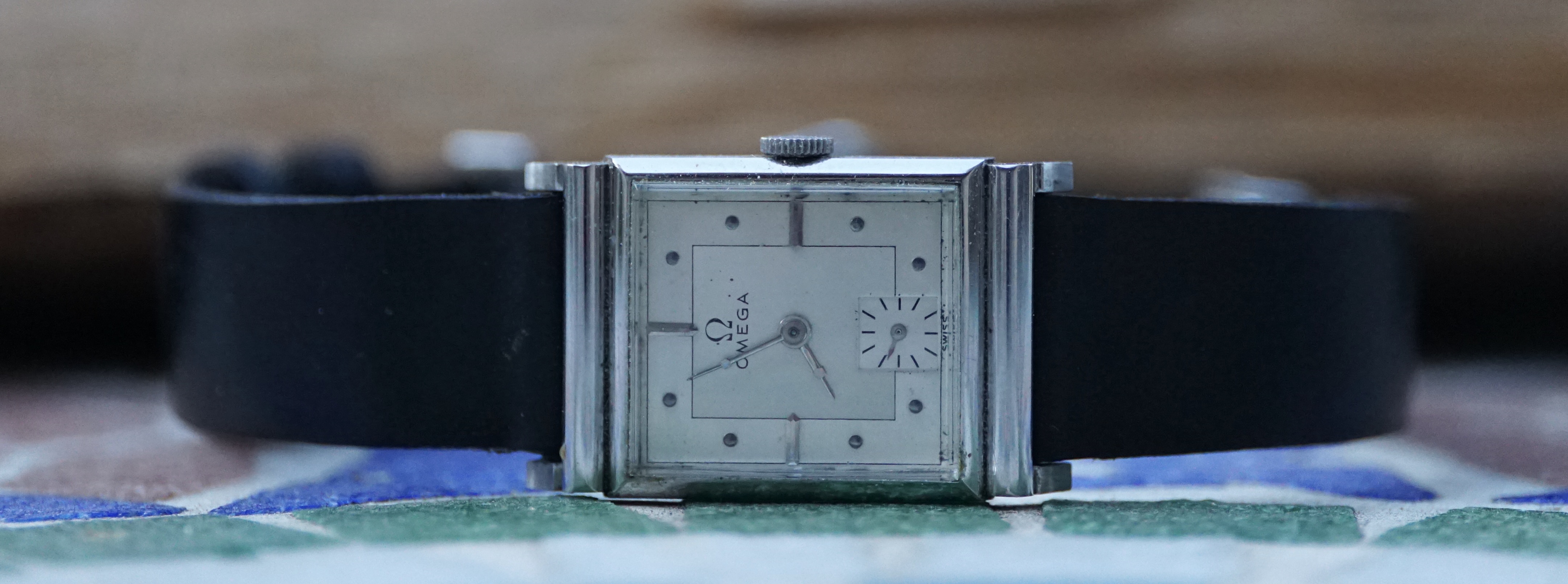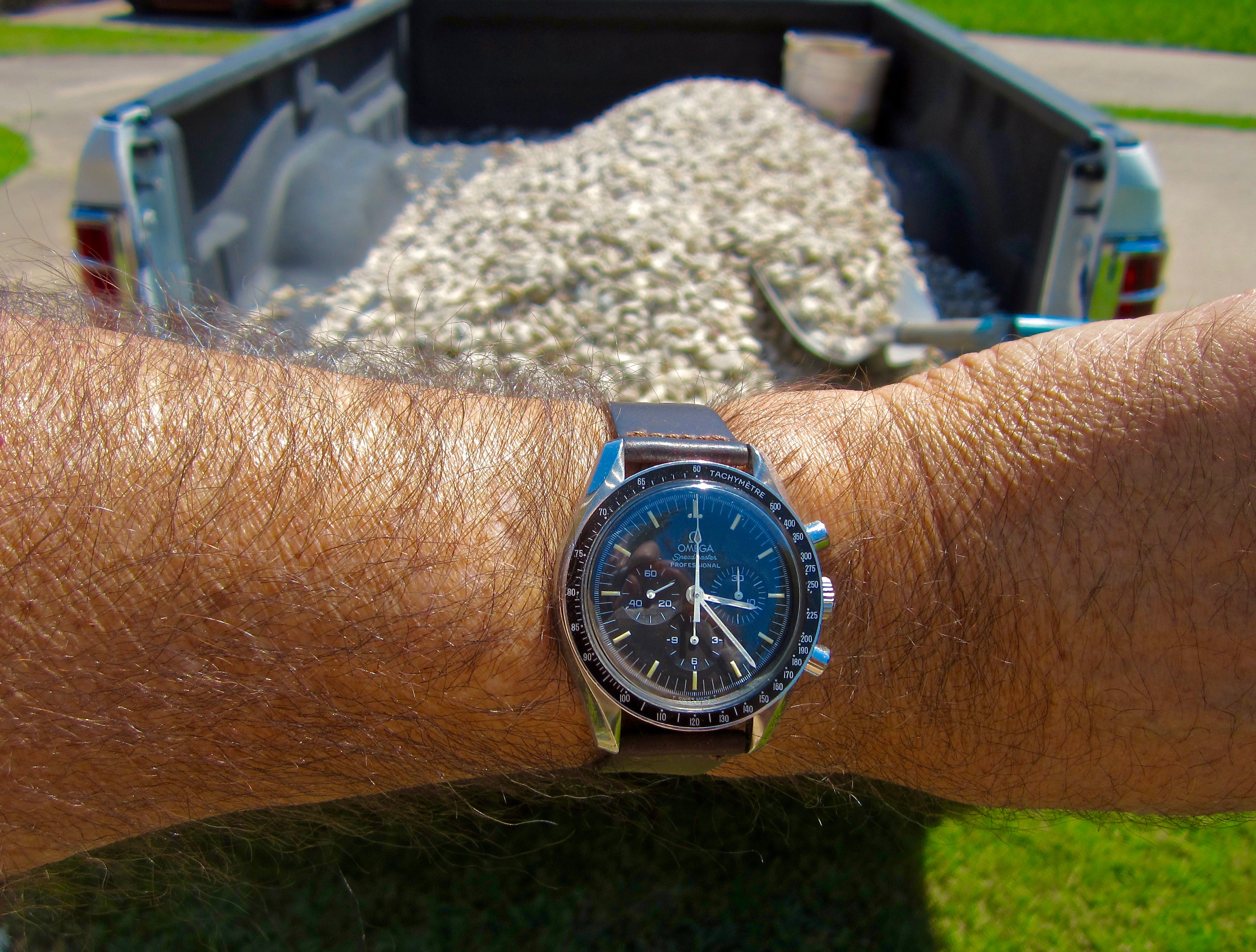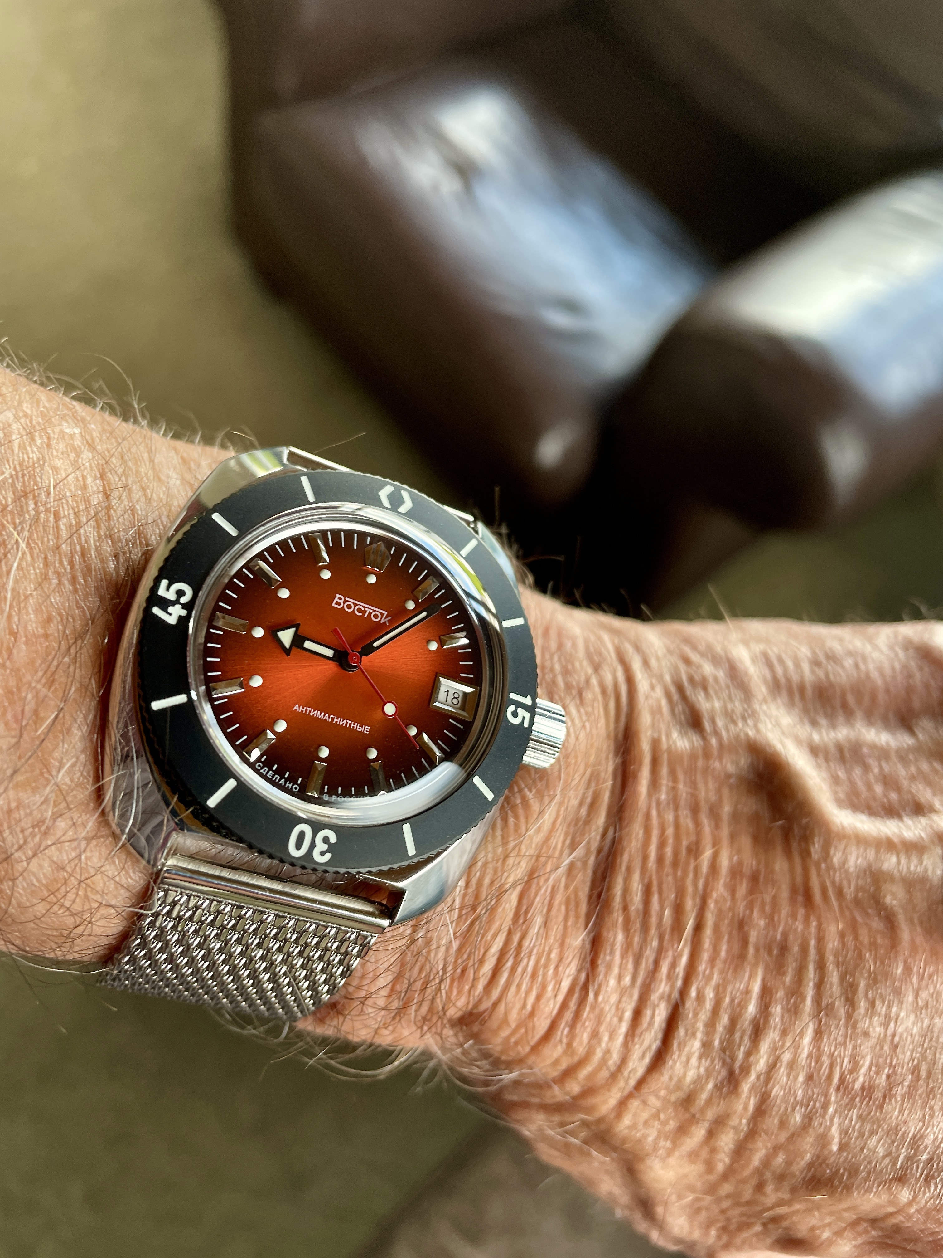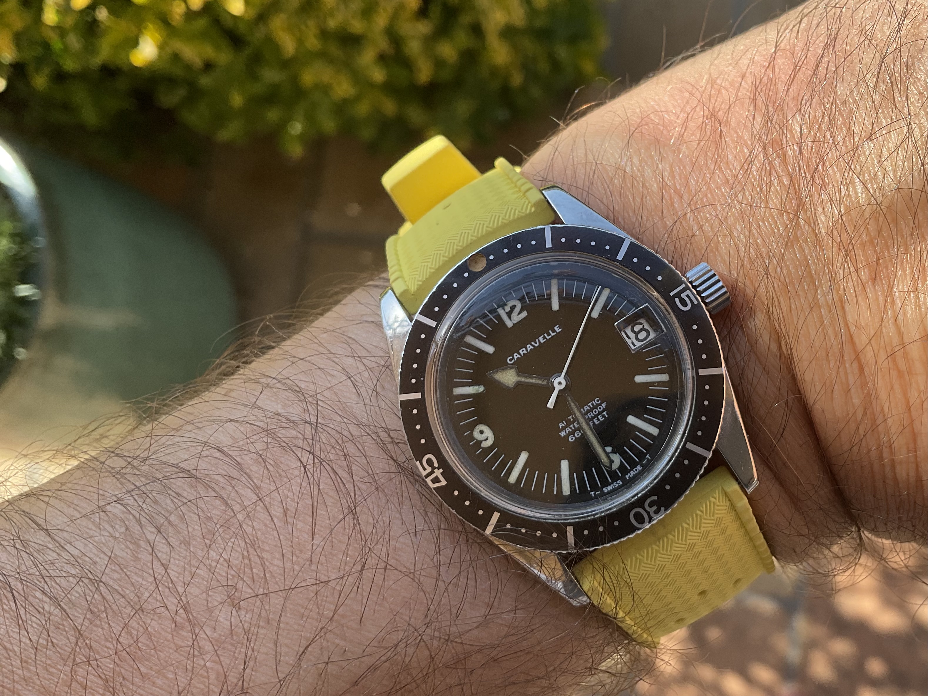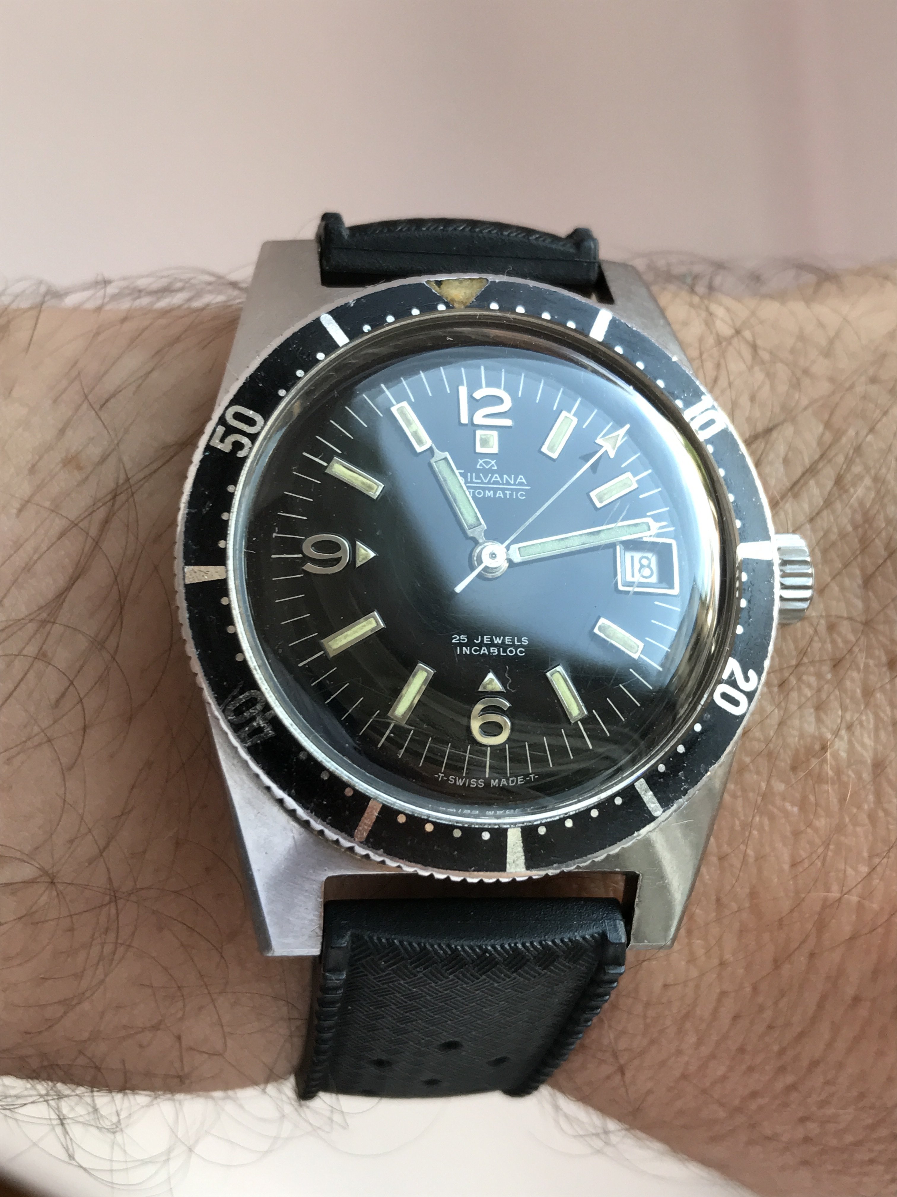 This particular watch and one other I bought from the same seller, must have spent most of its life in a safe. The edges of the lugs are so sharp one can practically cut oneself with them. In fact, the case back has shaved the strap a bit at the springbar centers.