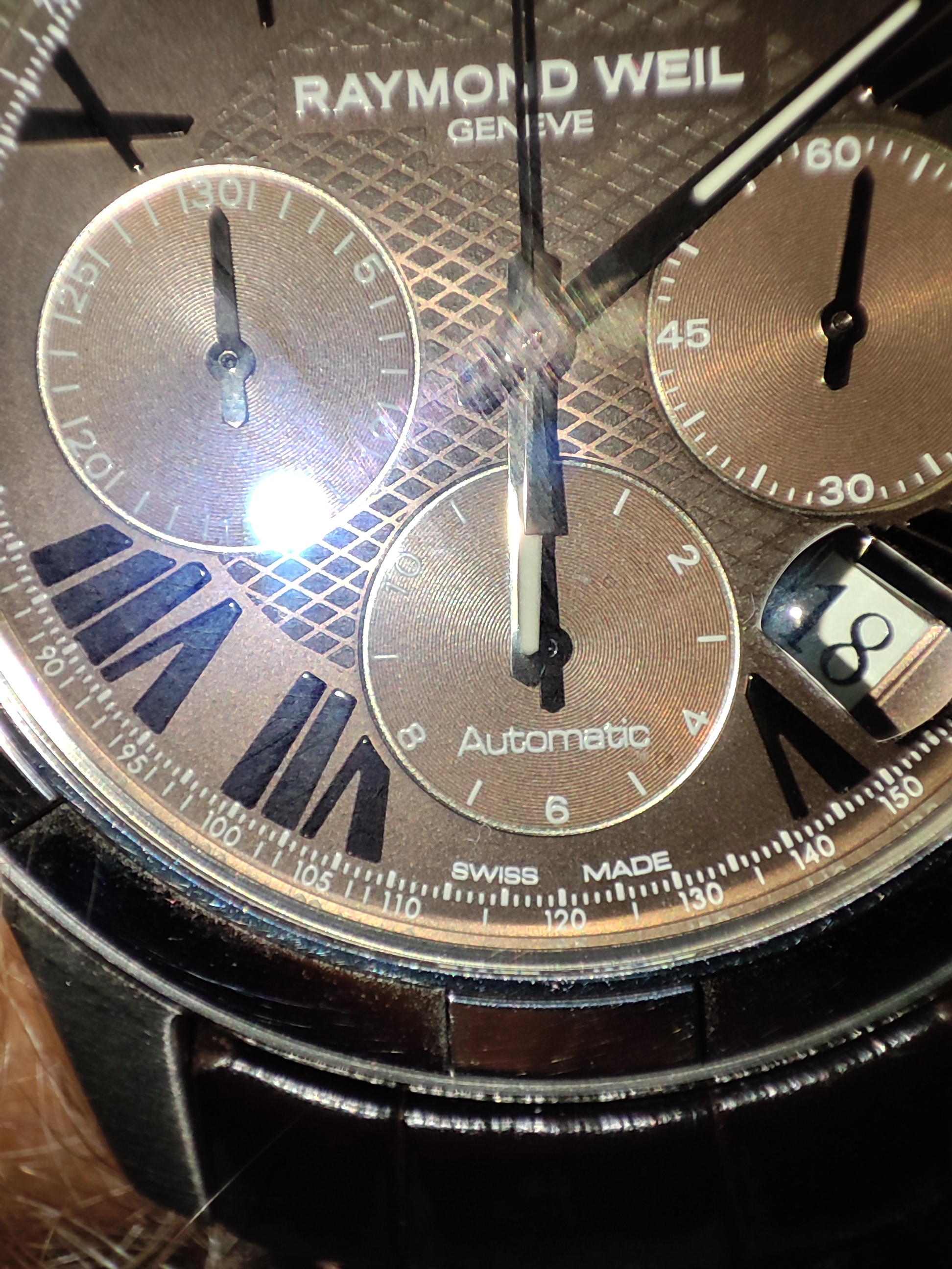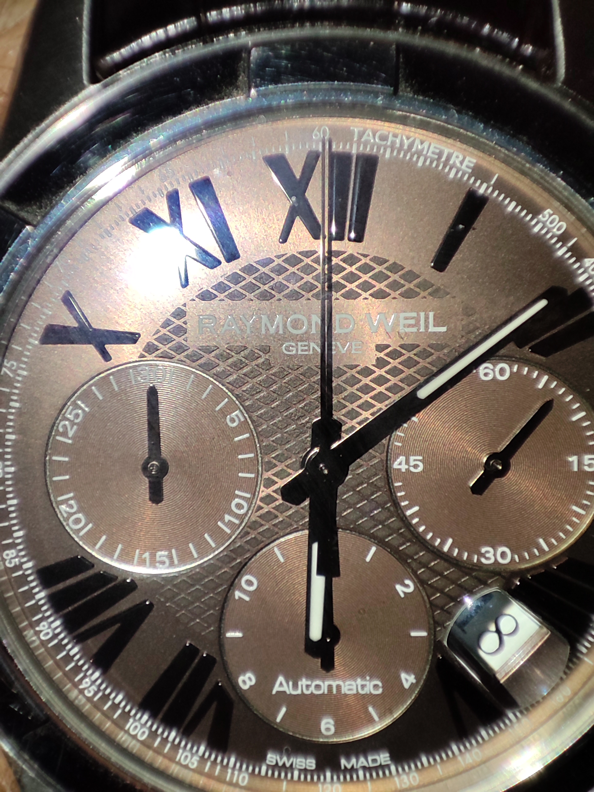 This from a couple days ago illustrates how the blued hands behave in bright light at various angles: