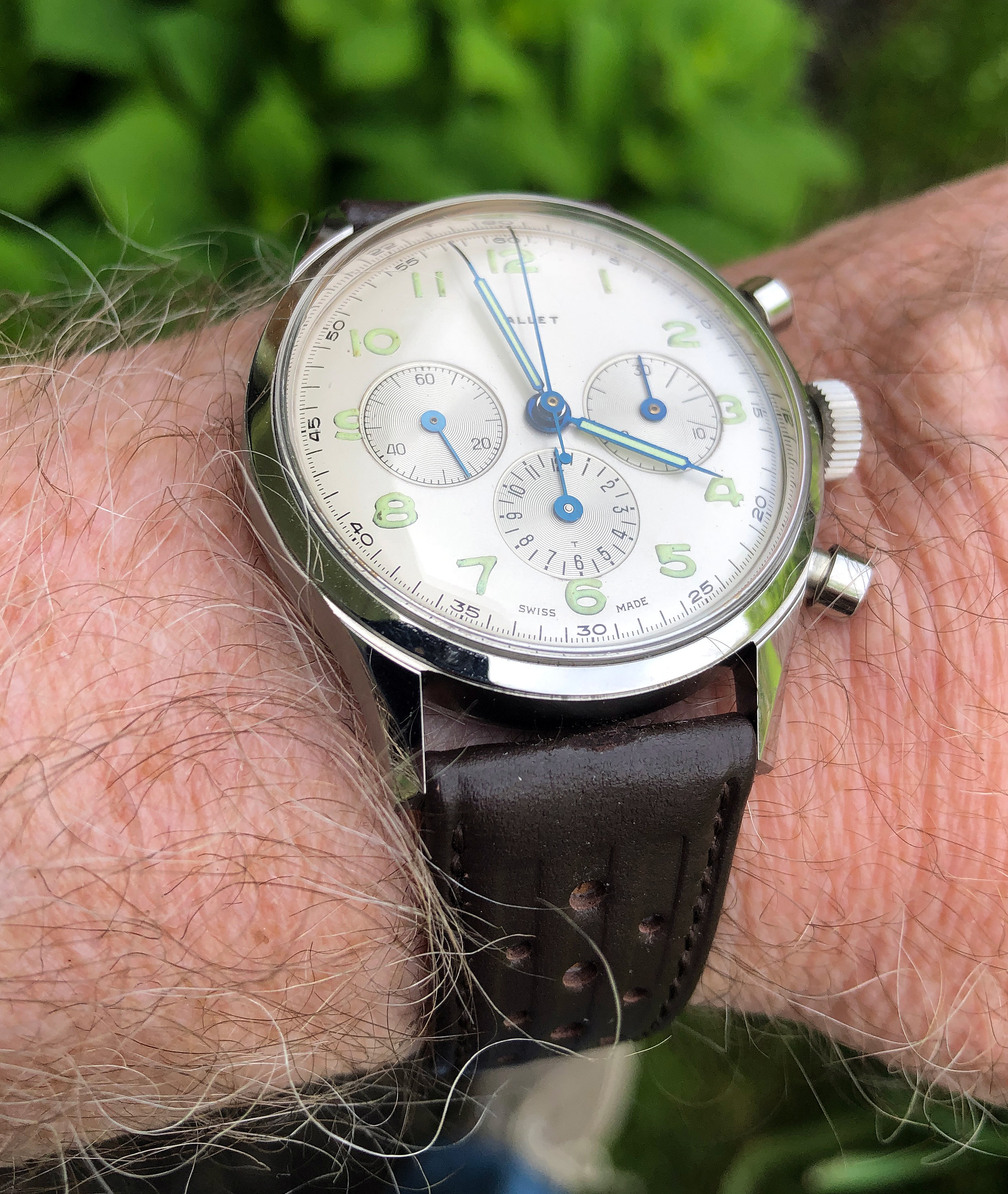 The iPhone image capture causes the watch to look a bit washed out, which is not indicative of how it looks to the eye of the wearer!