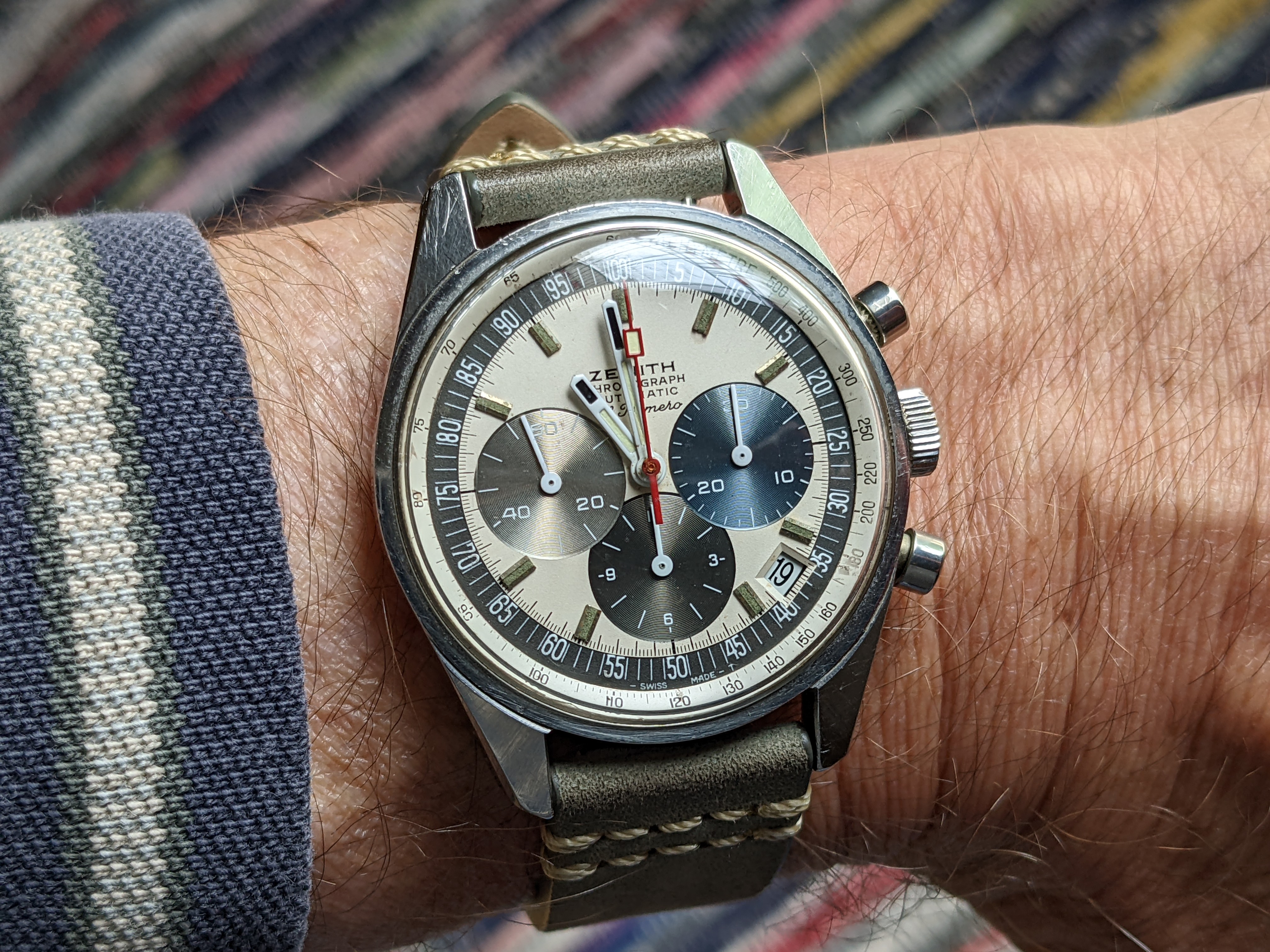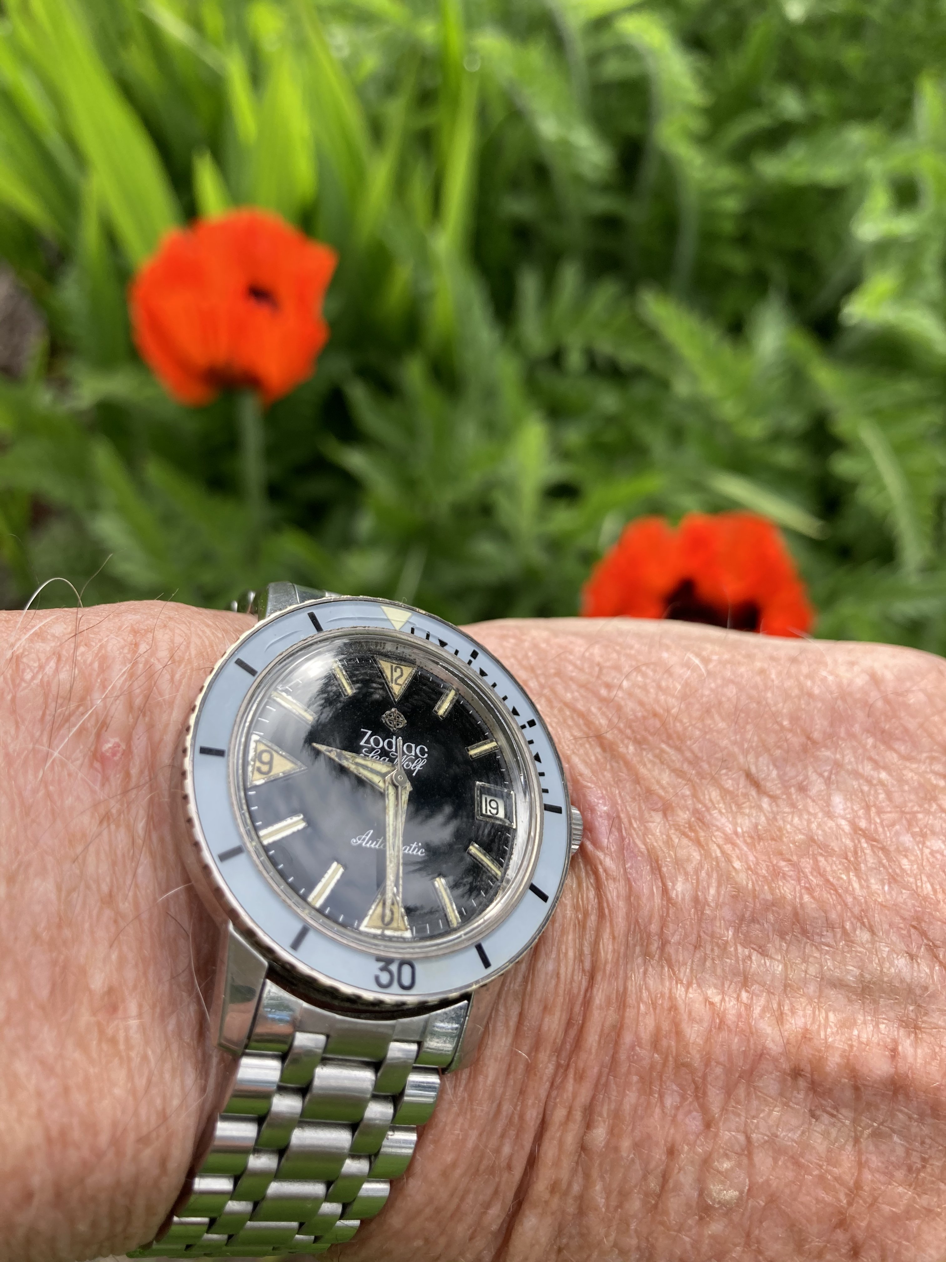 Posts 263 Likes 522 b-lilja ·May 19, 2022 Original bracelet 1968. Love the slight green in the blue dial; blue on blue, and of course white hands. This watch took a dip in my "like" factor, now fully on steam. Love it.