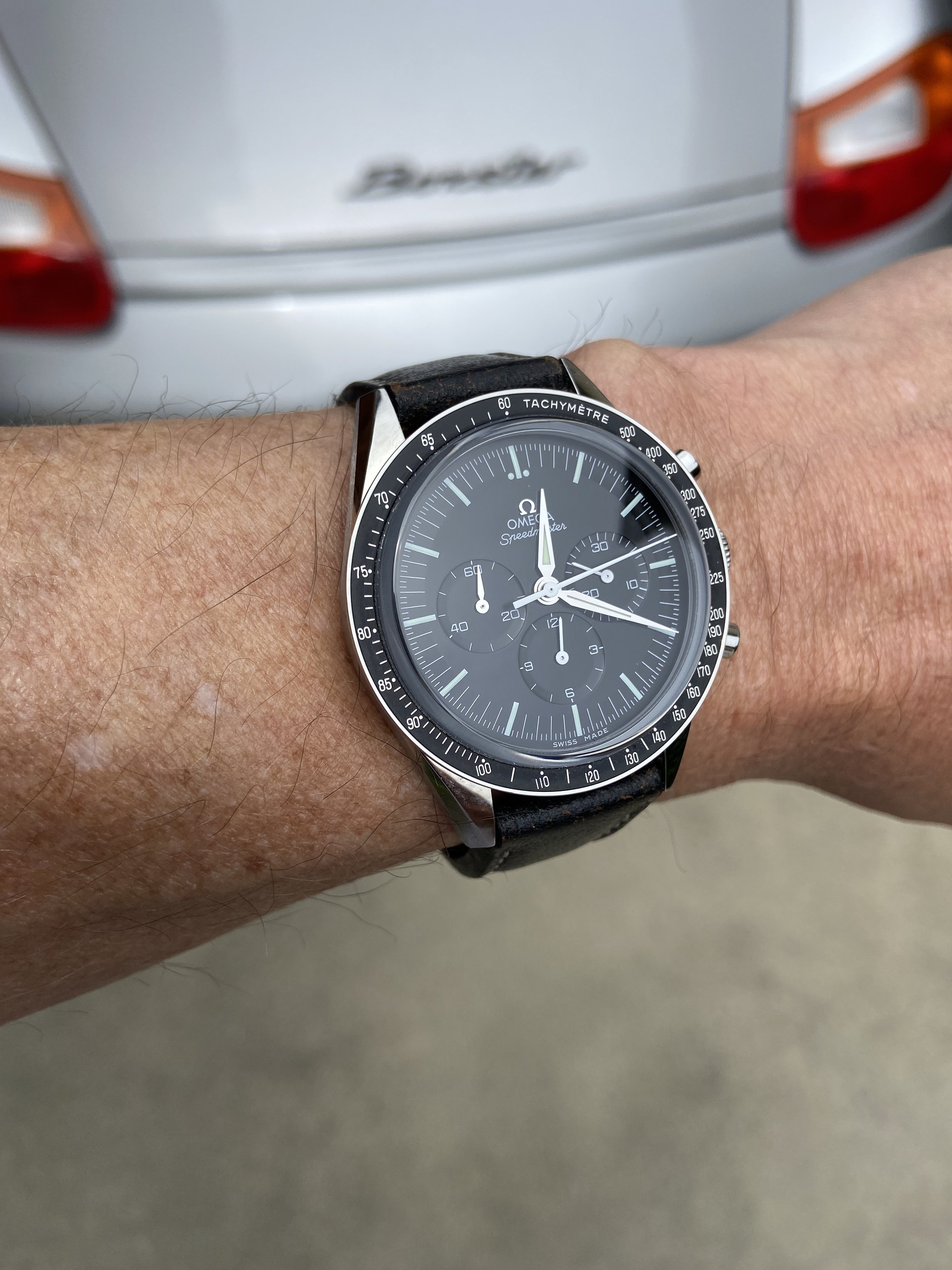 Posts 7,587 Likes 14,002 Evitzee ·Jun 5, 2022 Speedy Tuesday 1, aka Tribute to Alaska Project III from 2017. This is a very easy to wear Speedmaster with its all brushed finish and reverse Panda dial. On a Genteel walnut Palmellato racing strap with bronze stitching