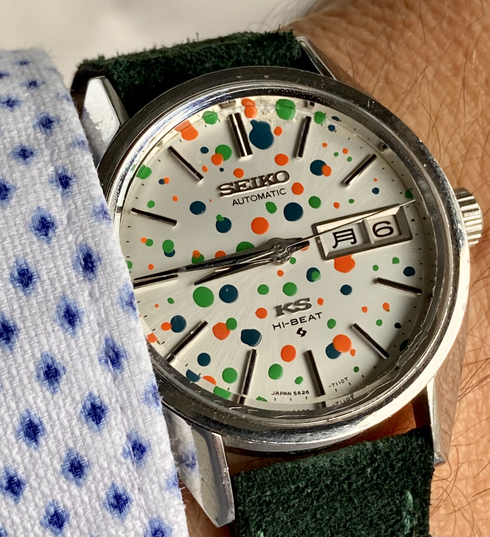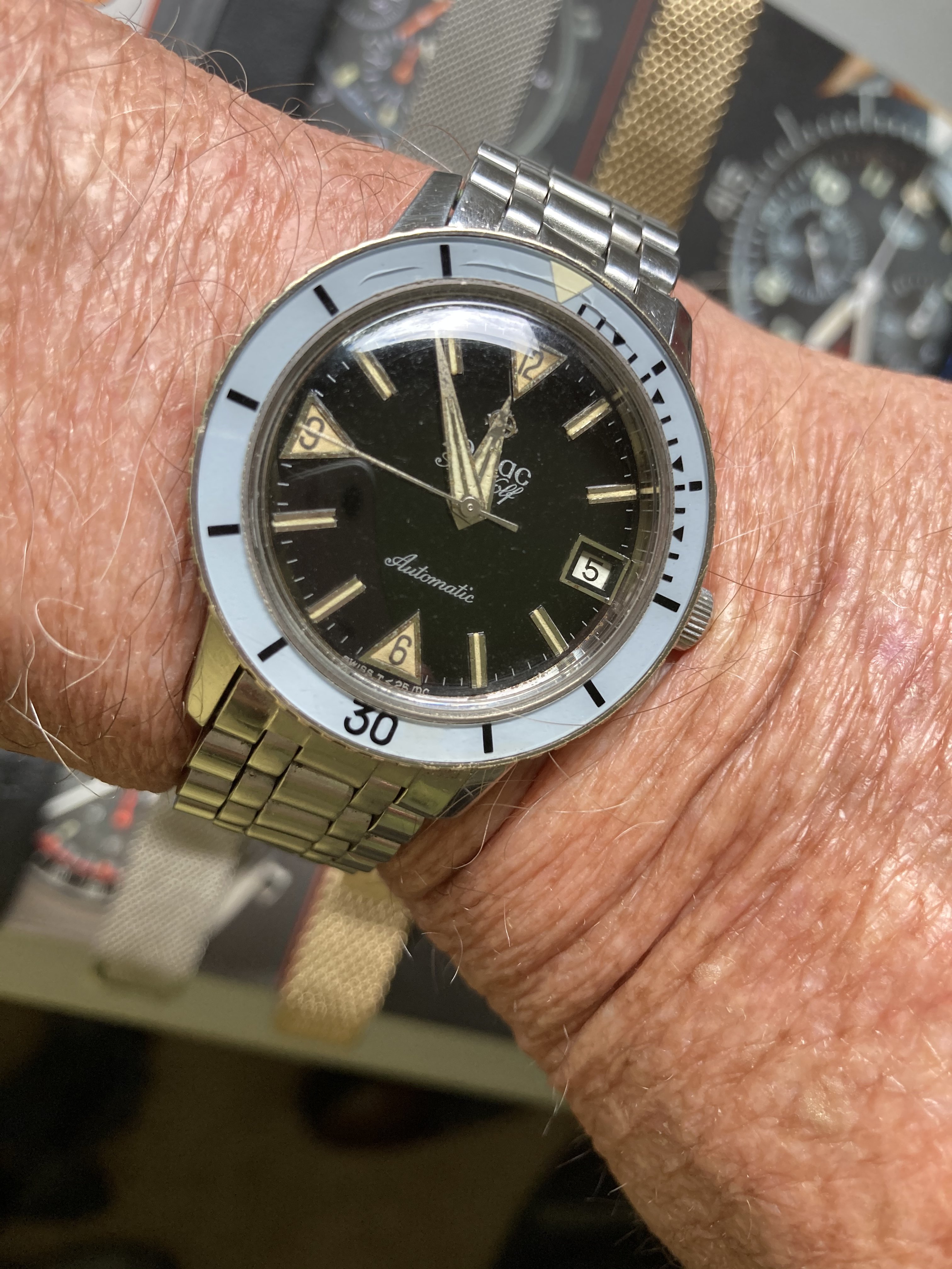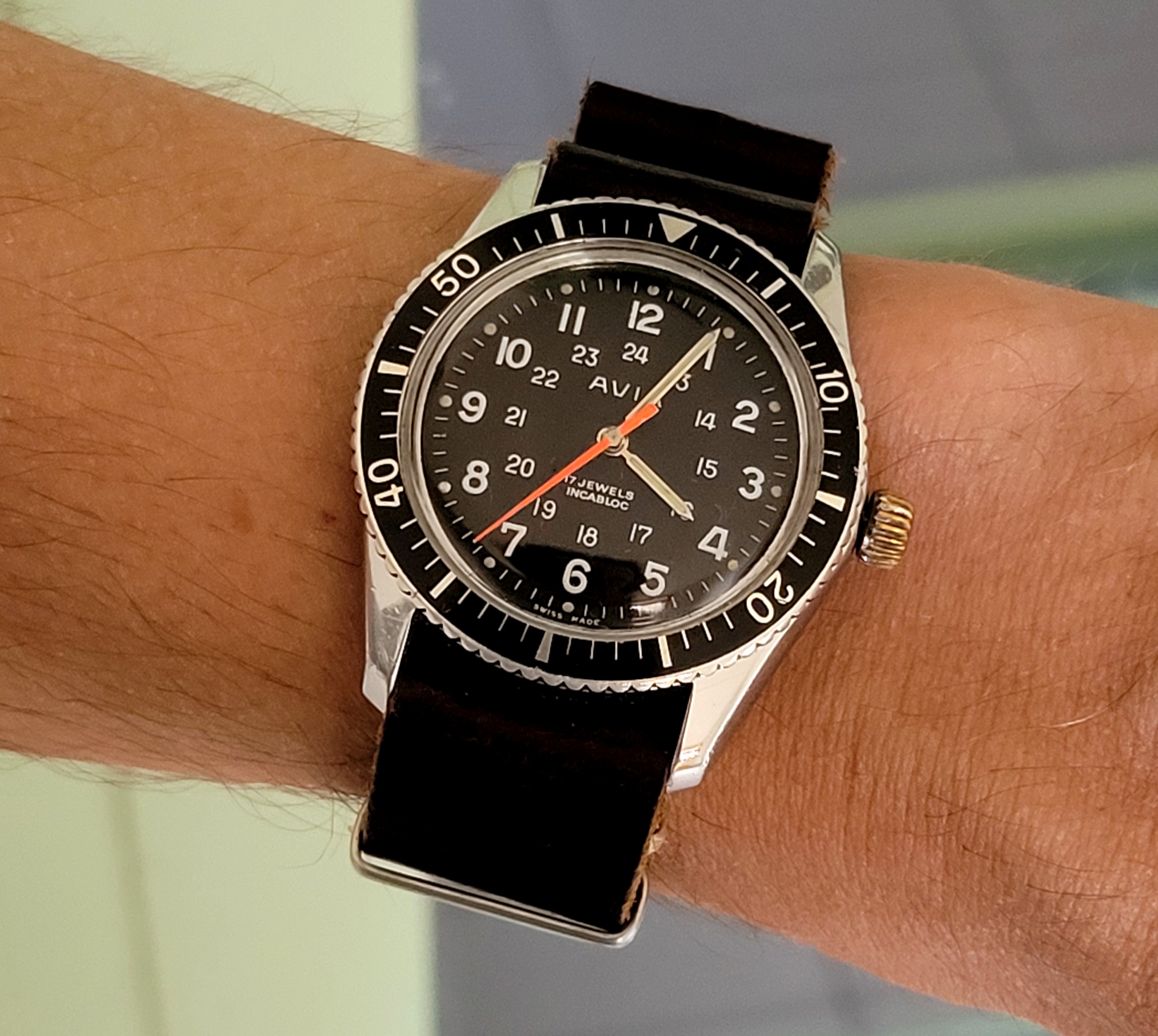 Posts 2,428 Likes 19,756 Dr No ·Jun 5, 2022 Not mine, but on my wrist . . . . . . this morning. Belongs to a friend's uncle whose watchmaker butchered it, and entrusted to mine for restoration. Art