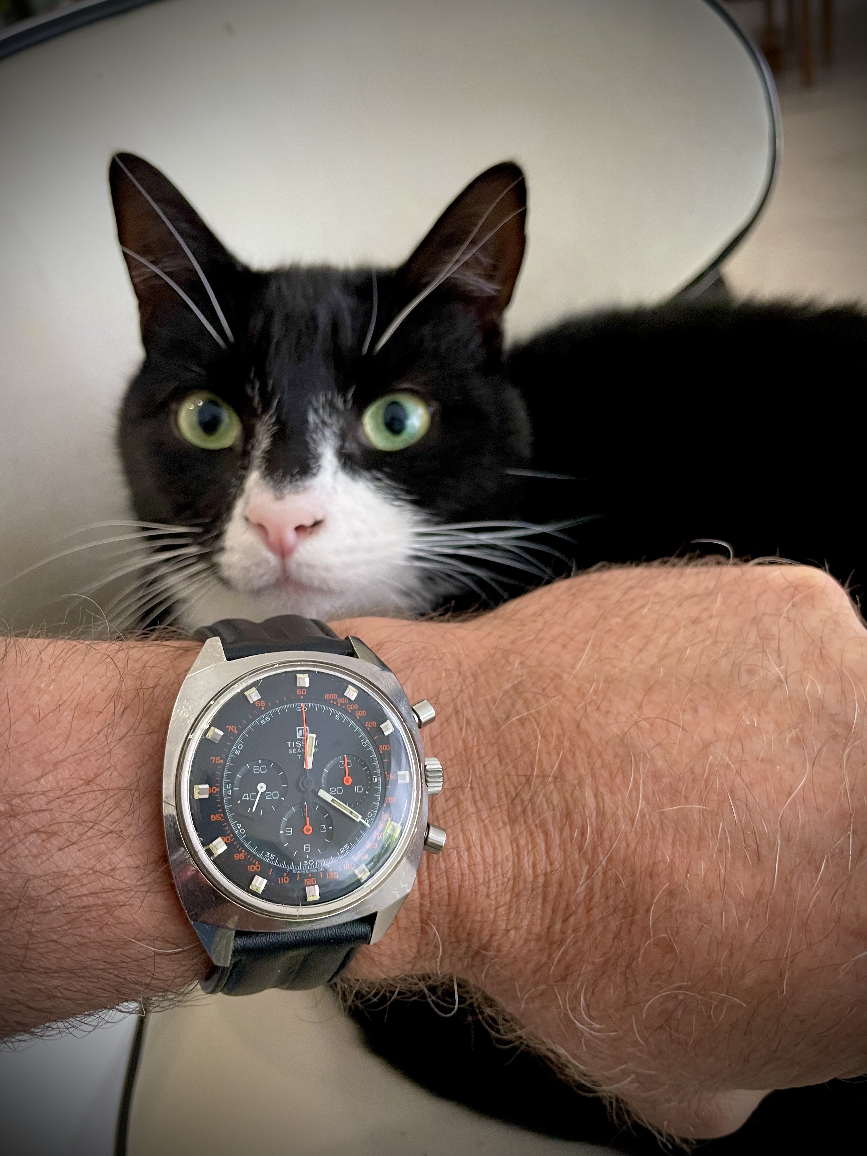 Posts 51 Likes 1,065 Dizz ·Jun 16, 2022 Cat likes the smell of new leather on the ‘69 Seastar. Original strap finally retired.